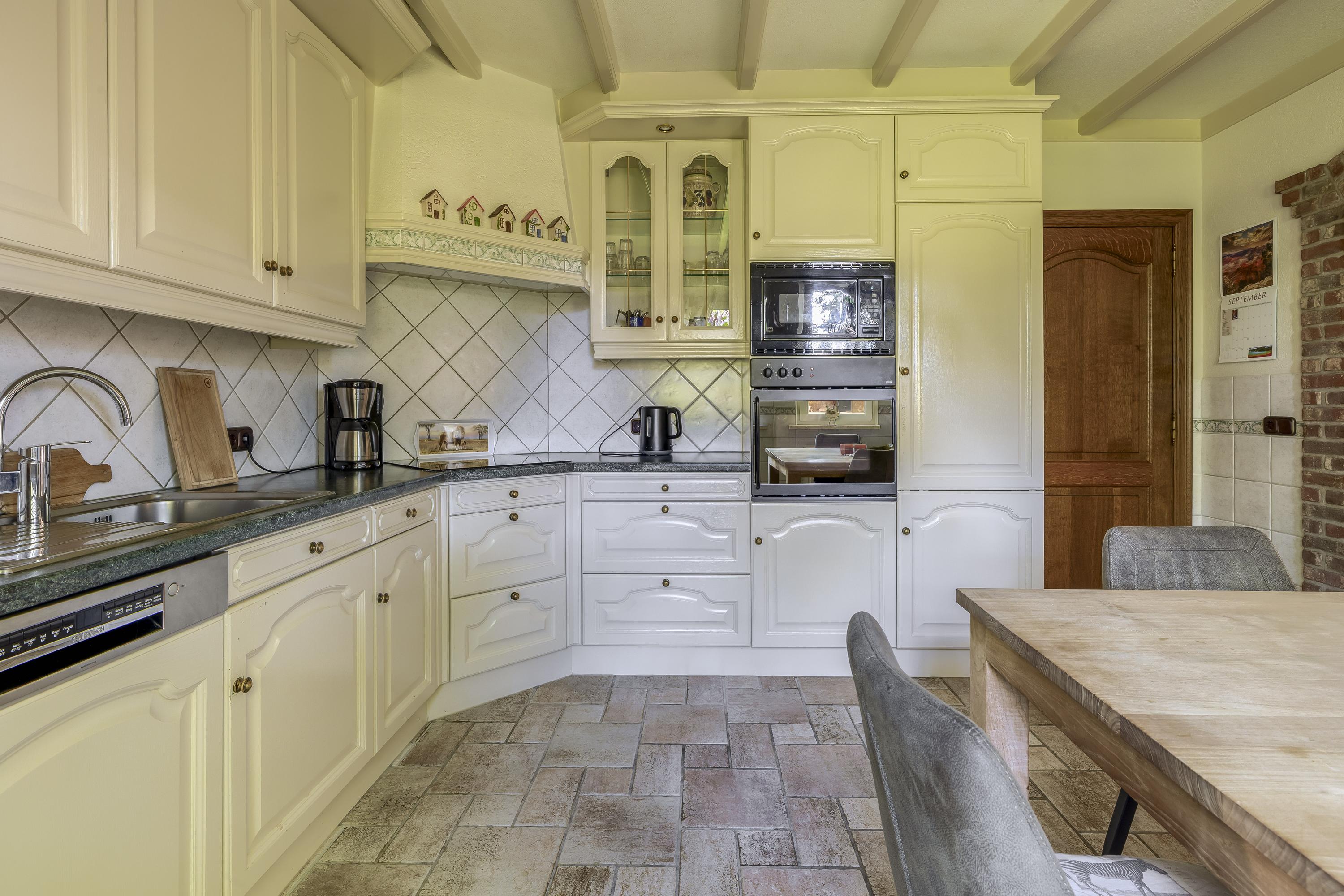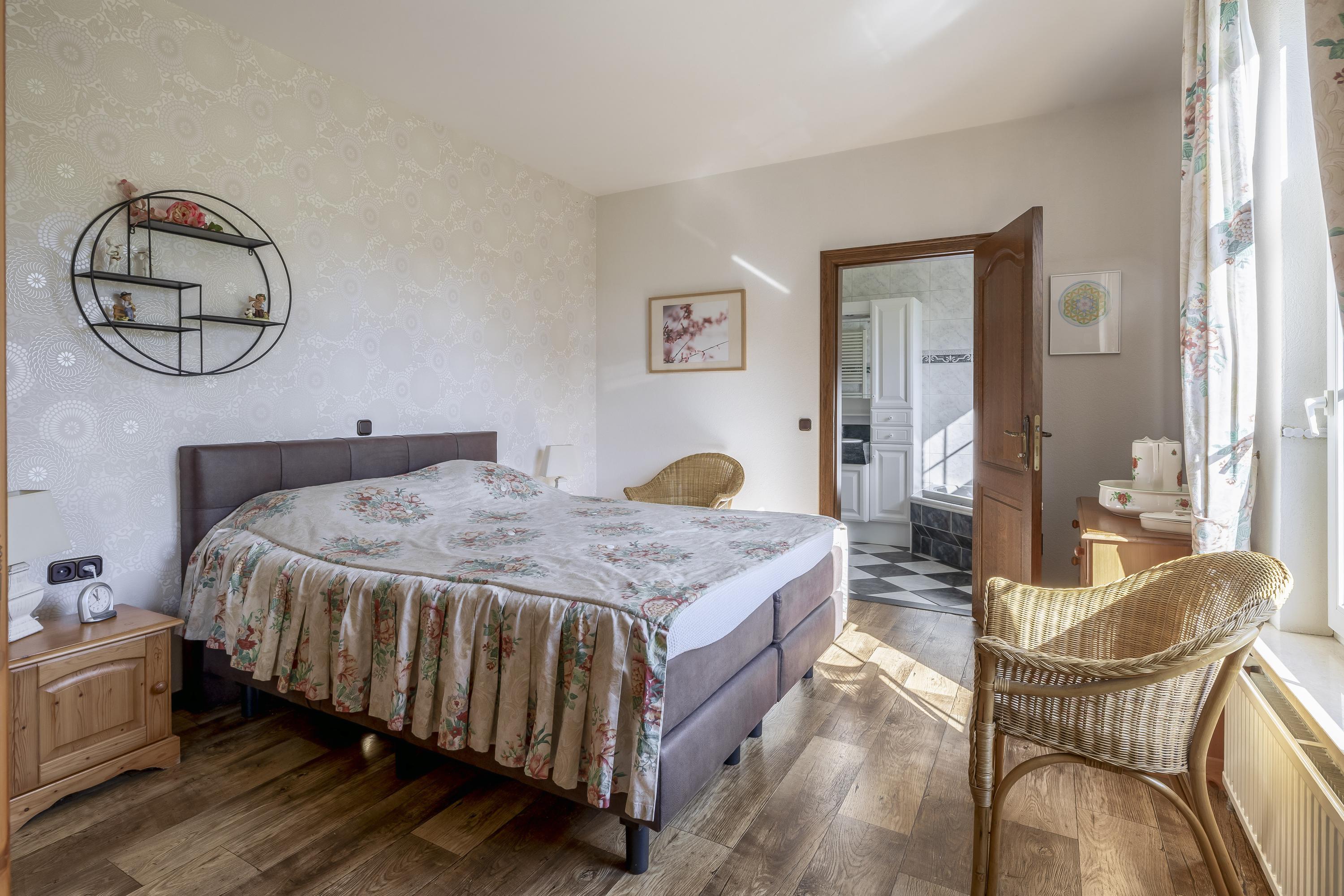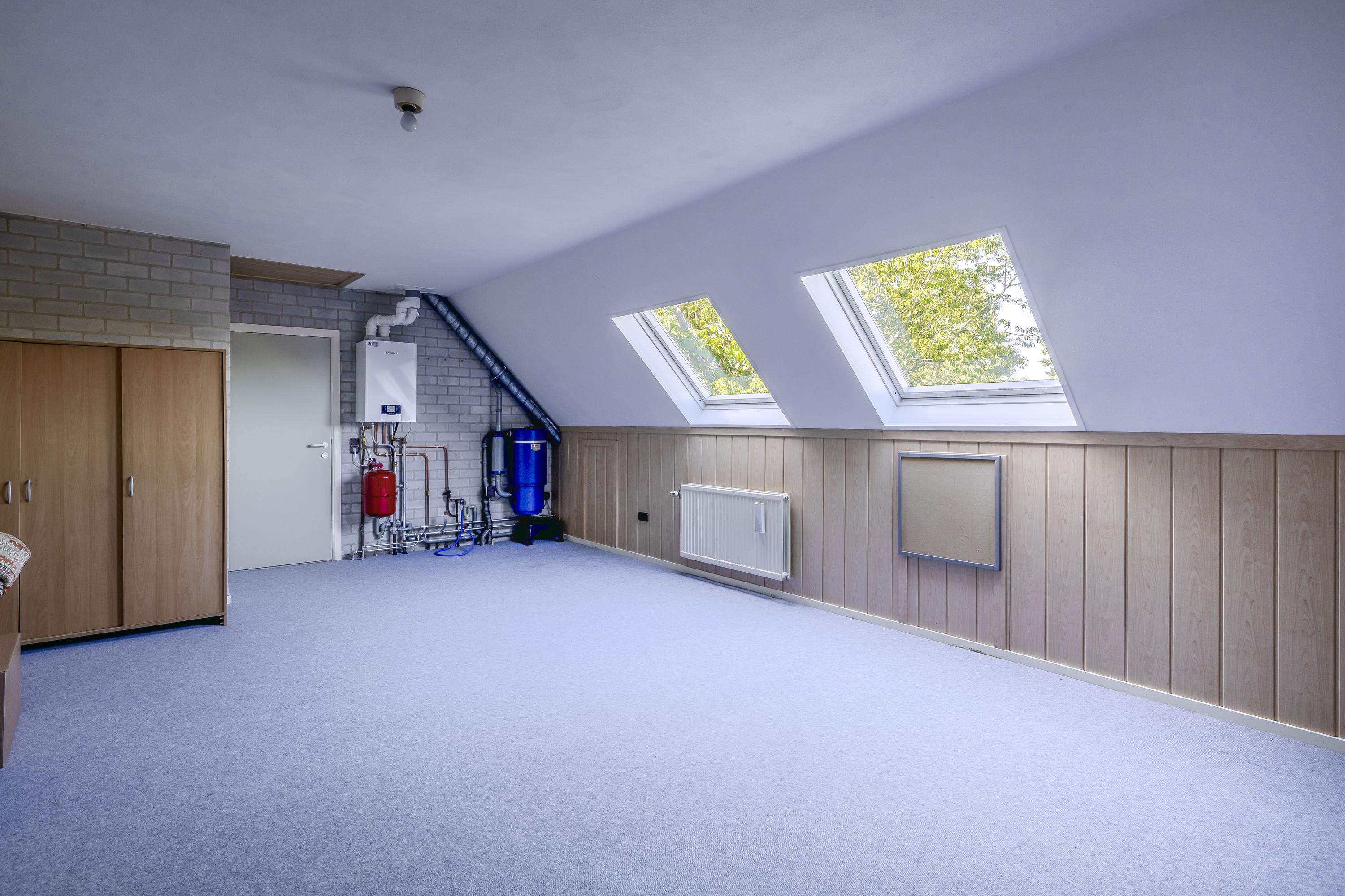 This detached house offers plenty of living space and possibilities. The ground floor features a living room, a kitchen and a bedroom with en-suite bathroom. There is also an indoor garage. Outside you will find a spacious, well-maintained garden with a large lawn, mature trees, natural hedges and two terraces. In addition, the outbuilding and greenhouse offer extra possibilities, while the adjacent meadow and barn are ideal for