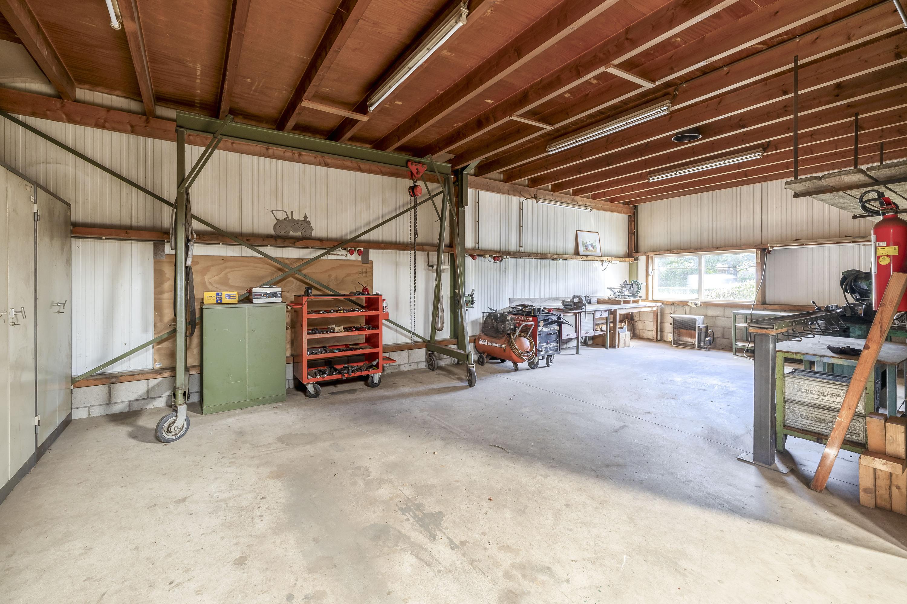 The barn is equipped with several storage rooms and a practical mezzanine above for extra storage space.