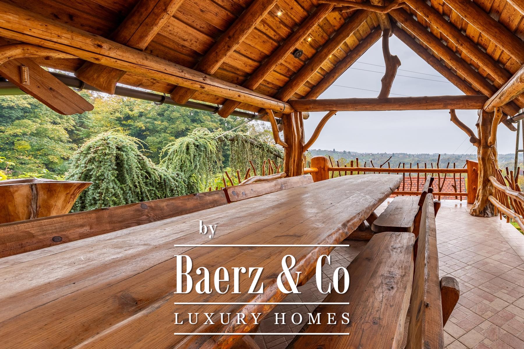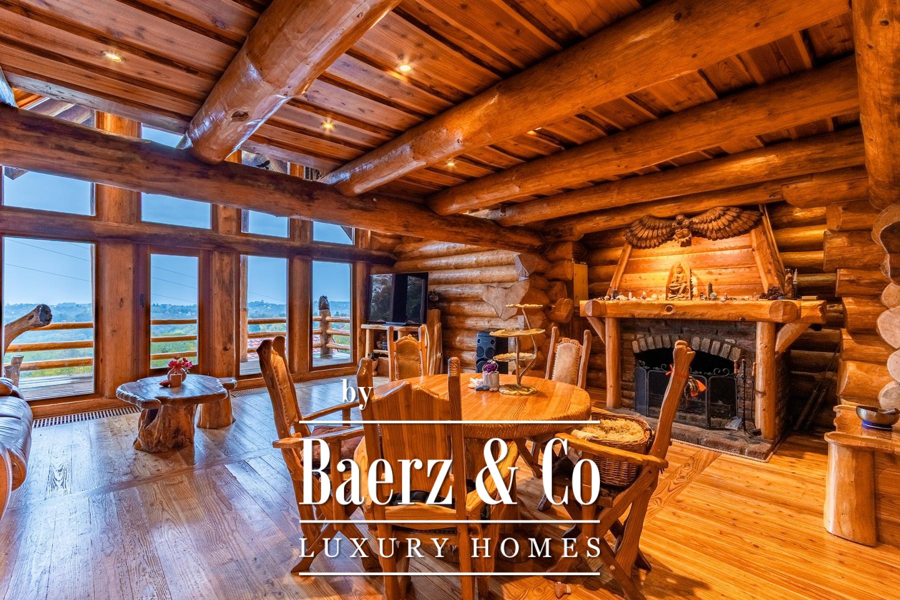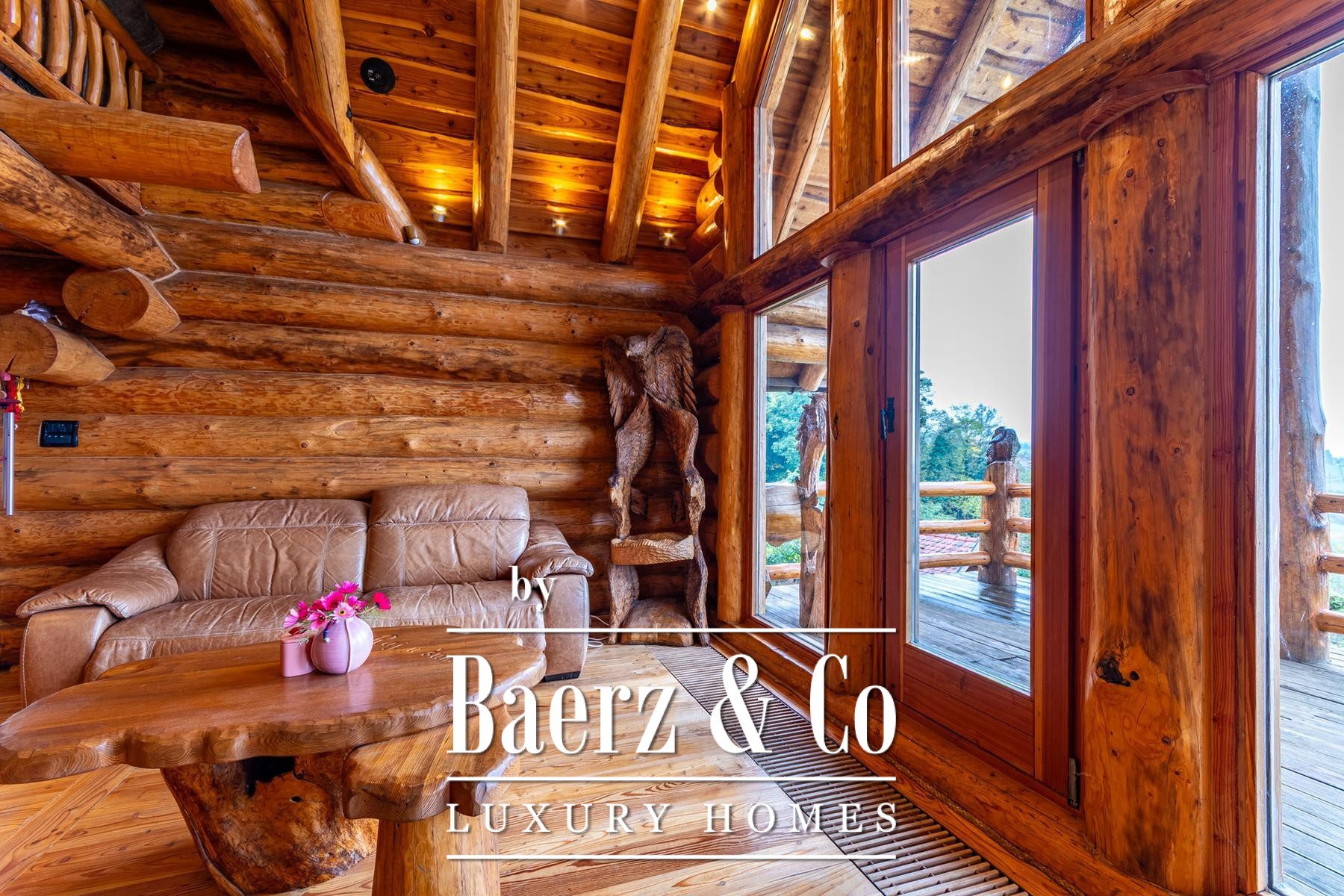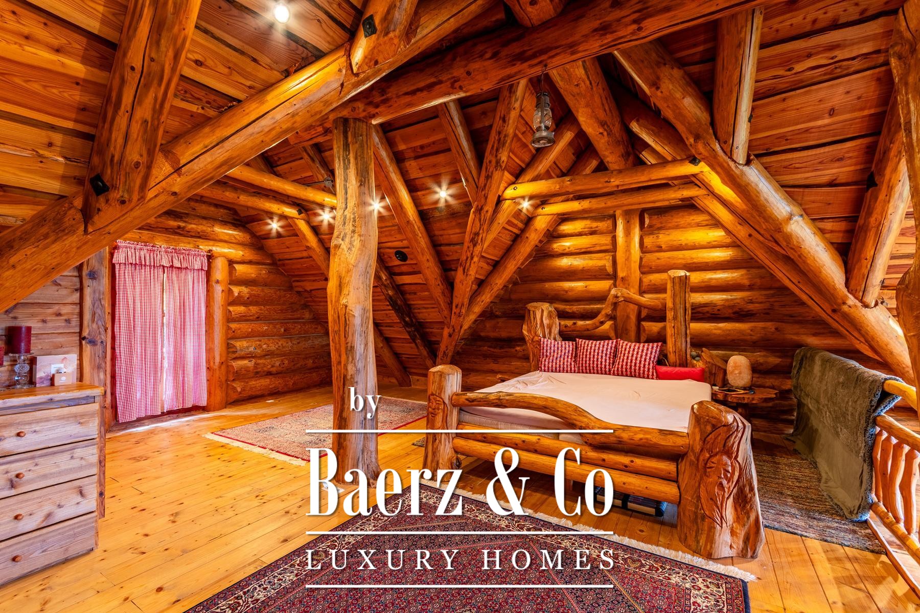 an outdoor toilet. This unique log house, considered by many as one of the most beautiful in Europe, offers more than just a property - it provides an experience.Set on a 3,500 m² plot surrounded by forest and vineyards, the property boasts carefully landscaped grounds. It offers complete privacy, breathtaking panoramic views, and a lush green oasis with a variety of fruit trees - apples, plums, figs, aronia, raspberries, and many more.For more information or to arrange a viewing, please feel free to contact us.