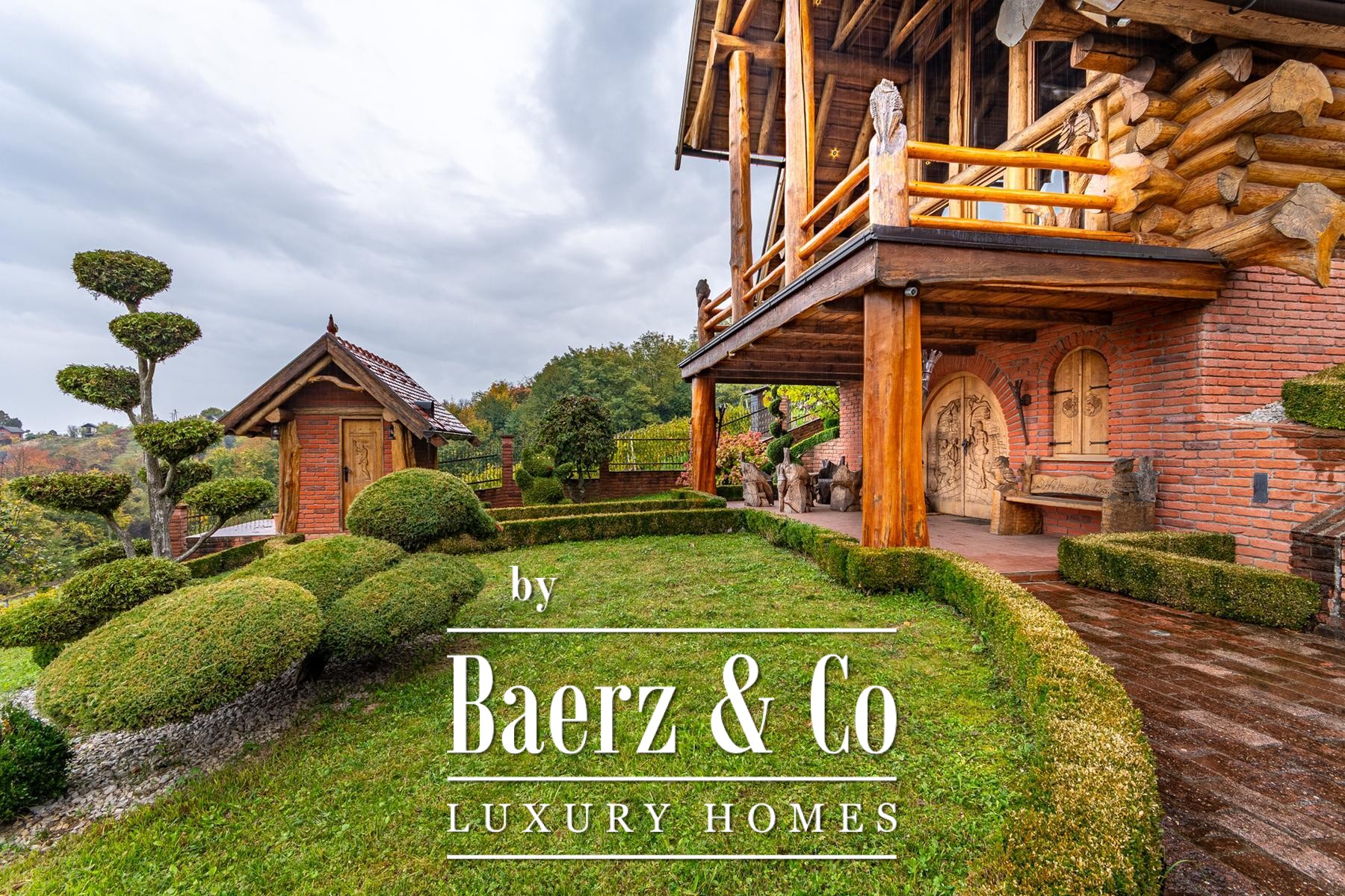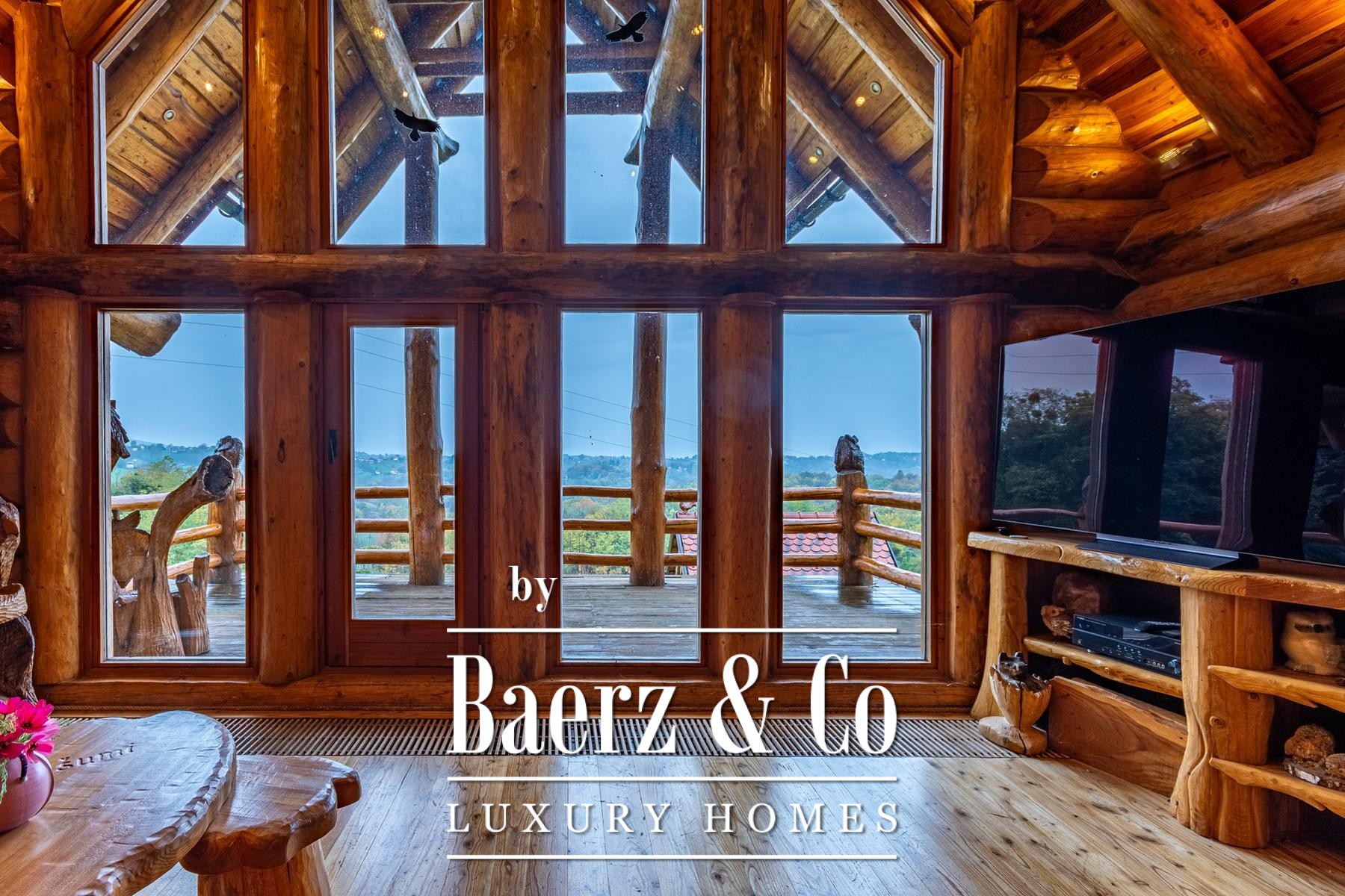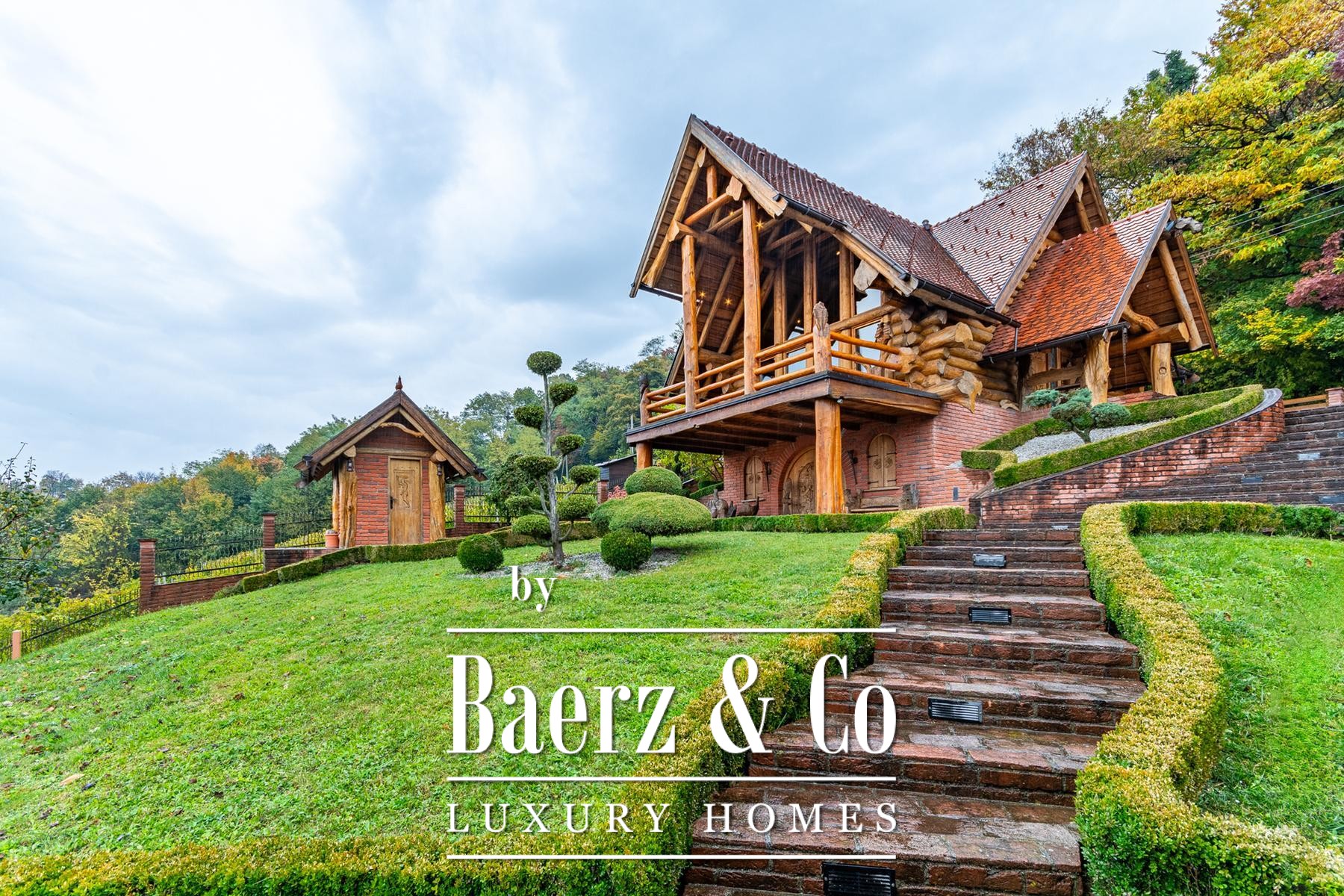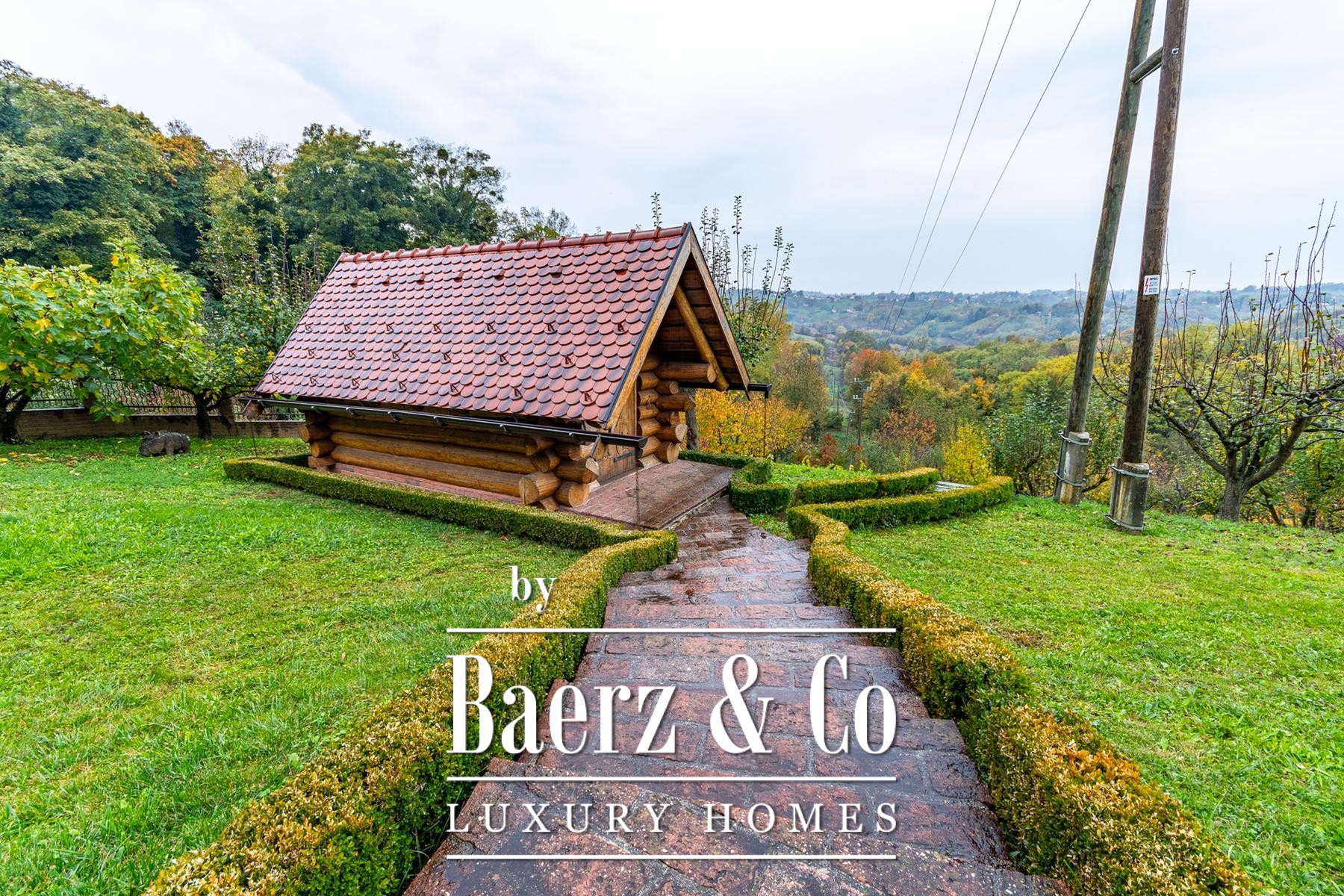 an outdoor toilet. This unique log house, considered by many as one of the most beautiful in Europe, offers more than just a property - it provides an experience.Set on a 3,500 m² plot surrounded by forest and vineyards, the property boasts carefully landscaped grounds. It offers complete privacy, breathtaking panoramic views, and a lush green oasis with a variety of fruit trees - apples, plums, figs, aronia, raspberries, and many more.For more information or to arrange a viewing, please feel free to contact us.