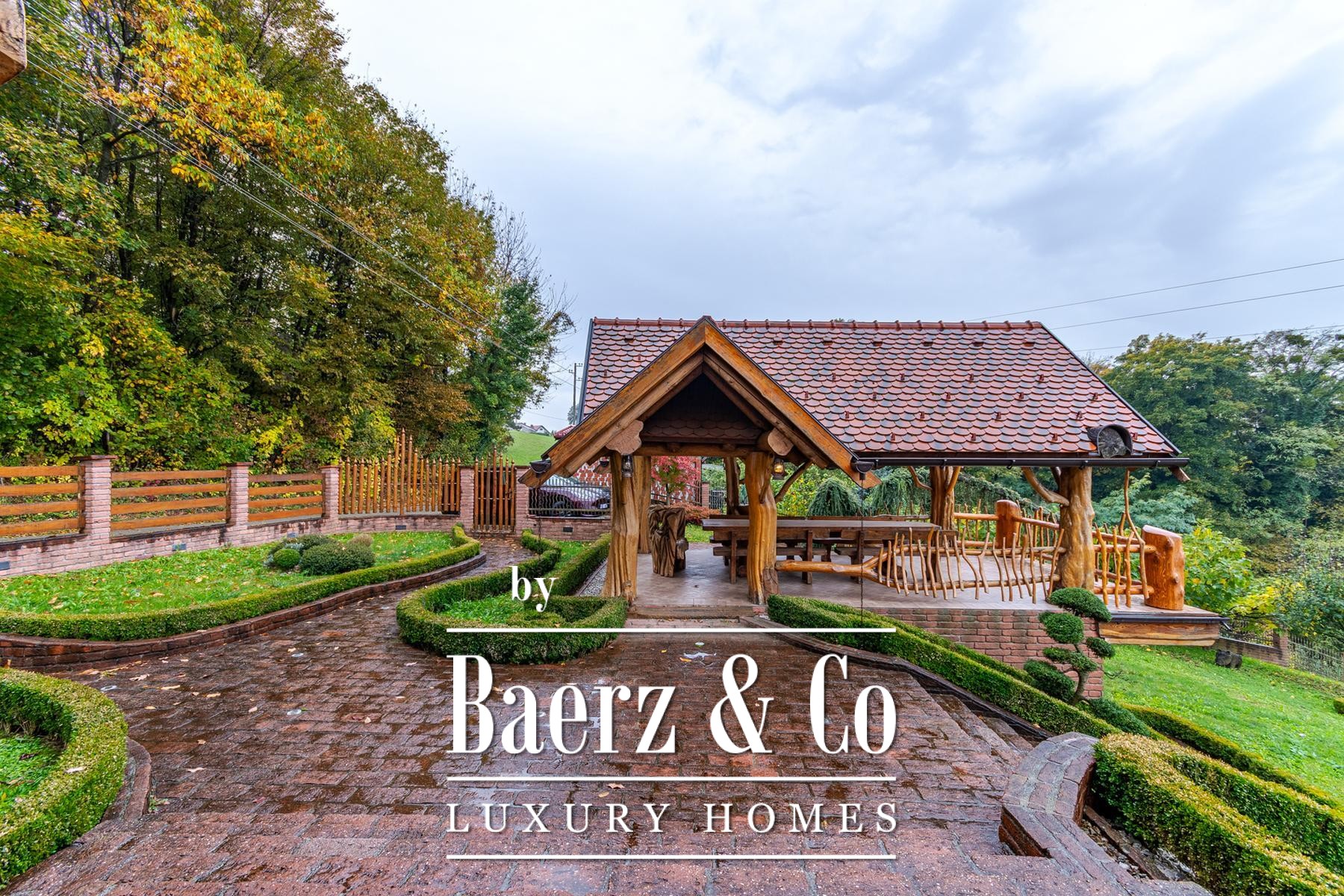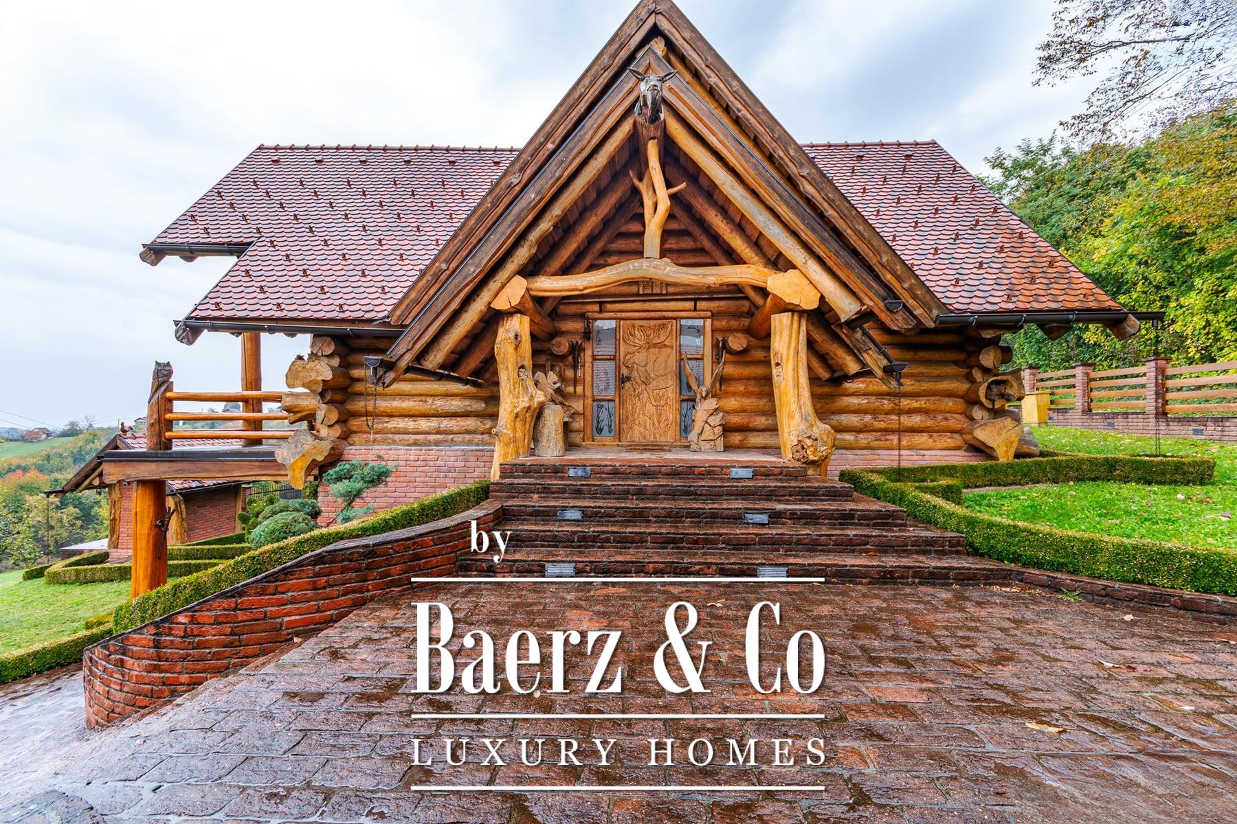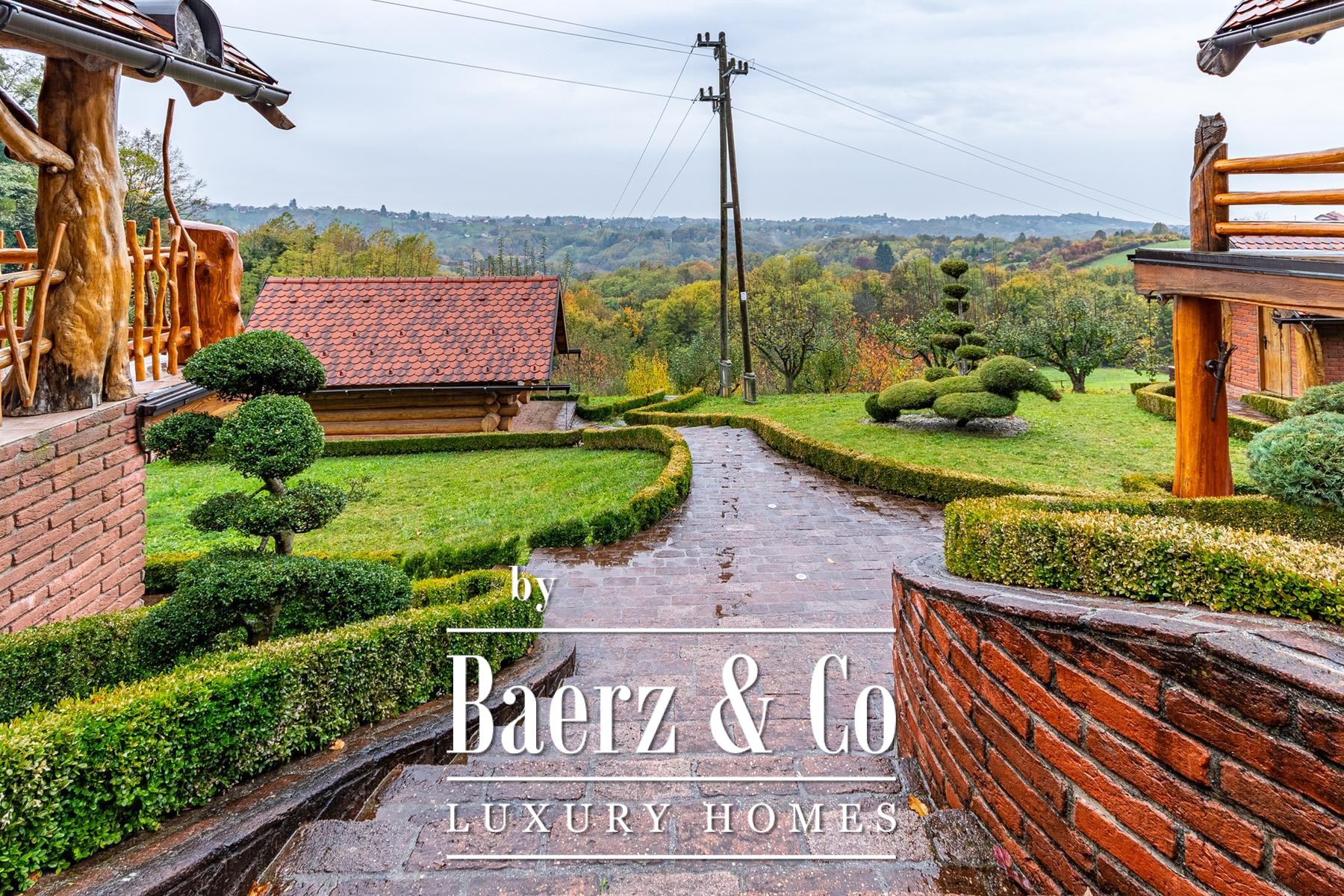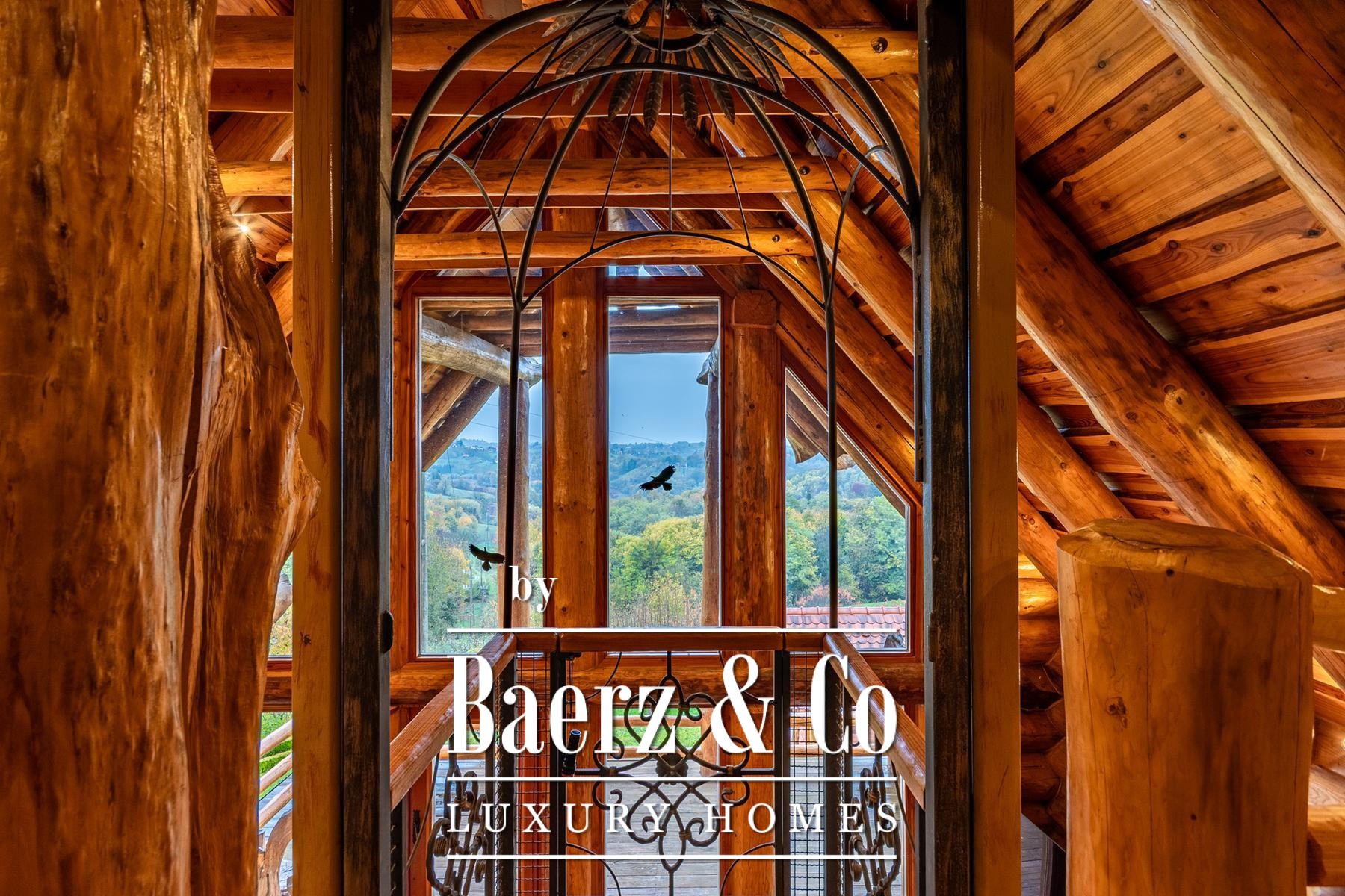an outdoor toilet. This unique log house, considered by many as one of the most beautiful in Europe, offers more than just a property - it provides an experience.Set on a 3,500 m² plot surrounded by forest and vineyards, the property boasts carefully landscaped grounds. It offers complete privacy, breathtaking panoramic views, and a lush green oasis with a variety of fruit trees - apples, plums, figs, aronia, raspberries, and many more.For more information or to arrange a viewing, please feel free to contact us.
