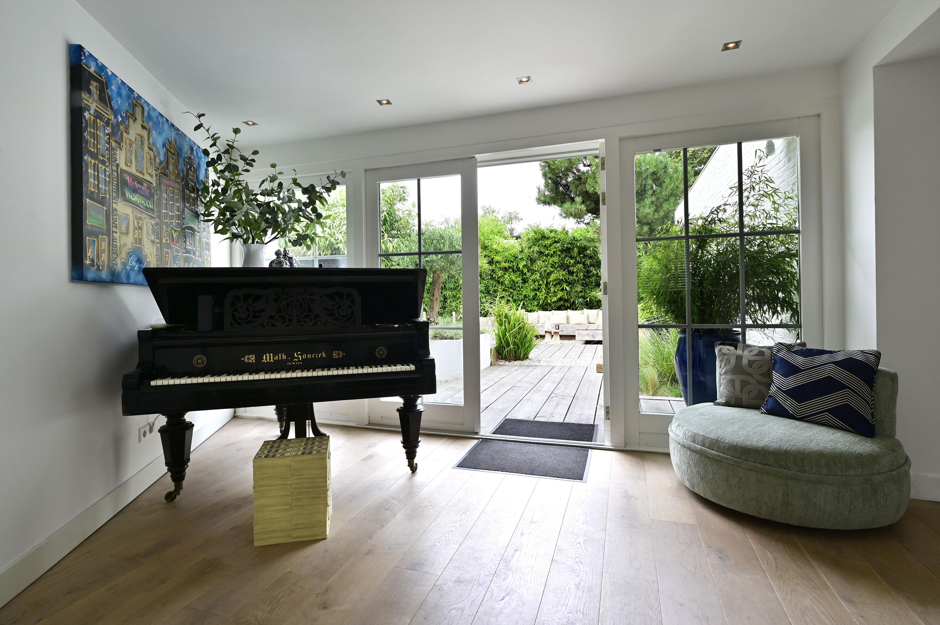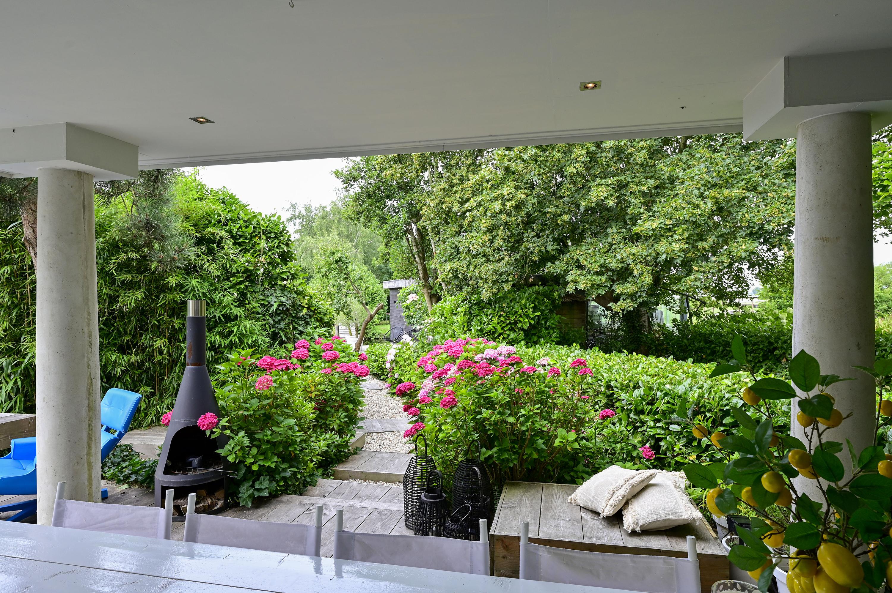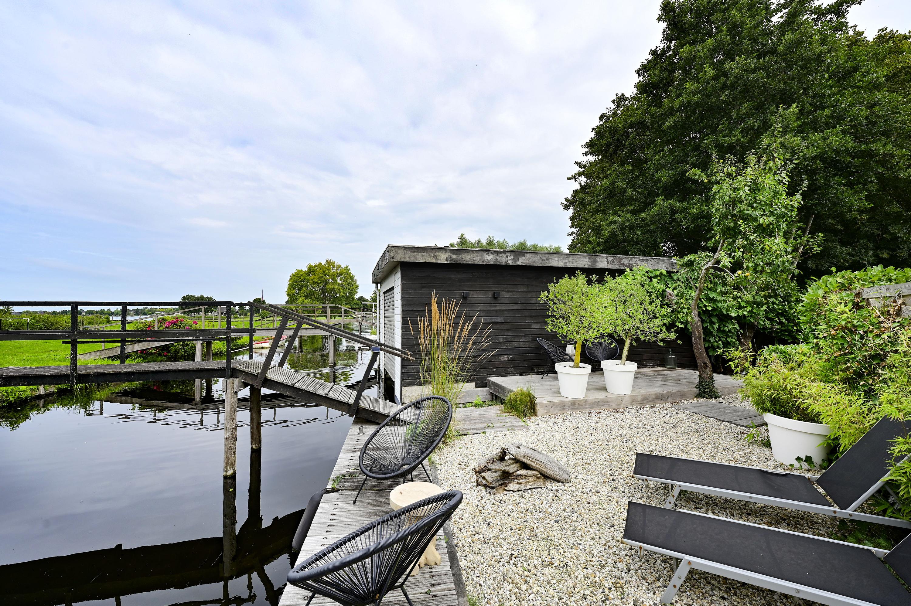 The villa stands on a generous plot with optimal sun exposure and a beautifully landscaped garden. Here you will find several terraces, a covered veranda with BBQ, a compact swimming pool and a six-person jacuzzi. Via a charming bridge you reach a leased parcel from the water authority with moorings for multiple boats – ideal for water sports enthusiasts.