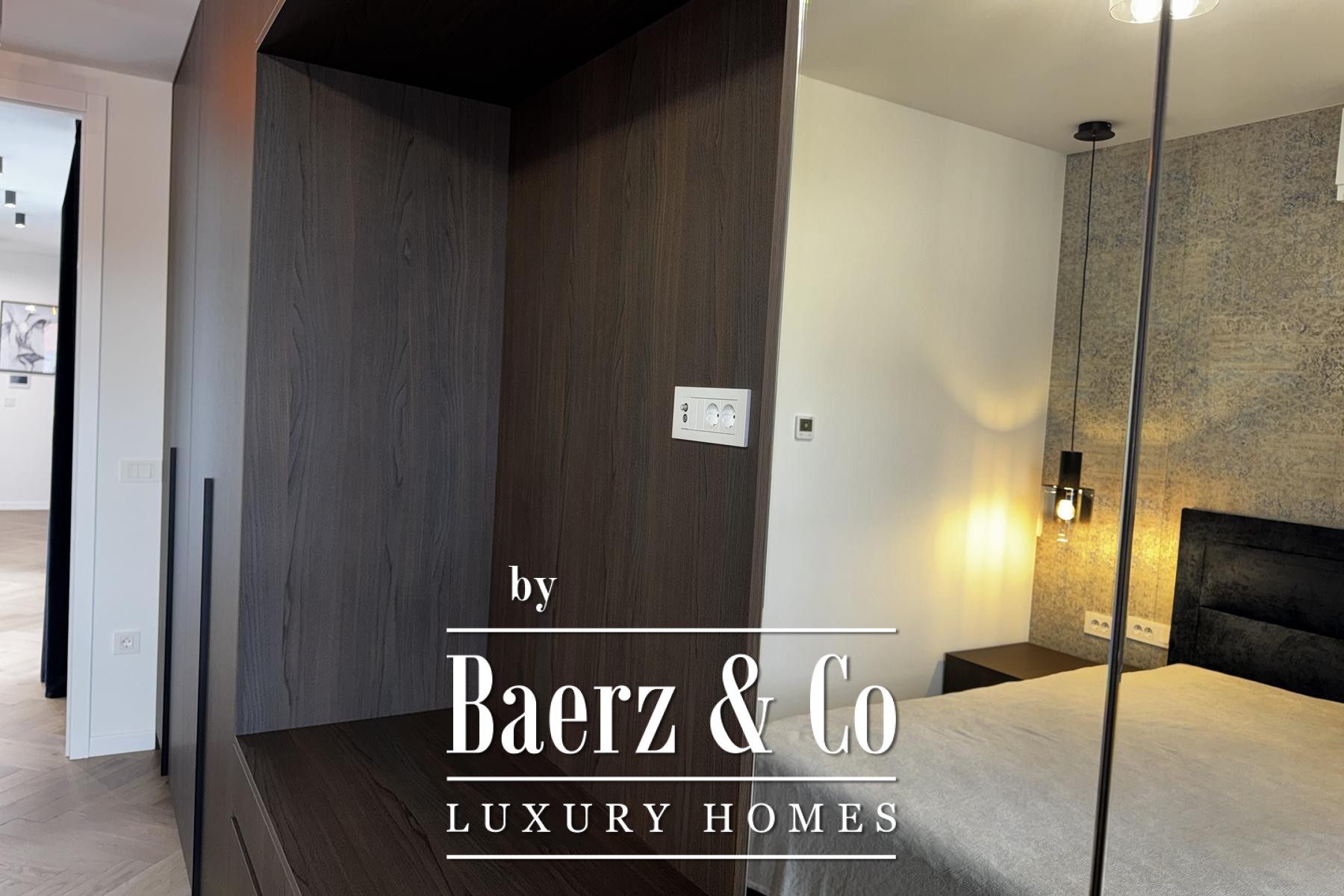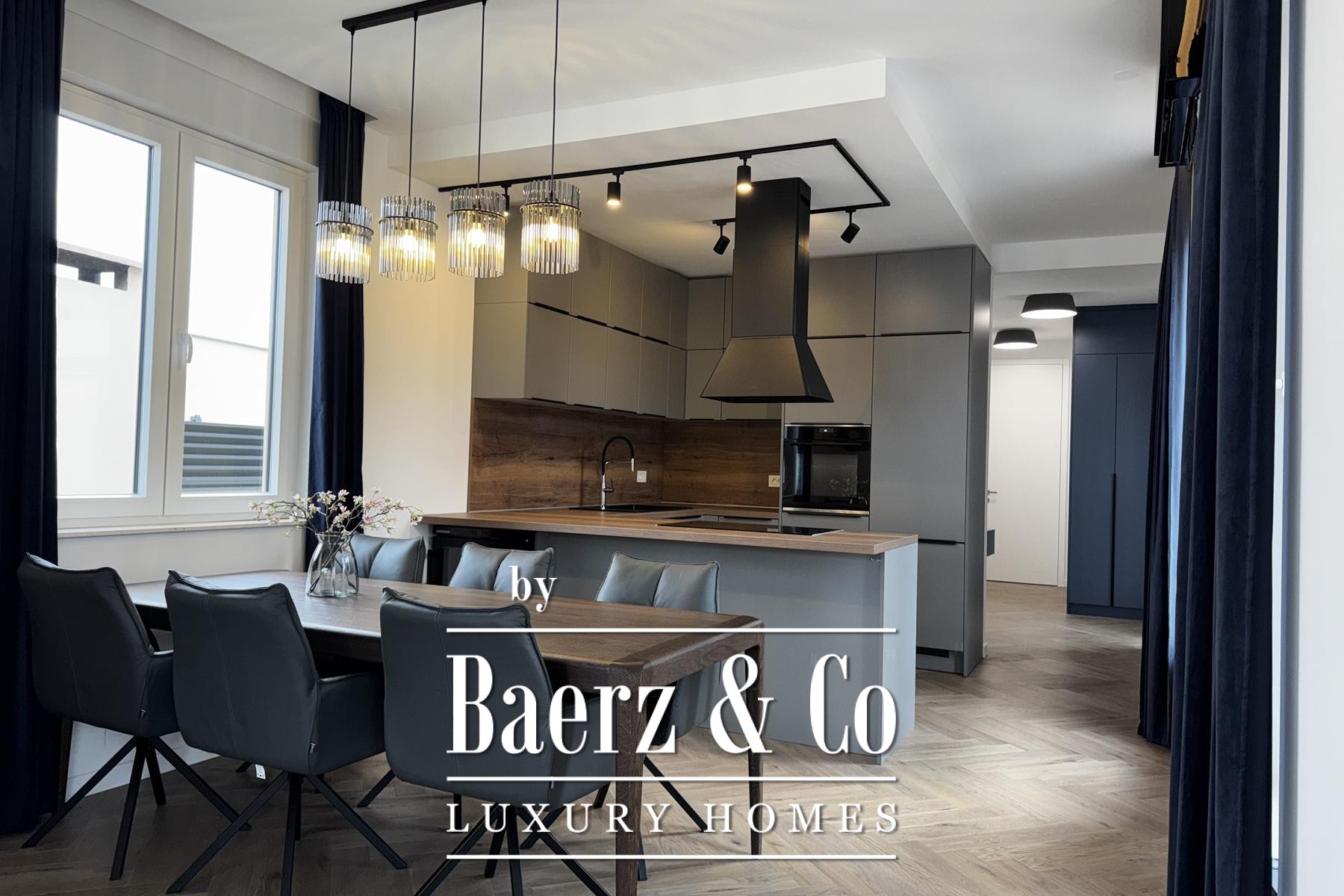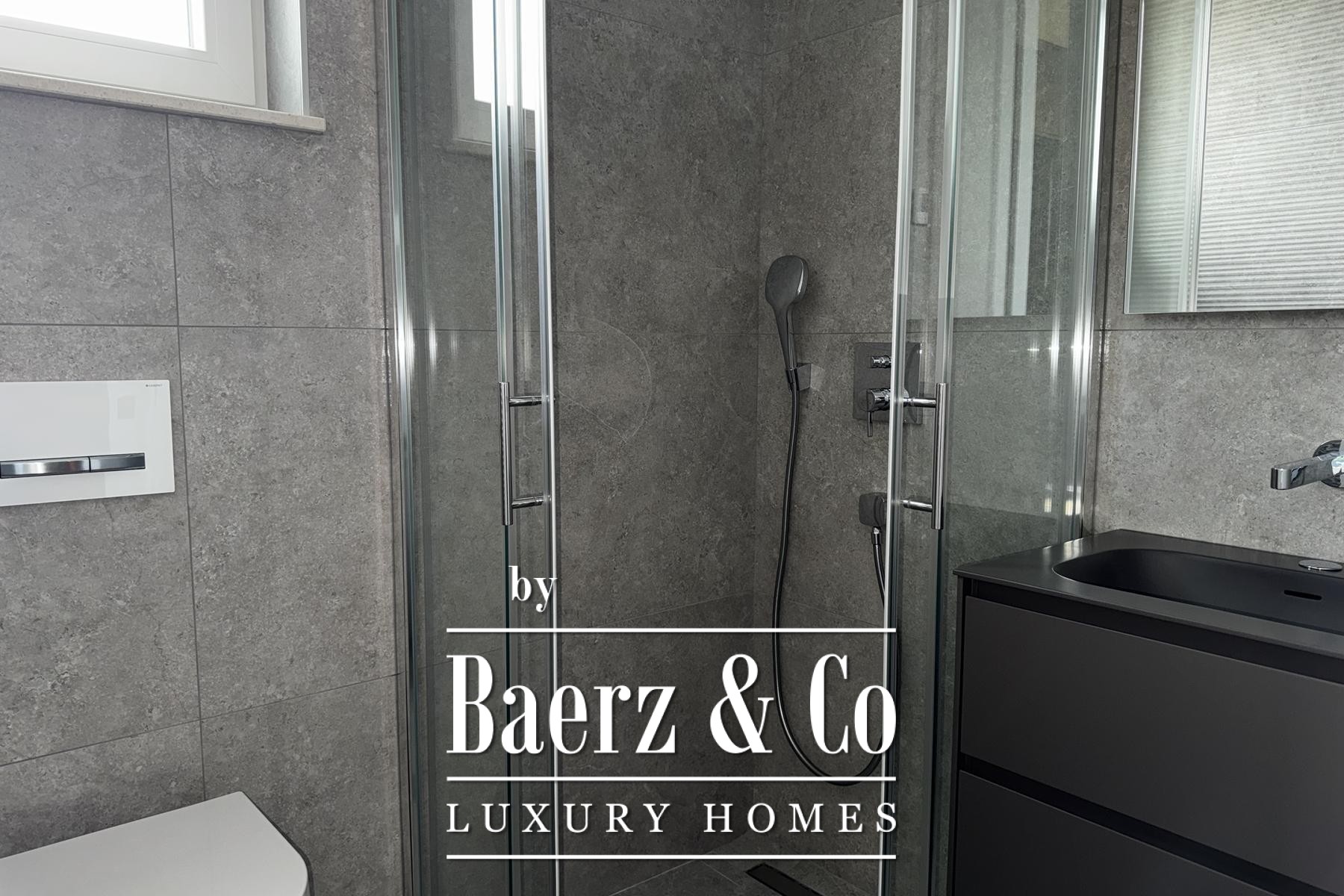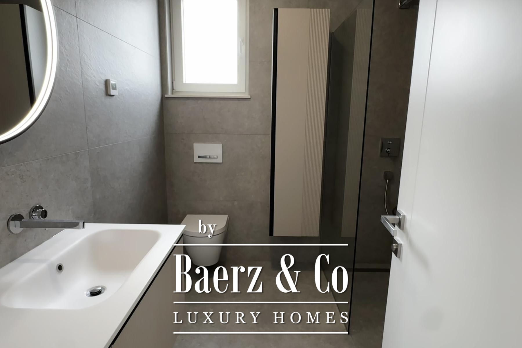 Upstairs, three bedrooms, including a master suite with walk-in wardrobe and a secondary suite with private bathroom and terrace access, deliver a thoughtful balance of privacy and light. Rich materiality abounds: three-layer parquet flooring, solid wood stairs, full-height doors, and quality finishes establish an atmosphere of understated elegance.