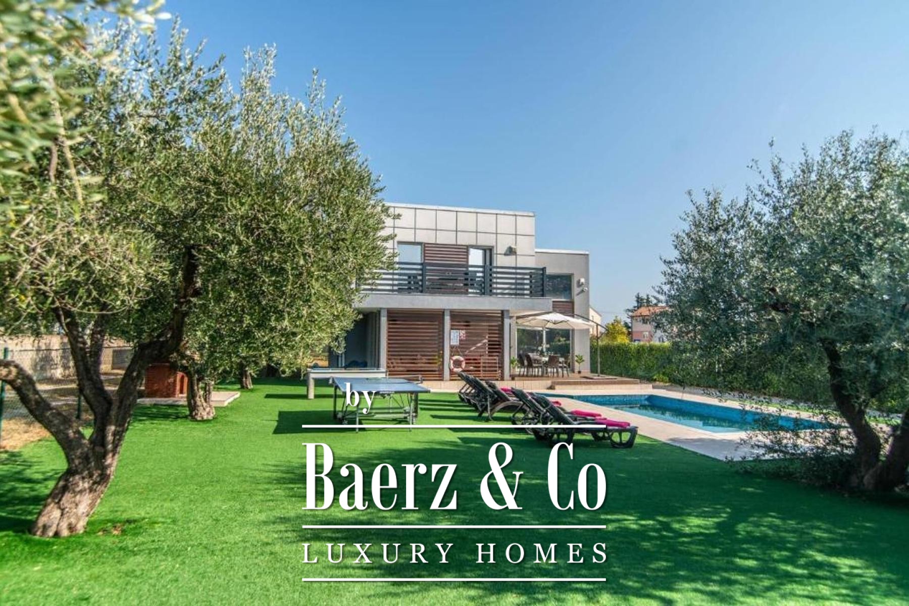 Villa Vodnjan with panoramic sea views stands as a testament to modern design and refined privacy, minutes from the heart of Vodnjan and vital amenities. This property offers 173 m² of thoughtfully arranged living space within a secure and landscaped plot of 1,294 m², ensuring seclusion and an open outlook over nature, the Brijuni archipelago, and the sea stretching towards Pula.