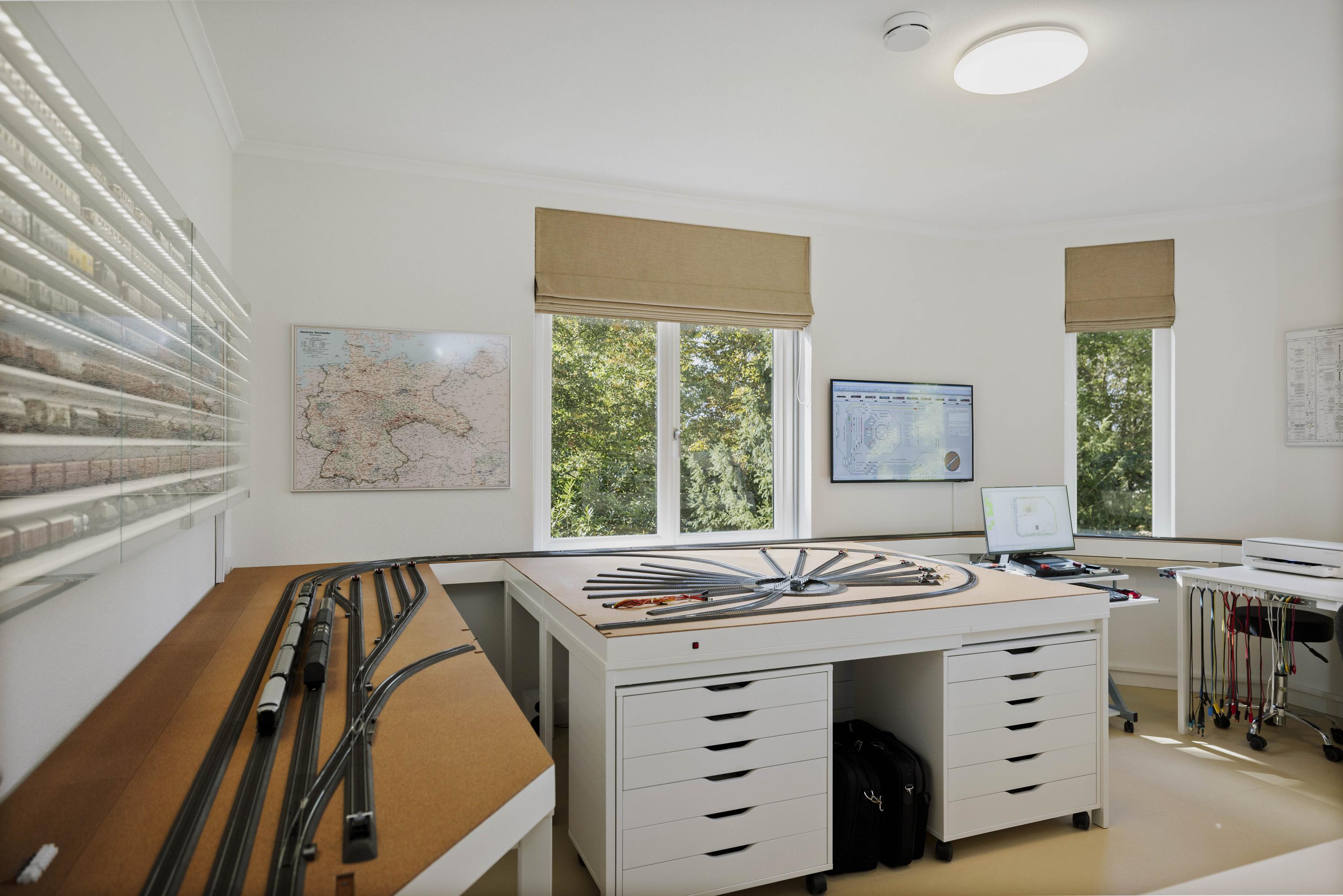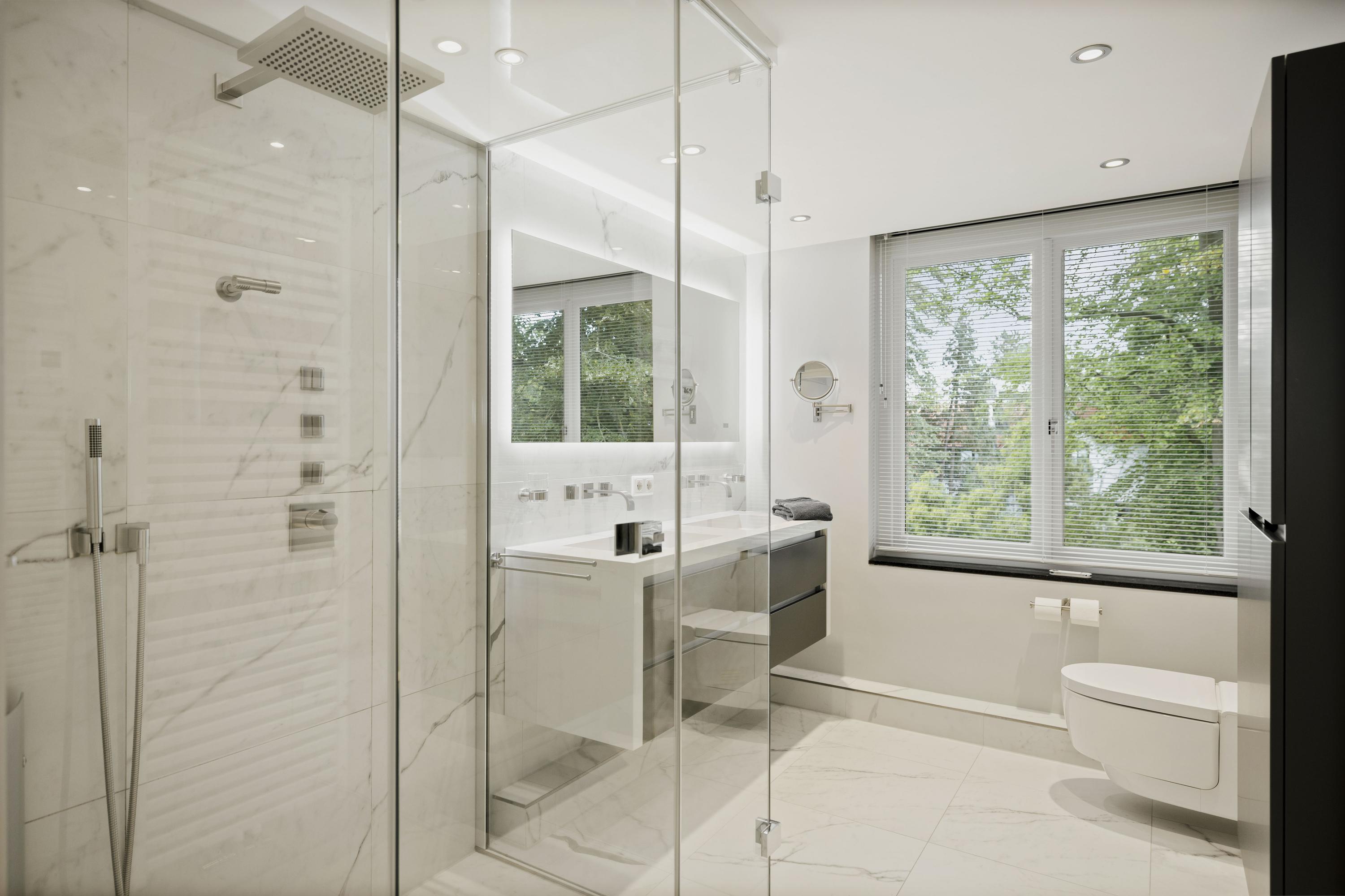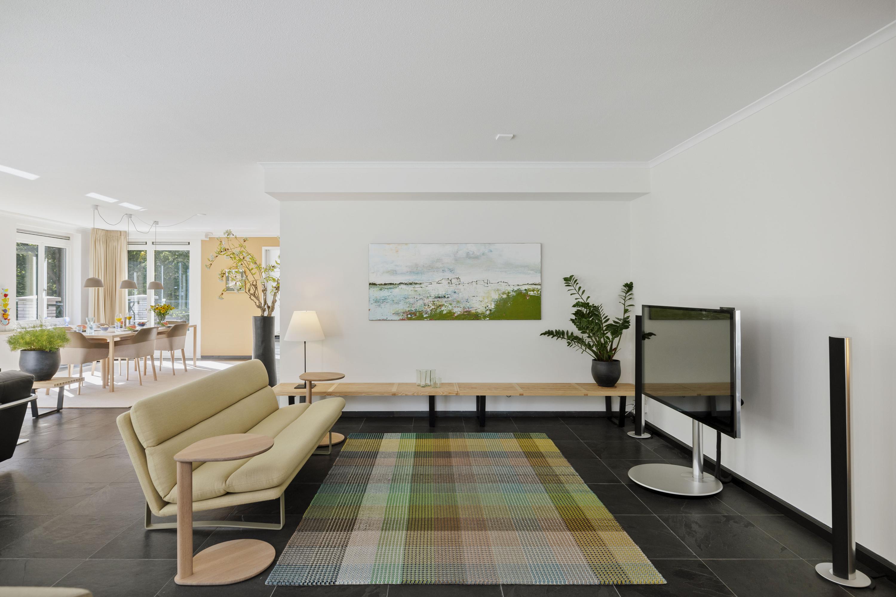 Living in the greenest of surroundings becomes possible in the Parkvilla, a small-scale apartment building constructed in 2000, consisting of four floors with a total of six flats. Built under architecture, the ground floor apartment offers all the facilities you want, including storage and parking under one roof. The Parkvilla is beautifully situated, with a view of trees and meadows.