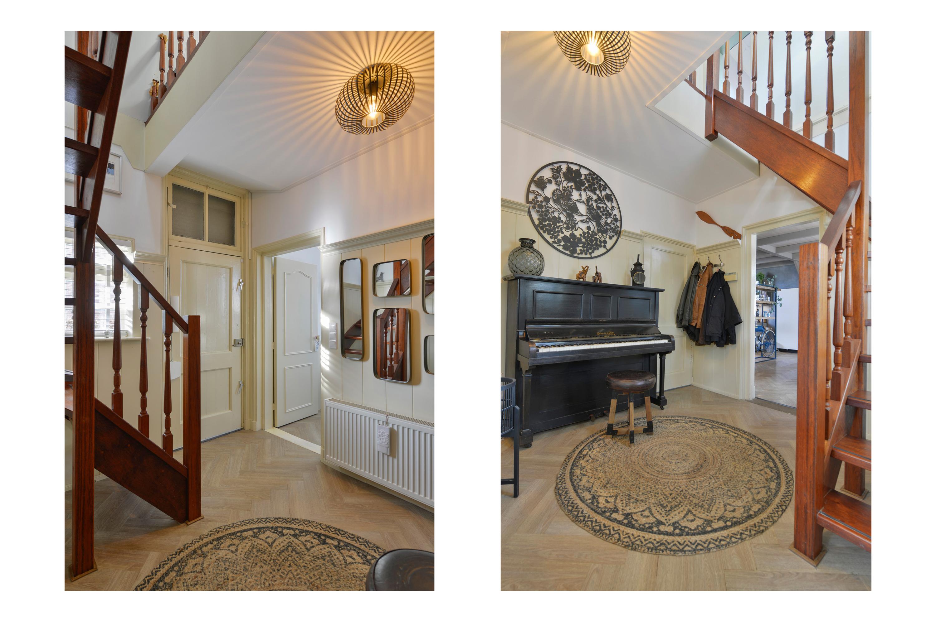 Ground floor: entrance hall with meter cupboard access to the cellar and staircase. Atmospheric and bright living room at the front of the house with an adjoining cosy raised room. From both the hall and the raised room the spacious kitchen is accessible. This modern kitchen was renewed in 2022 and fitted with various built in appliances. There is also a generous utility room with the central heating system and laundry connections.