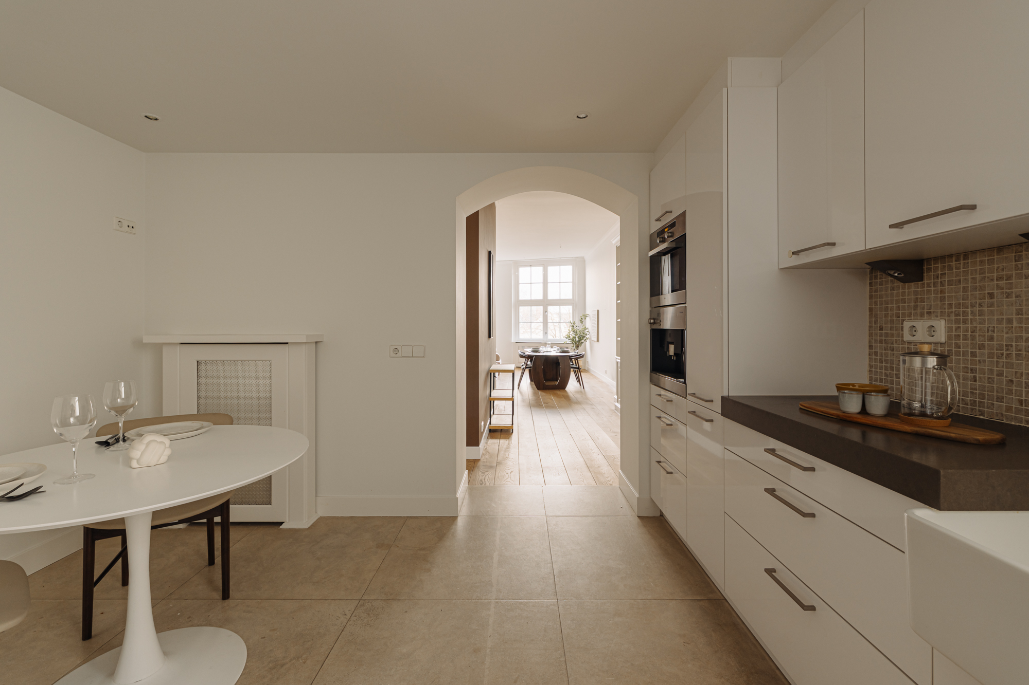 Este ático en el Anillo de los Canales de Ámsterdam se encuentra en uno de los complejos residenciales más prestigiosos de la ciudad y ofrece 178 m² de exquisita vivienda distribuidos en tres niveles. El acceso se realiza a través de una entrada majestuosa, servida por dos ascensores y aparcamiento subterráneo seguro, lo que garantiza de inmediato una sensación de privacidad y distinción. La primera planta de la vivienda se abre a un amplio salón, bañado de luz natural por generosos ventanales con vistas al canal, y cuenta con techos altos, chimenea abierta y mobiliario a medida que facilita un elegante despacho en casa. La cocina-comedor adyacente, equipada con electrodomésticos de alta gama y soluciones de almacenamiento cuidadosamente pensadas, ofrece un entorno refinado tanto para comidas informales como para recepciones privadas.
