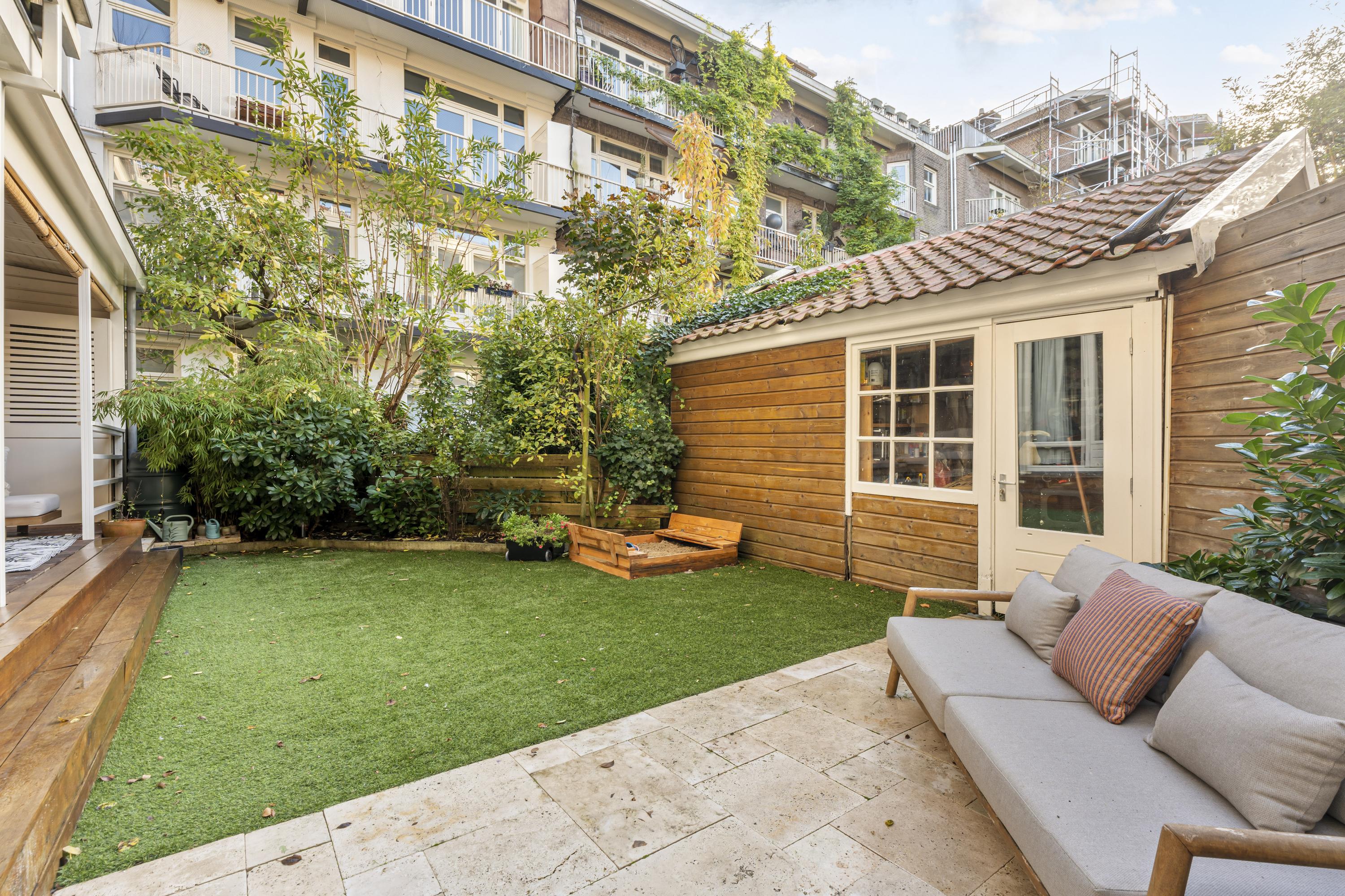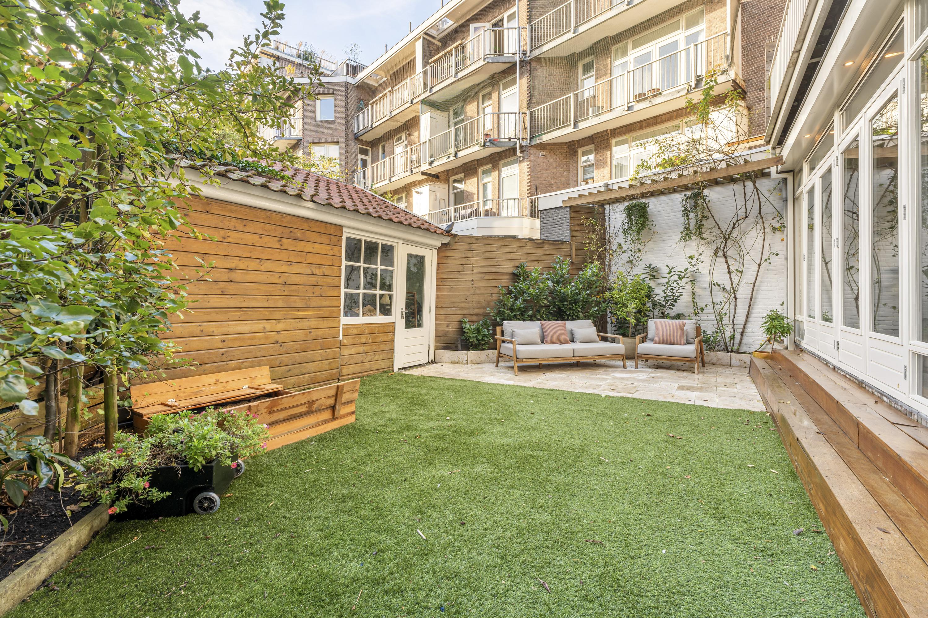 Este apartamento en planta baja en Ámsterdam ofrece una experiencia residencial refinada en el popular barrio Rivierenbuurt, enclavado en la hermosa Merwedeplein. Con aproximadamente 117 m² de espacio habitable, este hogar combina interiores generosos con una distribución cuidadosamente diseñada. El jardín orientado al suroeste, de 47,7 m², proporciona un notable grado de privacidad y amplía los espacios interiores con una veranda cubierta y una casa de jardín independiente.
