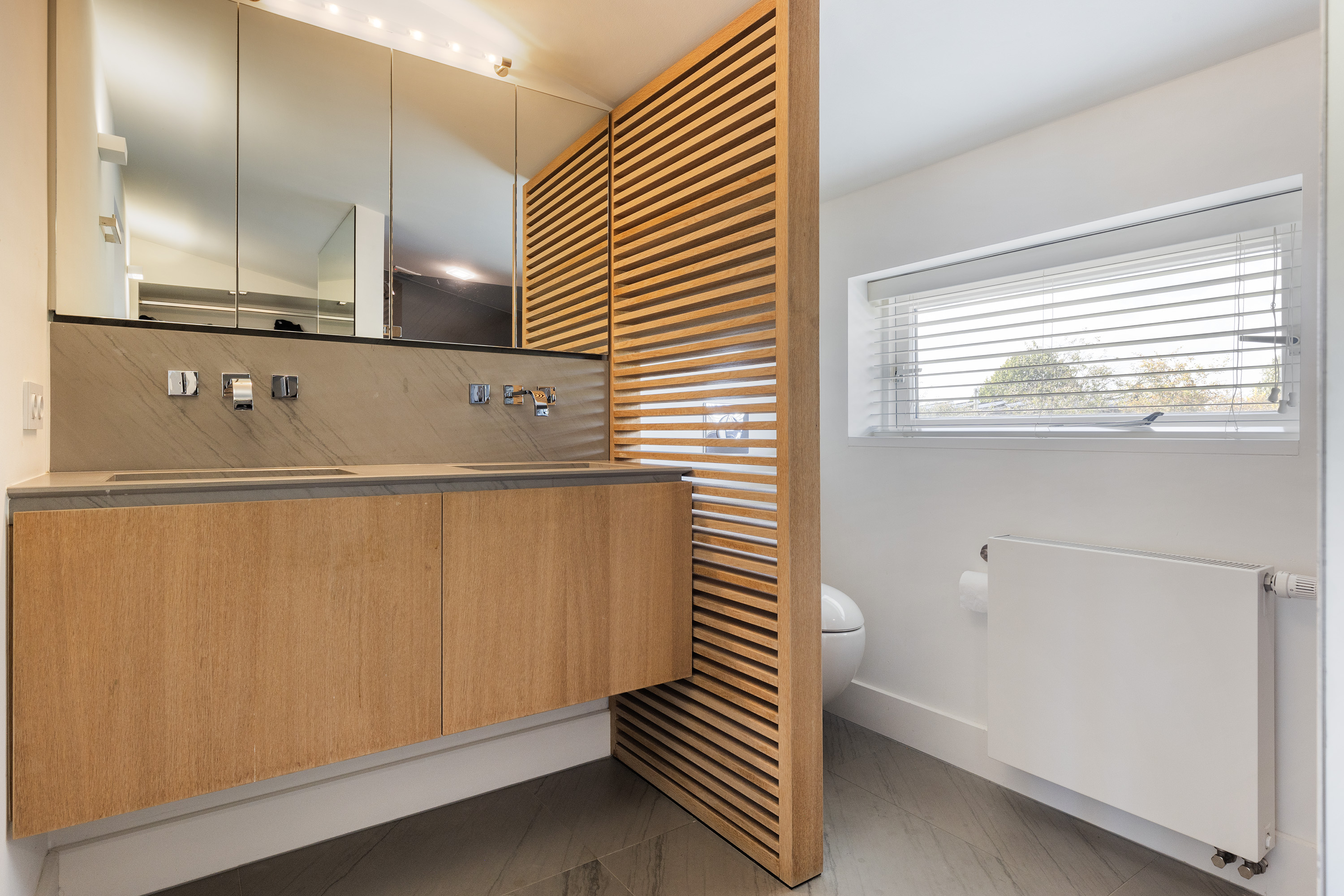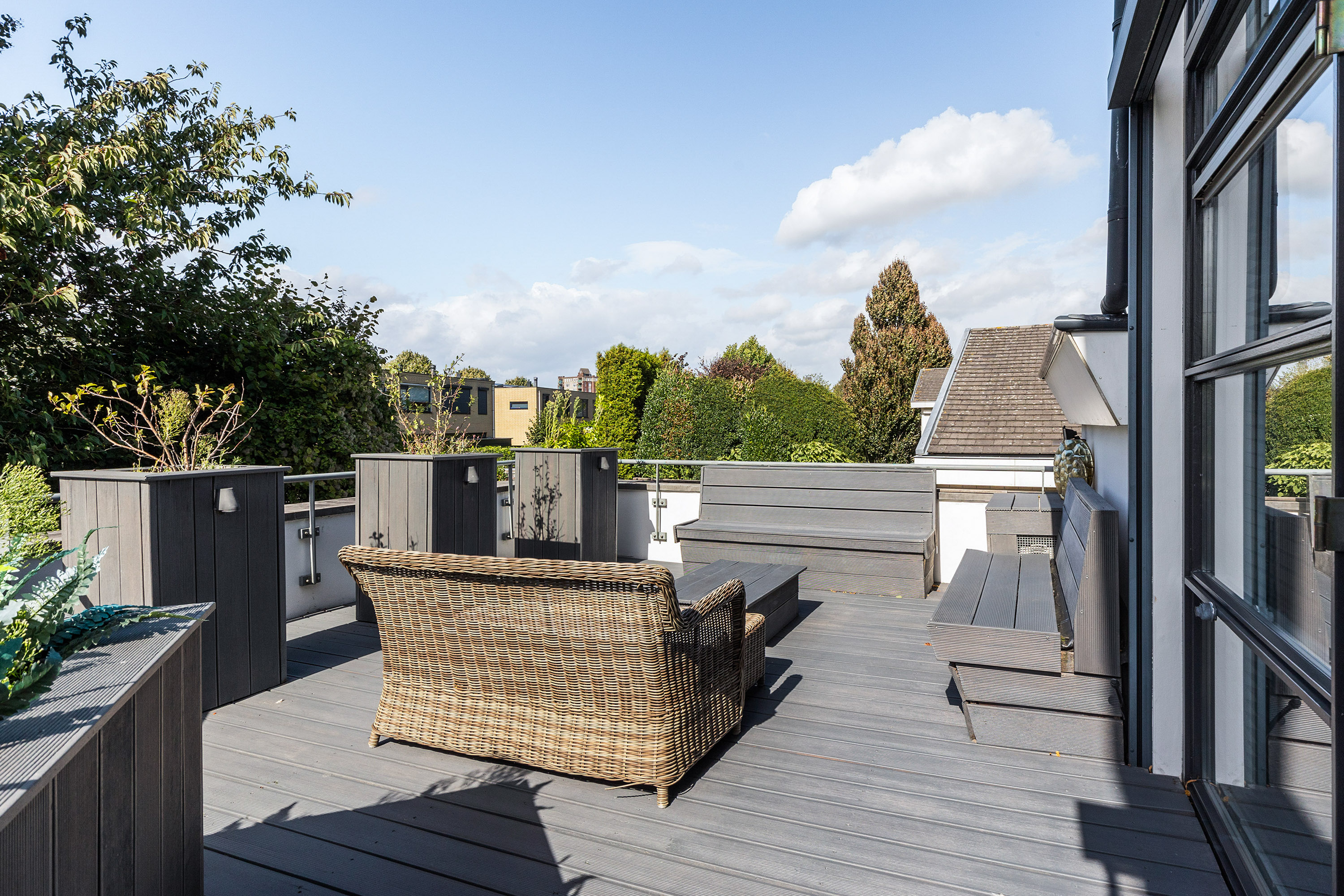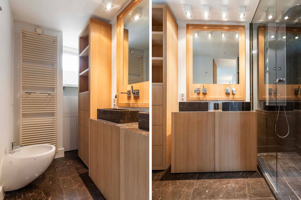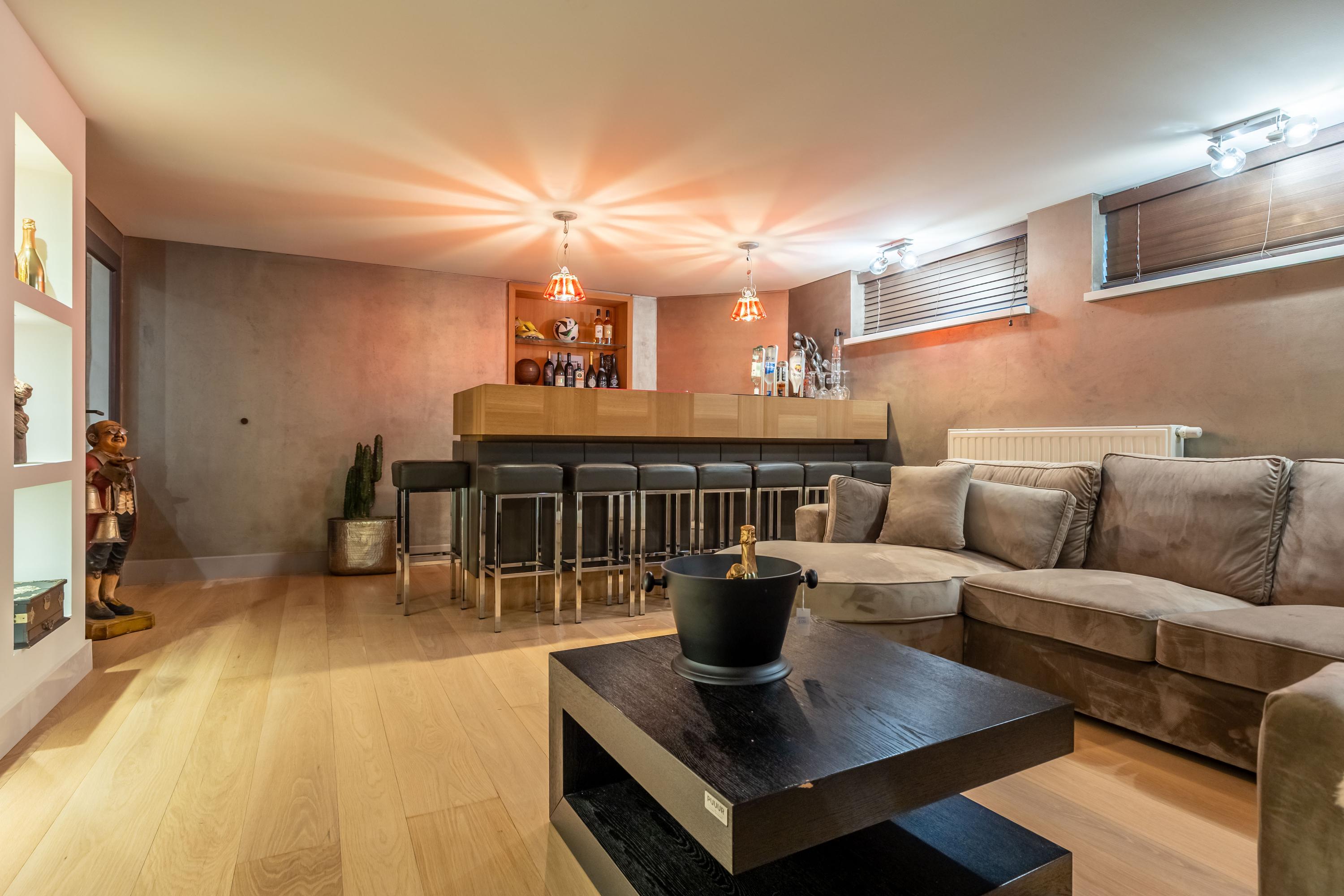 Rehabilitada en 2011 por Vlassak Verhulst y perfeccionada en 2025, la villa integra tecnología y estética de manera impecable. Entre los detalles exclusivos destacan los suelos de roble de Ebony and Co., acabados de paredes puddingstuc y mobiliario de cocina Arclinea con todos los electrodomésticos integrados imaginables. En la planta baja, la zona wellness alberga una piscina climatizada, sauna, hammam y un bar moderno; el conjunto se completa con un garaje integral y una suite para au pair, reflejando un lujo cuidadosamente planificado.