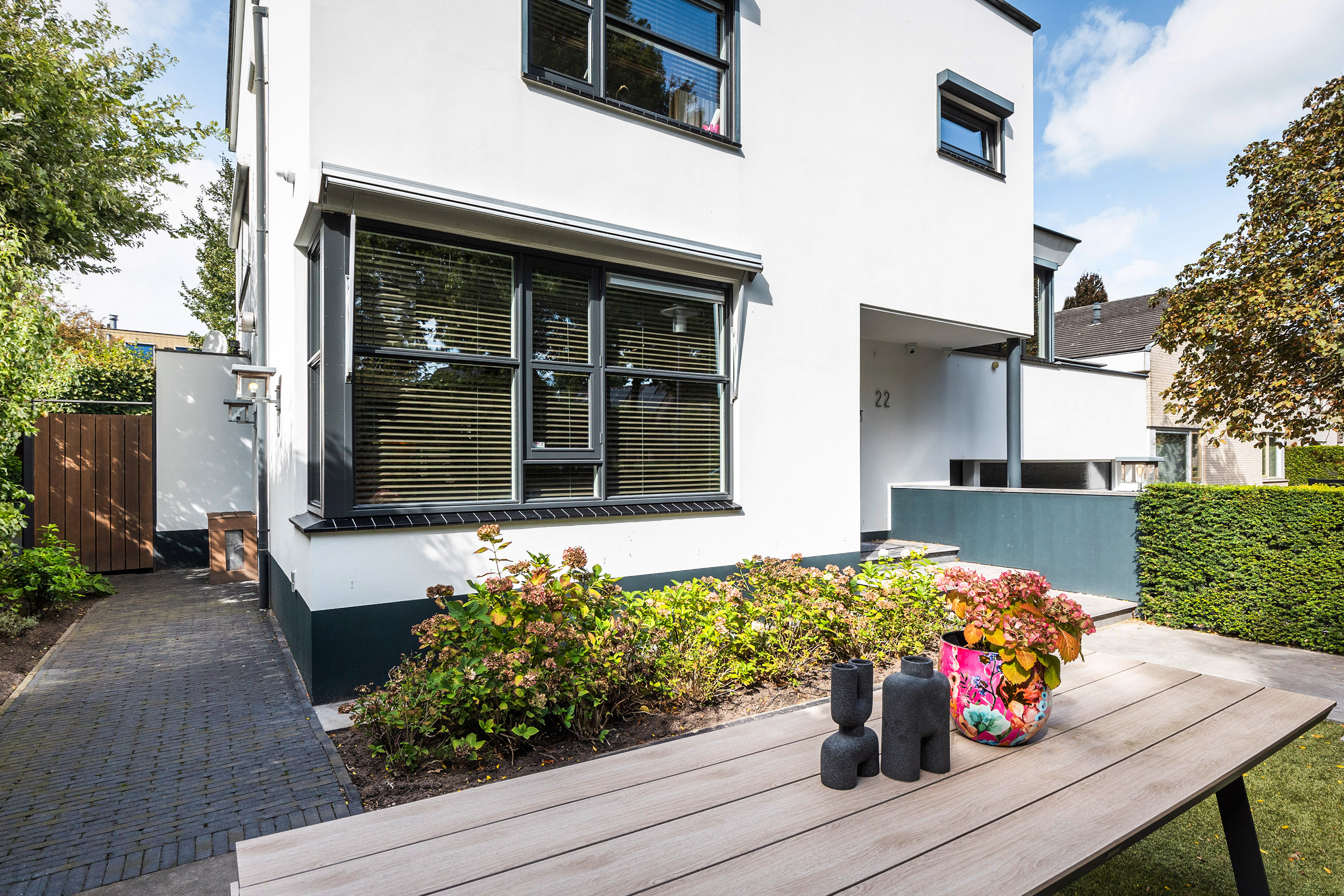 La villa Apeldoorn, con un diseño inspirado en Ibiza, representa una expresión excepcional de lujo y tranquilidad, ofreciendo 393 m² de superficie habitable en una parcela de 585 m². Esta propiedad singular fusiona el ambiente de un hotel boutique en Ibiza con la calidez de un refinado hogar familiar. Concebida para quienes priorizan la privacidad y la excelencia, la villa se articula en niveles medios, lo que permite la entrada de luz natural y una circulación sencilla por amplias zonas comunes y seis dormitorios, cuatro de los cuales cuentan con baños de mármol a medida.