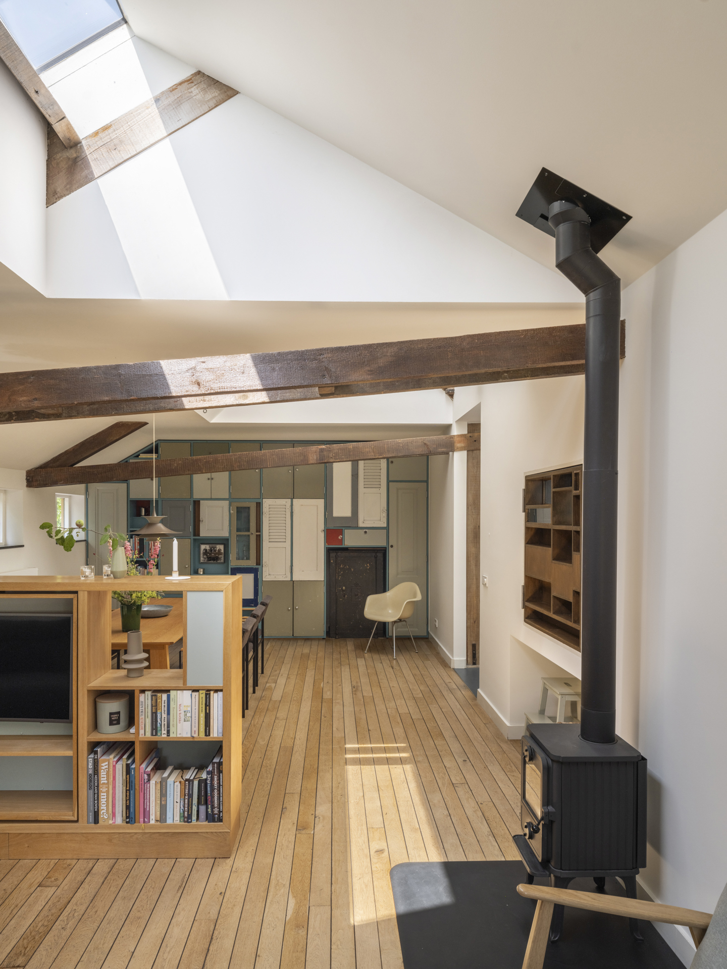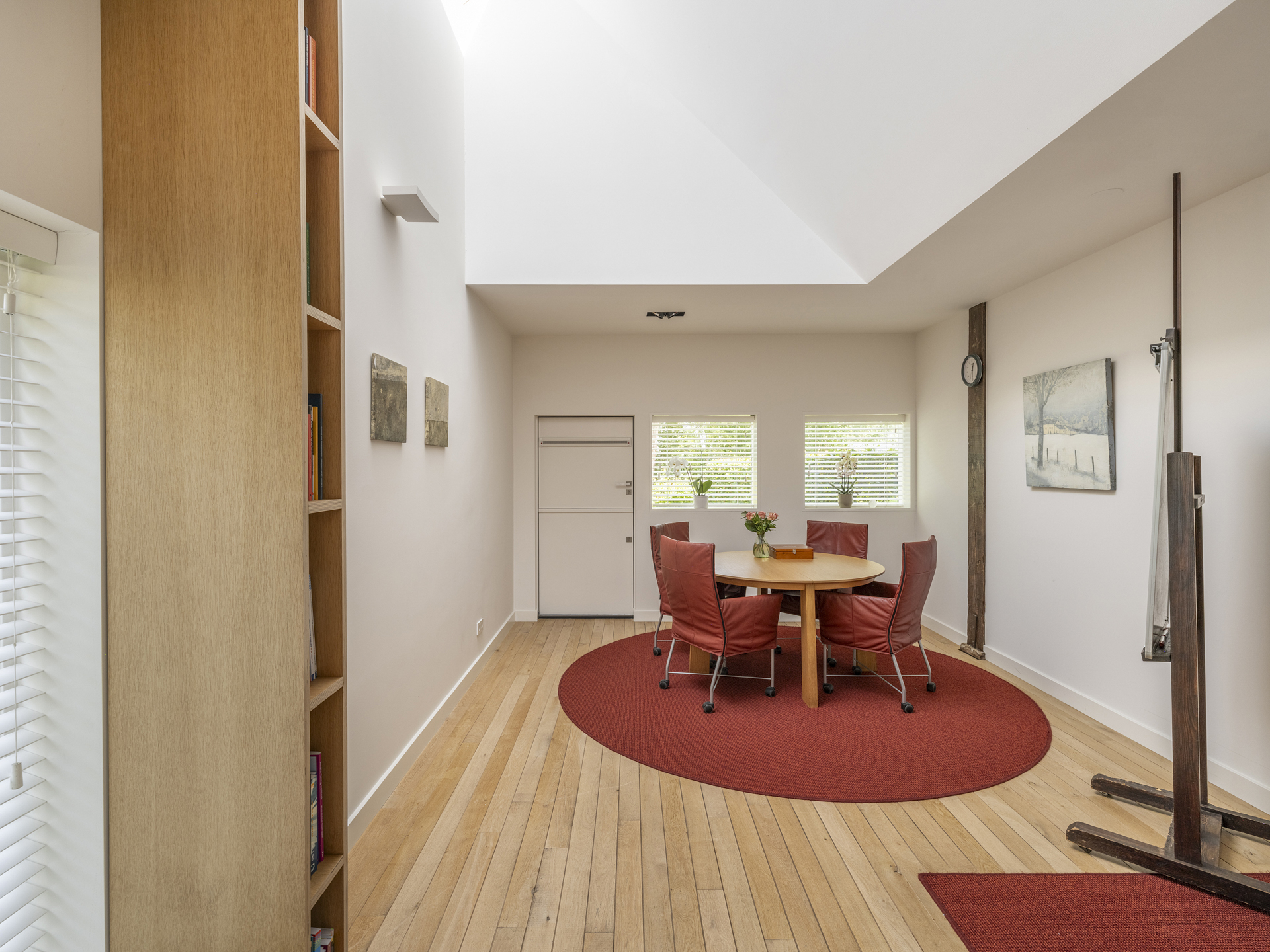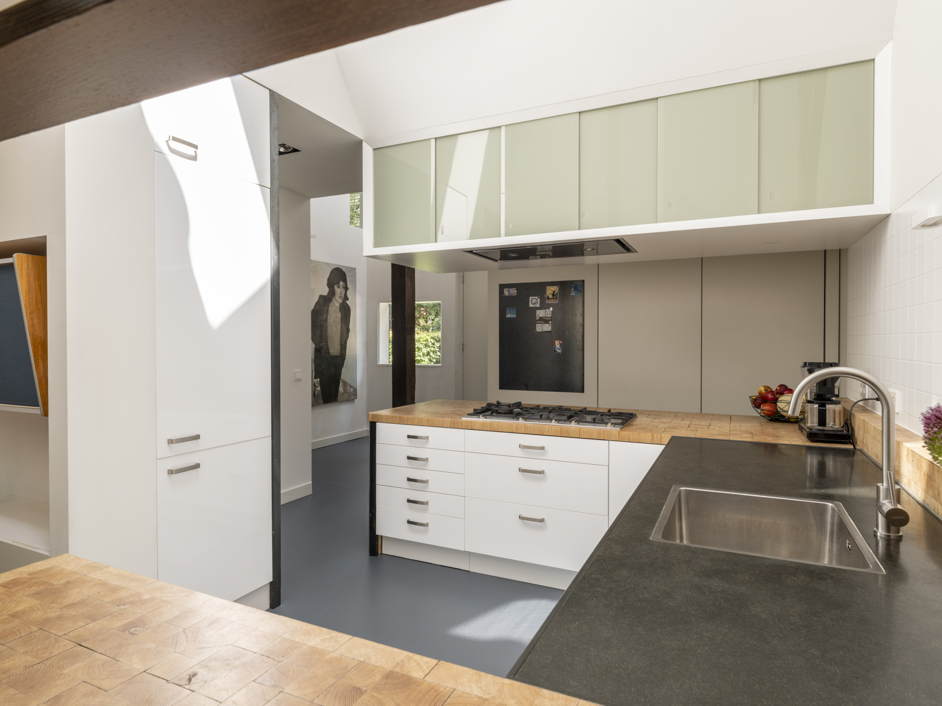 La vivienda abarca 248 m² sobre una parcela privada de 2.395 m², encontrando el equilibrio entre apertura y estructura. Al entrar, la alta puerta principal da paso a una conjunción de líneas entre pasado y presente: carpintería a medida, cocina en forma de U con madera al corte y piedra natural, y un salón orientado hacia jardines maduros. En toda la propiedad, las vigas originales y las estufas danesas de alta eficiencia aportan calidez. La distribución incluye cuatro dormitorios, un baño sofisticado con ducha a ras de suelo e iluminación integrada, y espacios multifuncionales aptos como consulta profesional o alojamiento para invitados con entrada independiente.