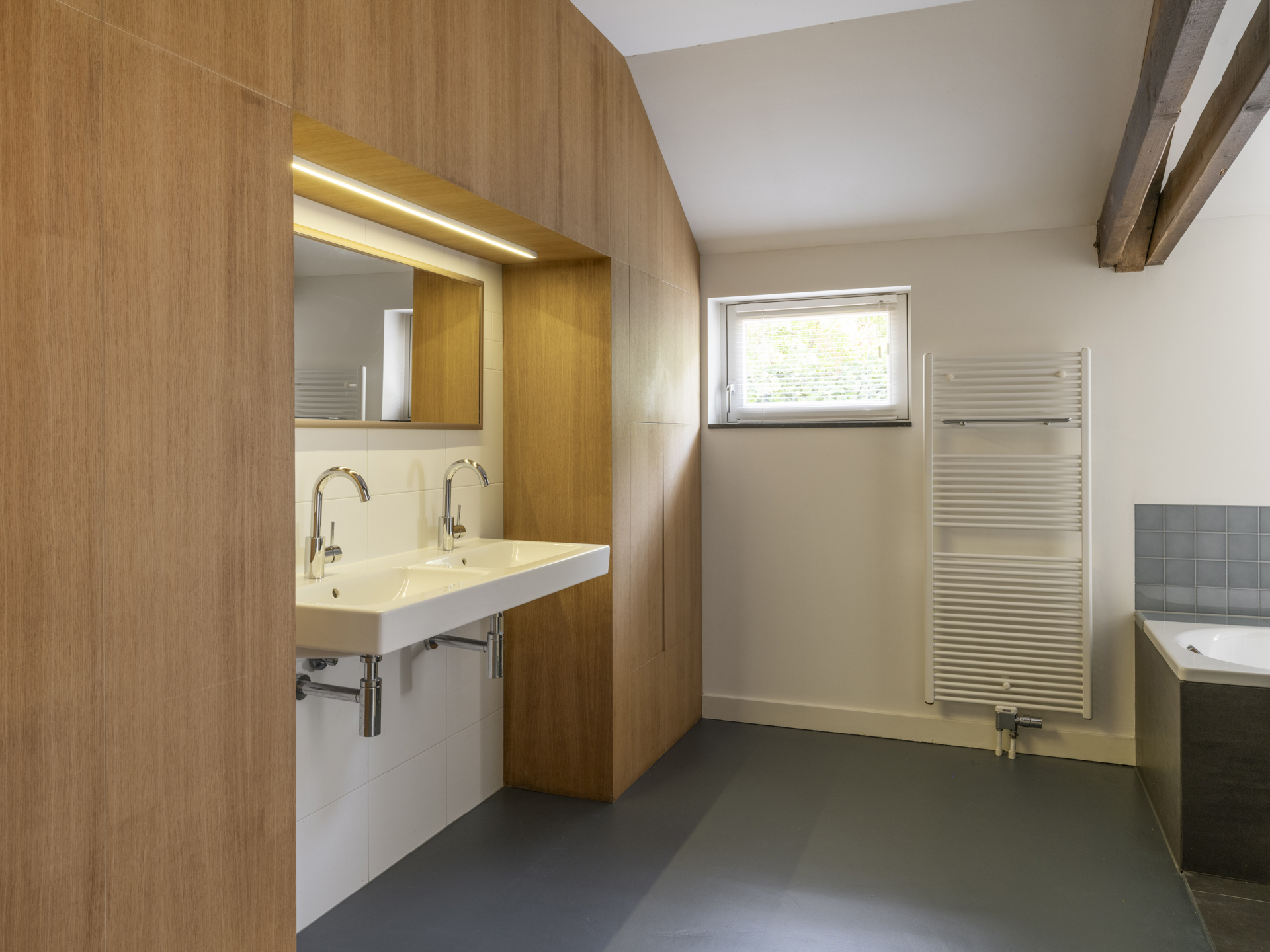 La Villa Bavel se sitúa en el límite del pueblo, conservando cuidadosamente sus orígenes como un granero de 1953 en una conversión arquitectónica supervisada por Henri Borduin. Esta villa, reinventada en 2014 y perfeccionada hasta 2025, marca su propio ritmo con vigas originales, acabados naturales táctiles y lucernarios que introducen la luz del día en cada espacio.