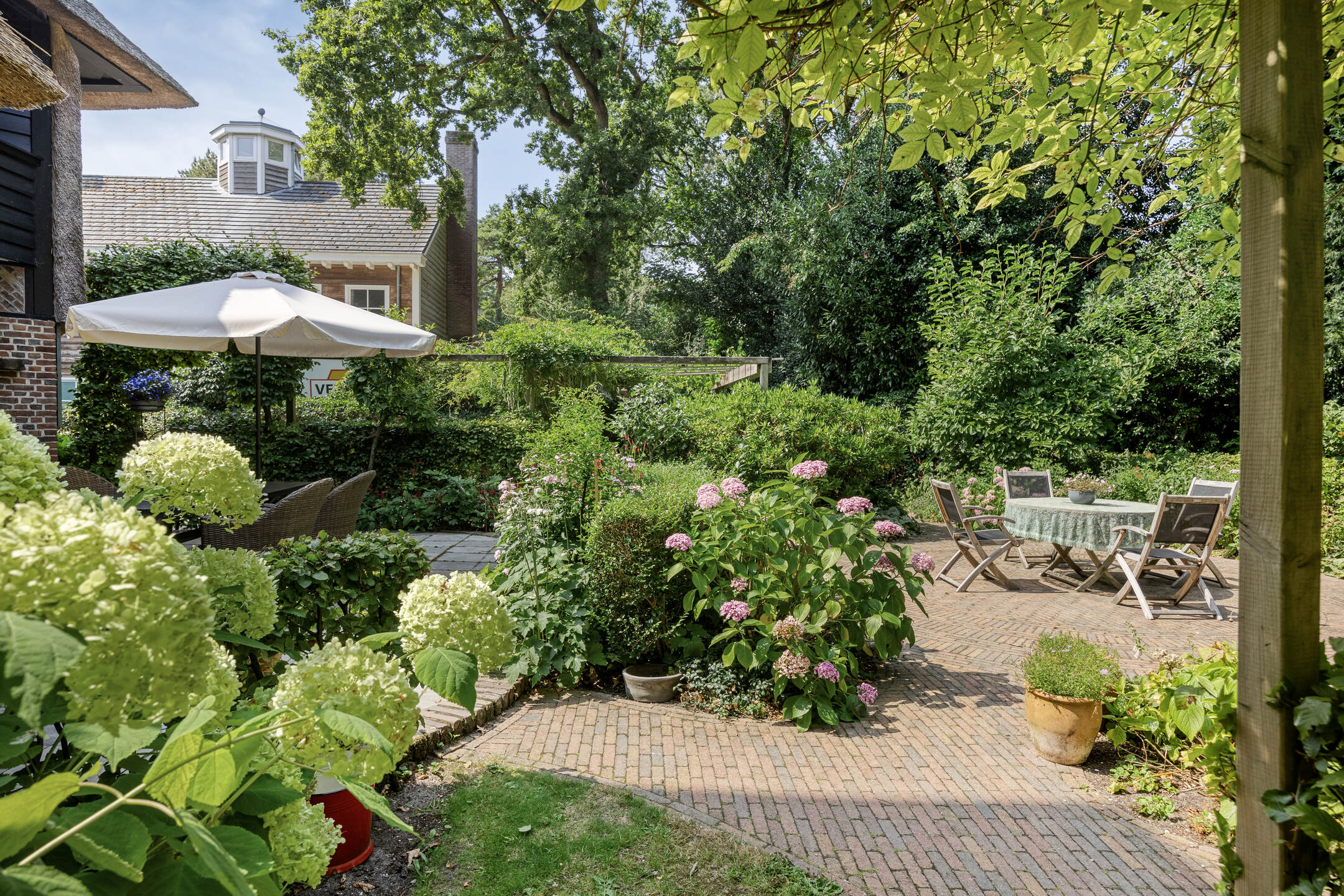 Al llegar por una amplia entrada privada, el tejado de paja y la mampostería original causan una impresión inmediata. El interior se distingue por sus suelos de roble macizo, chimeneas originales y armarios diseñados en época, conservando la sensación histórica e integrando el confort contemporáneo. La cocina, equipada con electrodomésticos Bosch y AEG, se abre a una terraza soleada y profundos jardines paisajísticos. Las zonas de servicio, el salón con ventana de bahía y la sala de televisión enfatizan la fluidez espacial y la luz, con calefacción por suelo radiante en zonas seleccionadas.