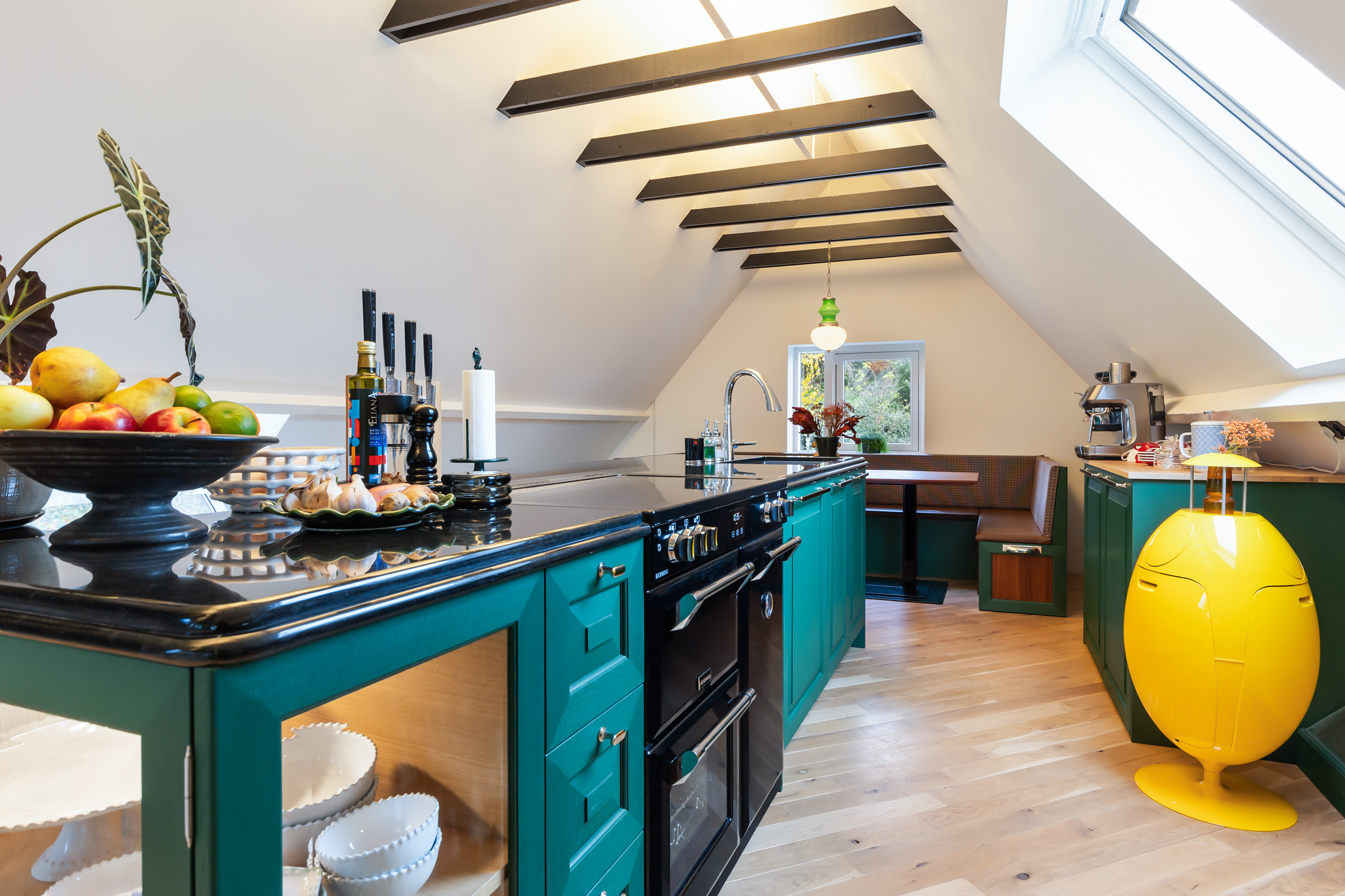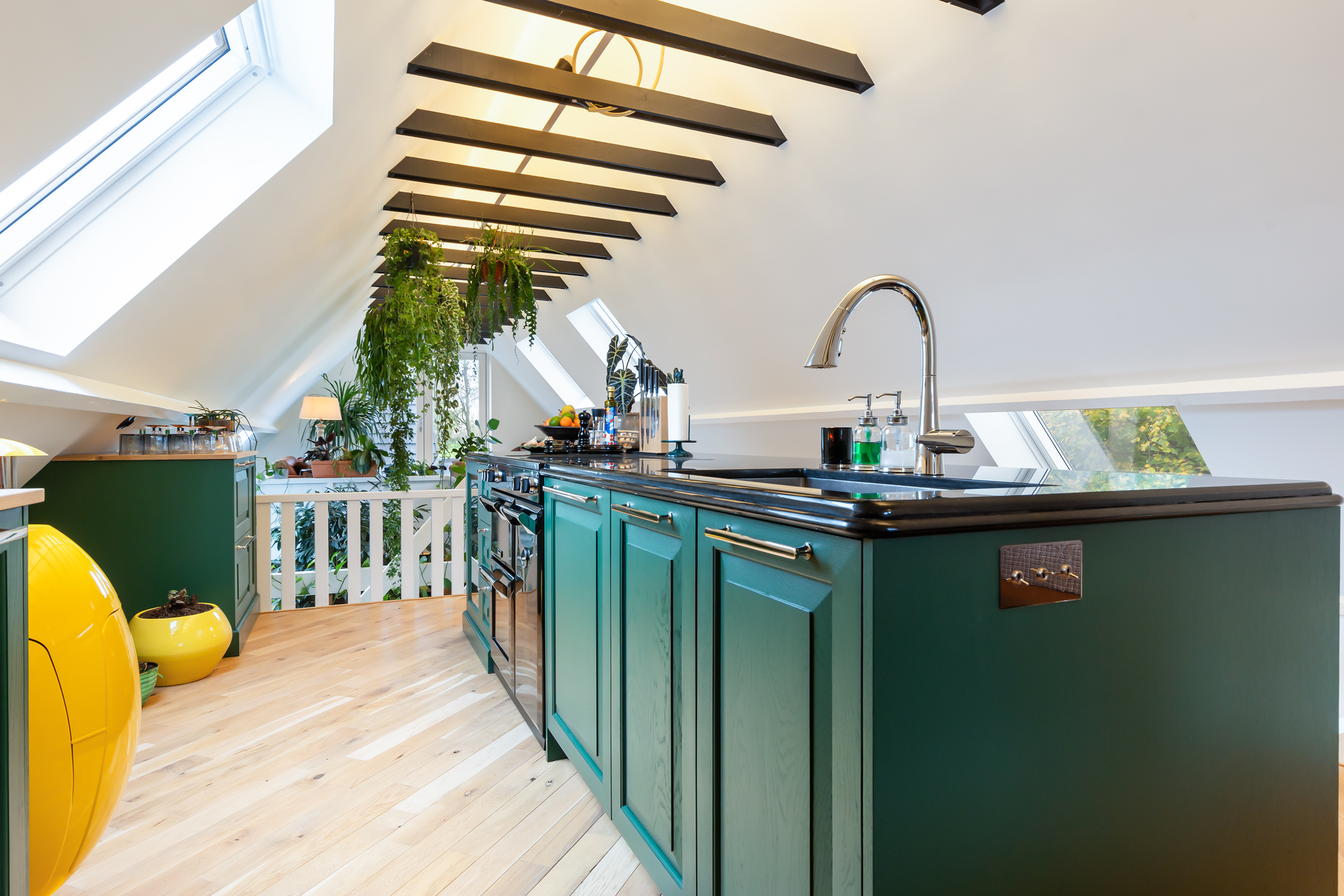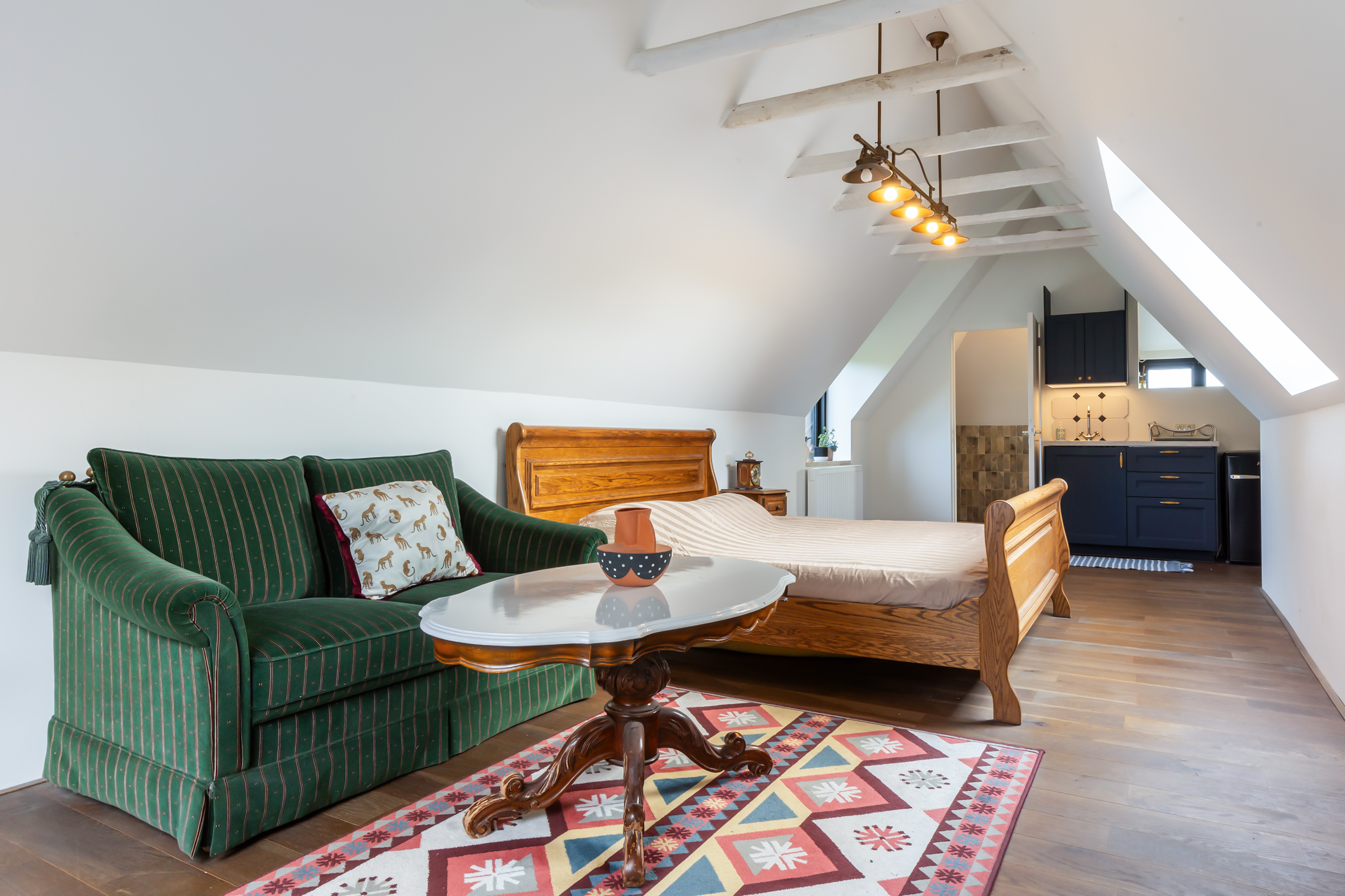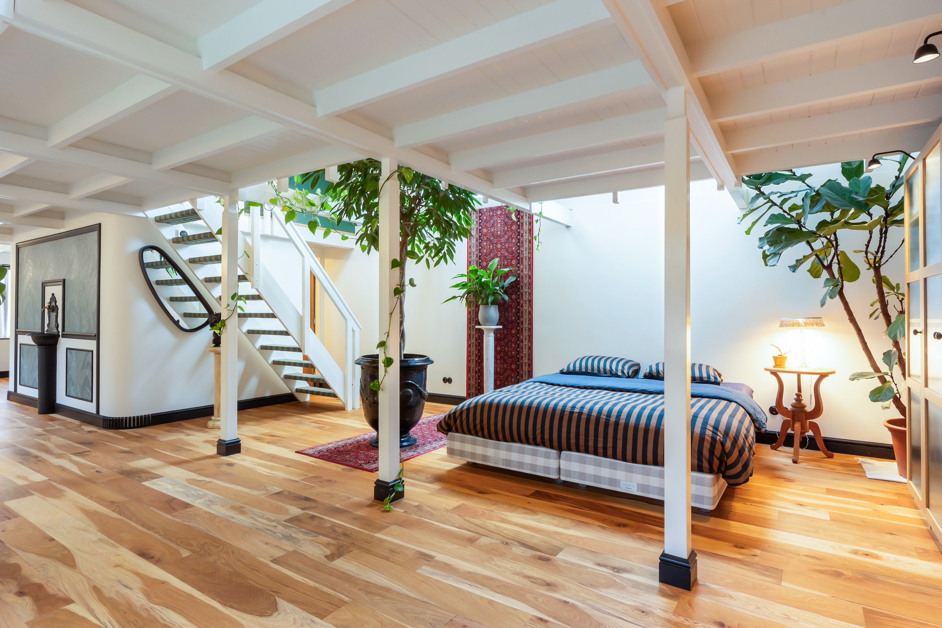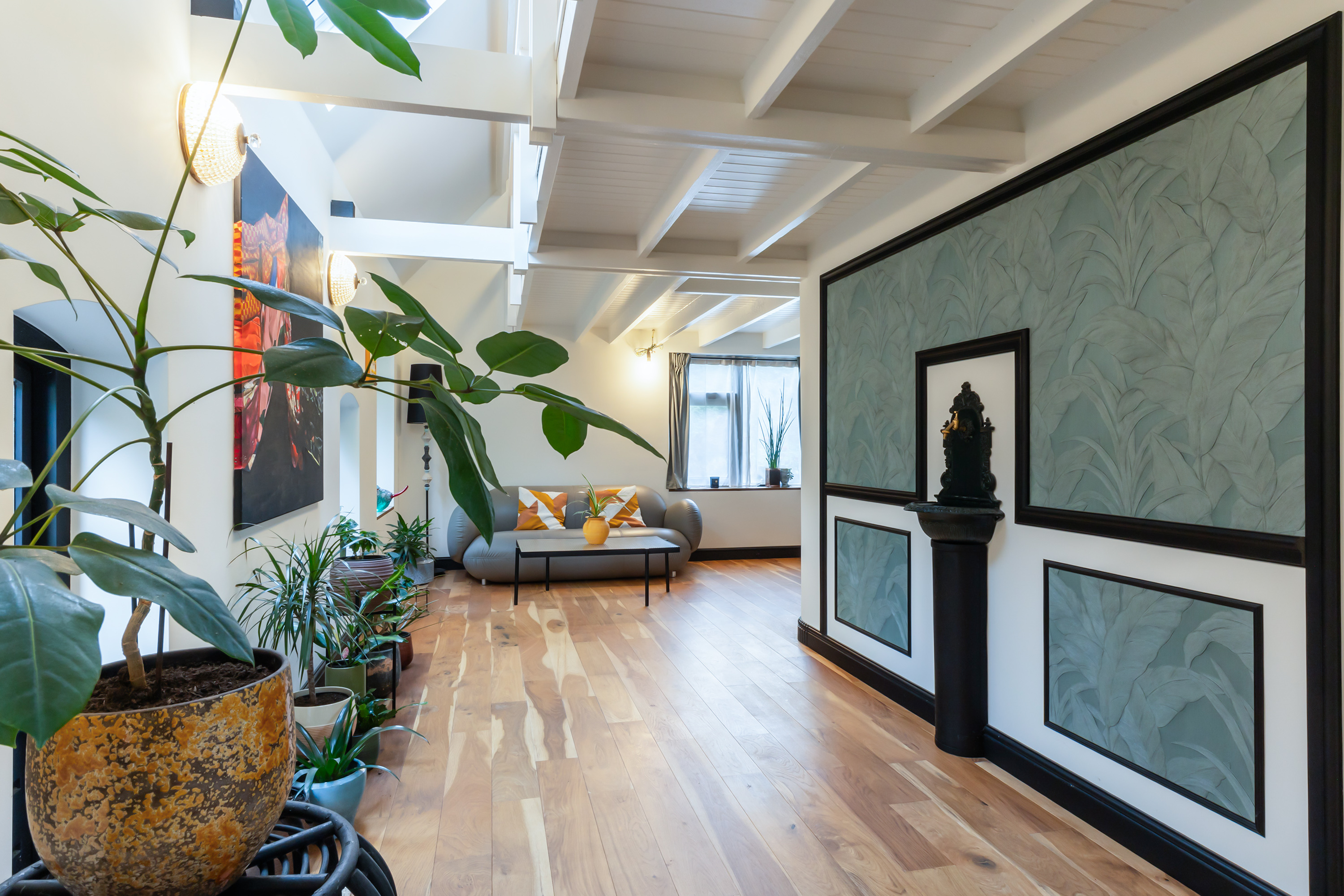 El espacio comercial adyacente ofrece aún más posibilidades para atelier, showroom o alojamiento para invitados, con vigas de madera negra y amplios ventanales que exhiben su artesanía y presencia. En el exterior, el jardín se funde con la naturaleza agrícola e incluye un pabellón, una terraza flotante y una plataforma privada, generando un refugio de intimidad. Árboles maduros y un diseño paisajístico pensado completan la sensación de serenidad.