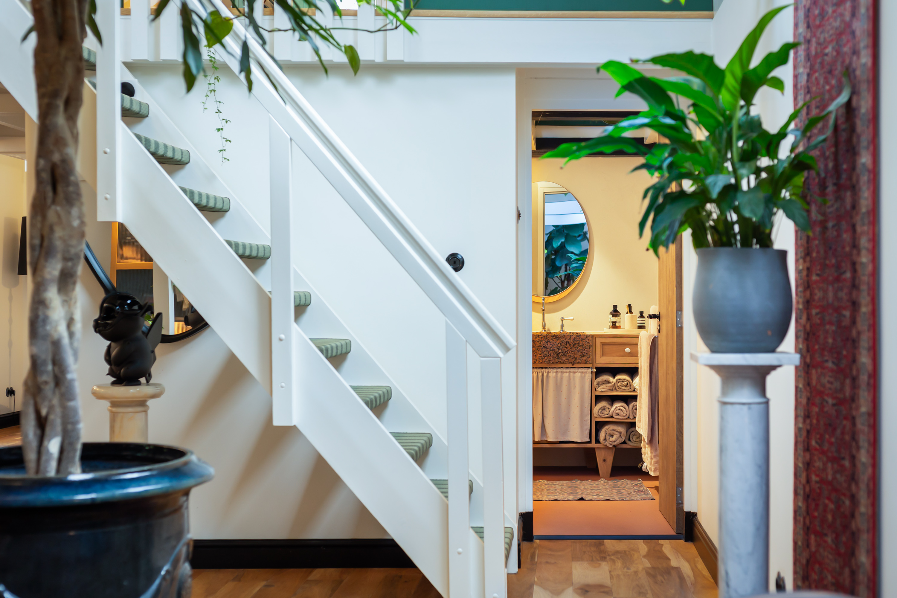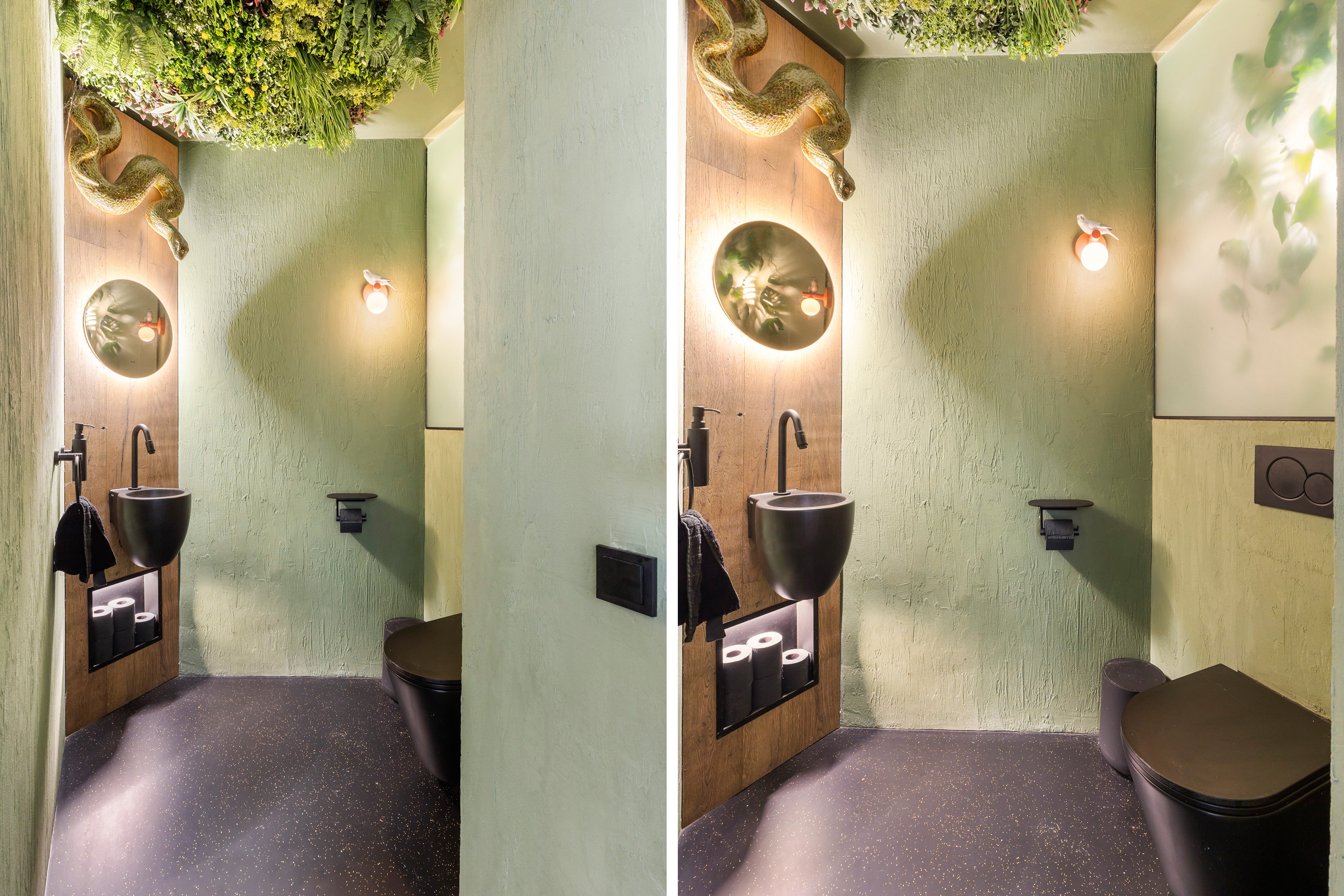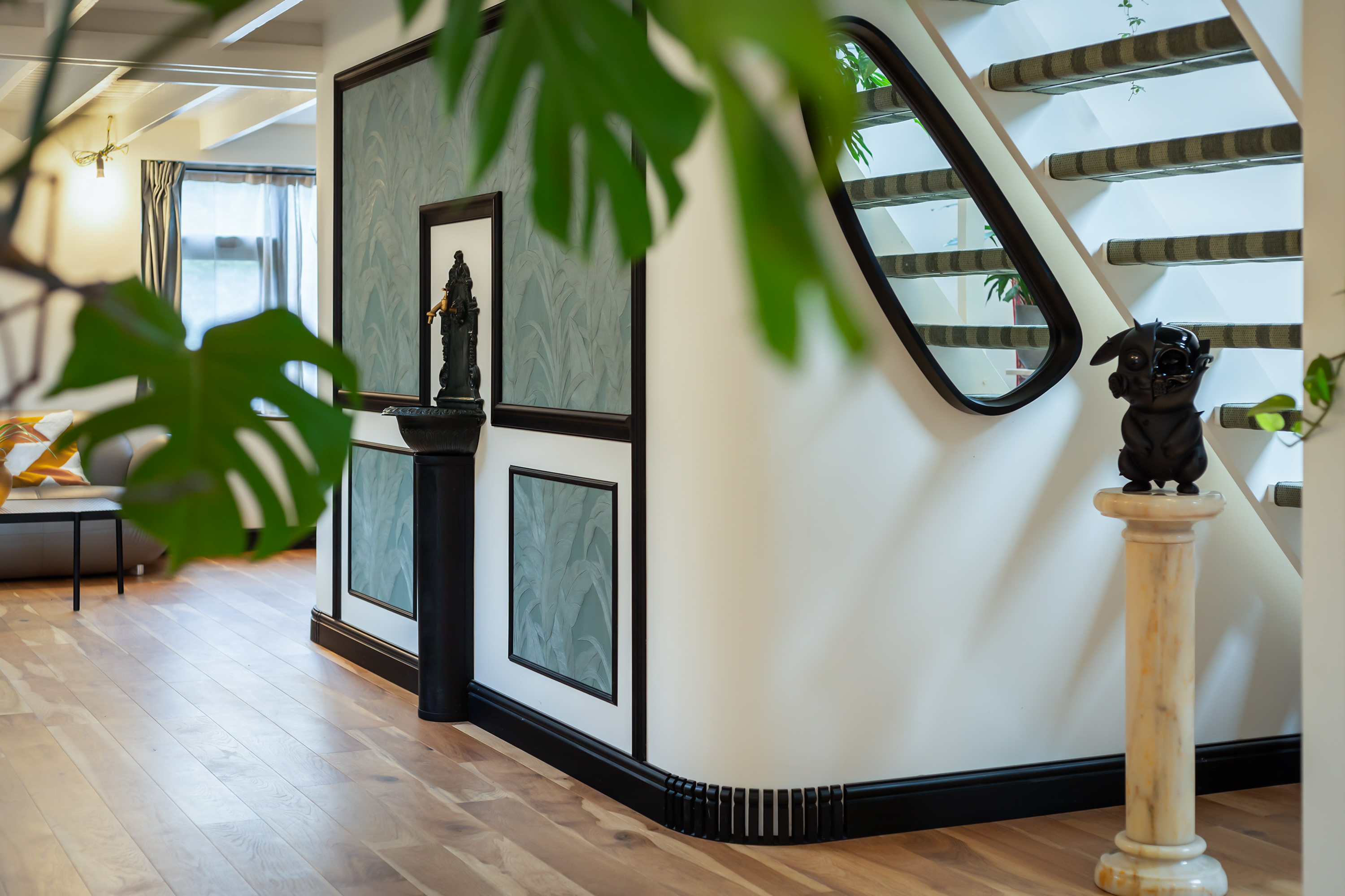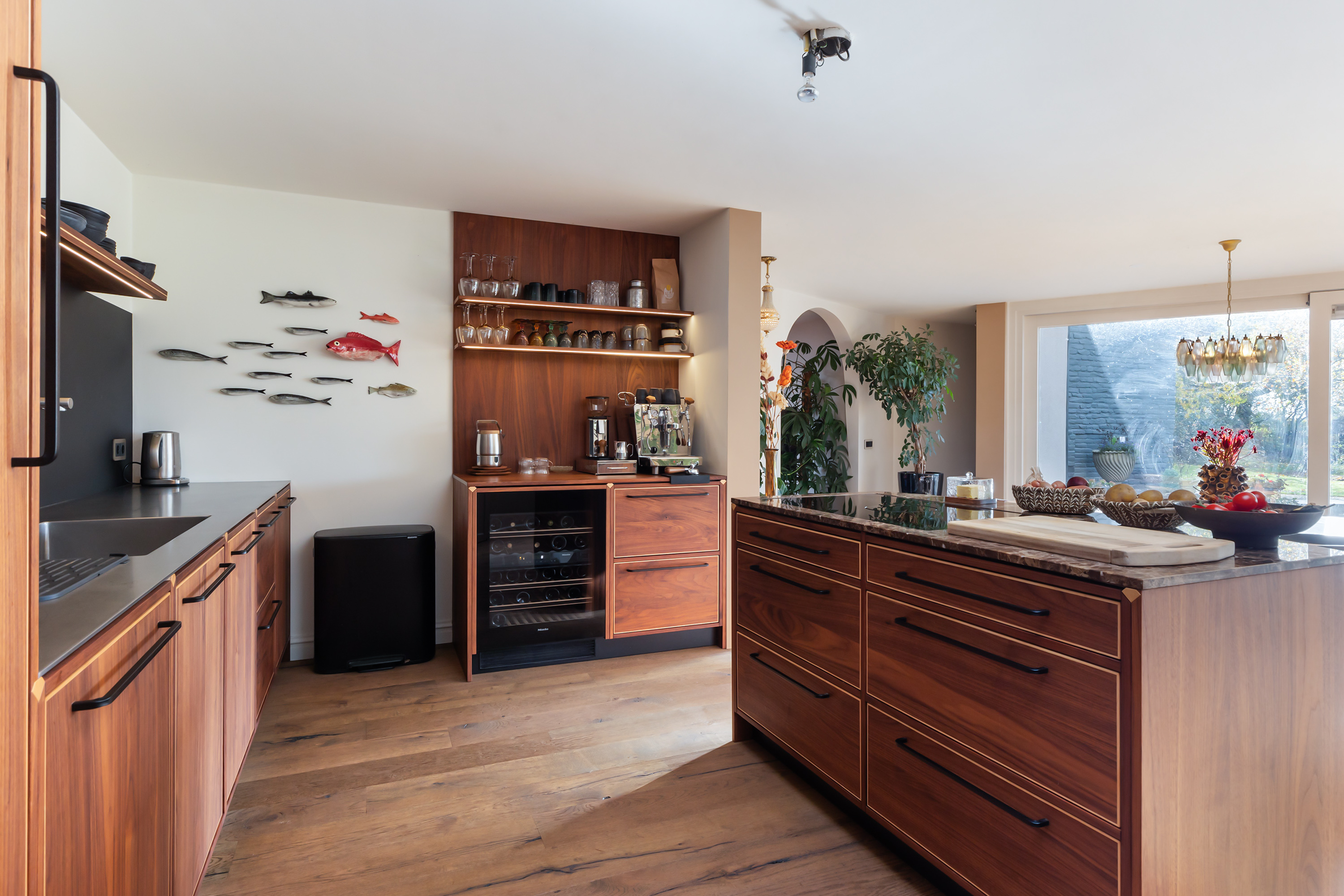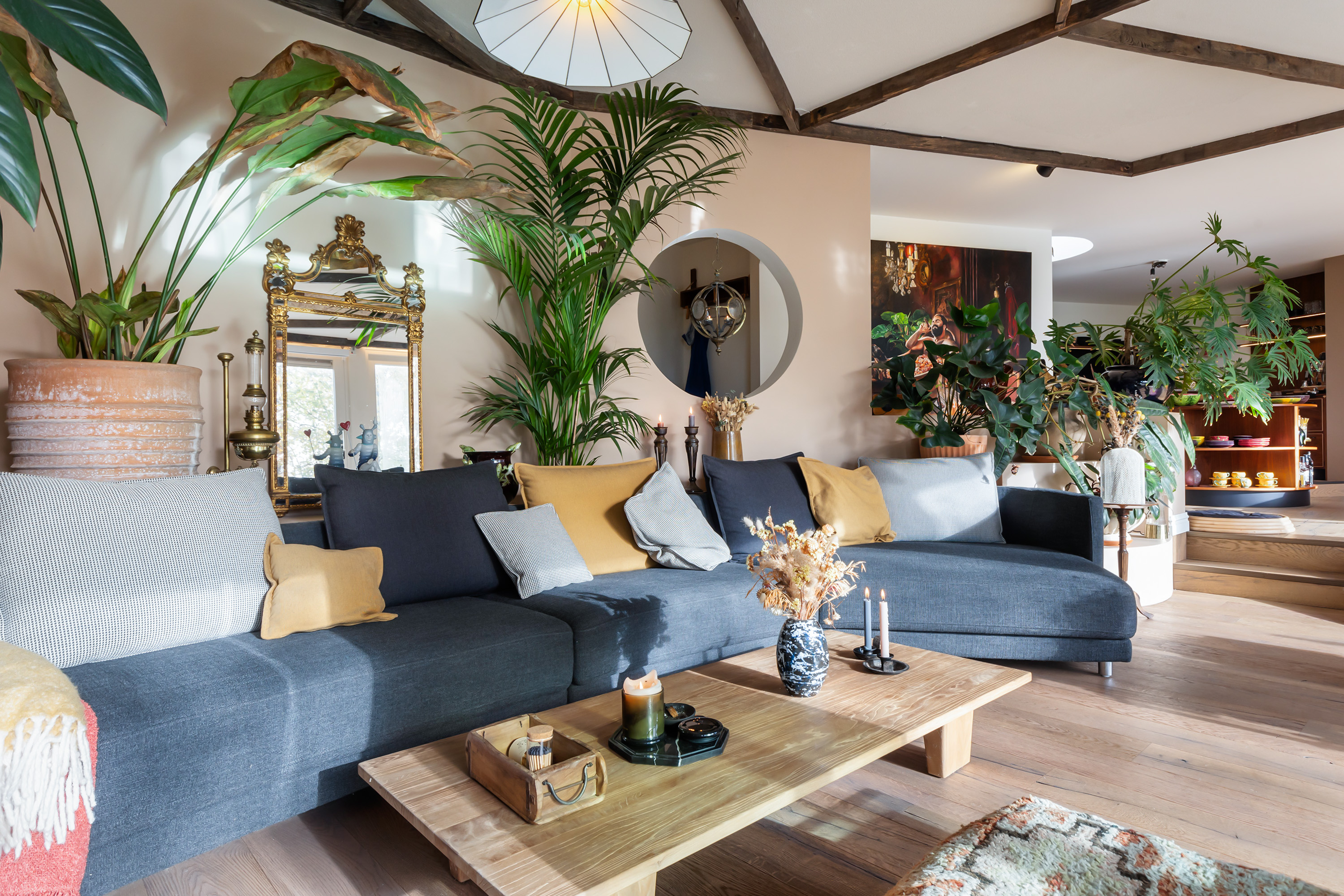 El espacio comercial adyacente ofrece aún más posibilidades para atelier, showroom o alojamiento para invitados, con vigas de madera negra y amplios ventanales que exhiben su artesanía y presencia. En el exterior, el jardín se funde con la naturaleza agrícola e incluye un pabellón, una terraza flotante y una plataforma privada, generando un refugio de intimidad. Árboles maduros y un diseño paisajístico pensado completan la sensación de serenidad.