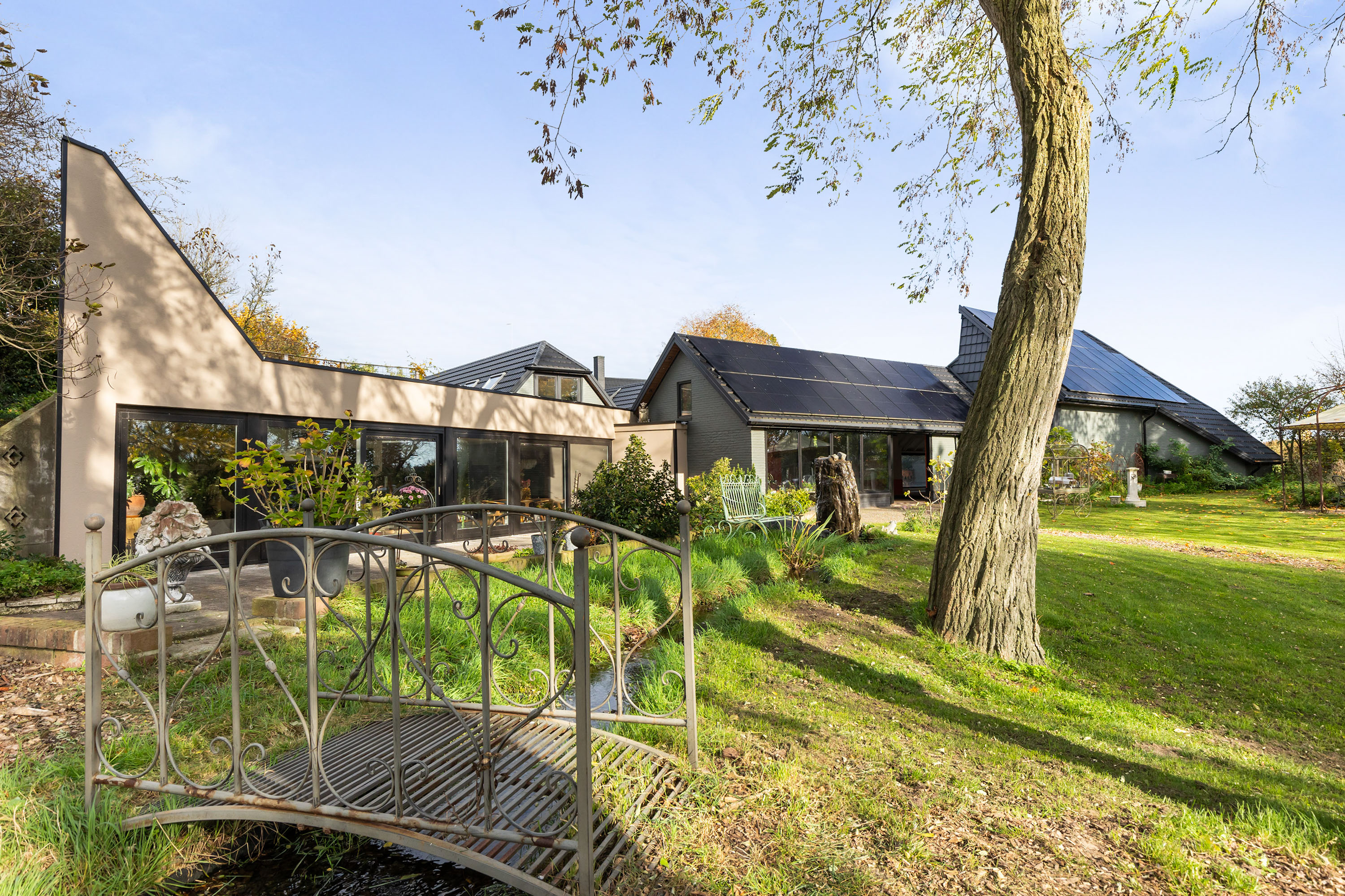 Casa de campo con bungalow contemporáneo en Epse: un encuentro extraordinario entre historia, modernidad y visión sostenible. Esta propiedad abarca aproximadamente 330 m² de espacio habitable elegantemente diseñado, complementados por un edificio comercial de 445 m², situado entre campos abiertos cerca de Deventer y con gran visibilidad desde la A1. La residencia principal y una vivienda secundaria independiente ofrecen tres dormitorios y tres baños distribuidos en 314 m², donde el detalle auténtico se equilibra con el lujo contemporáneo en los interiores.