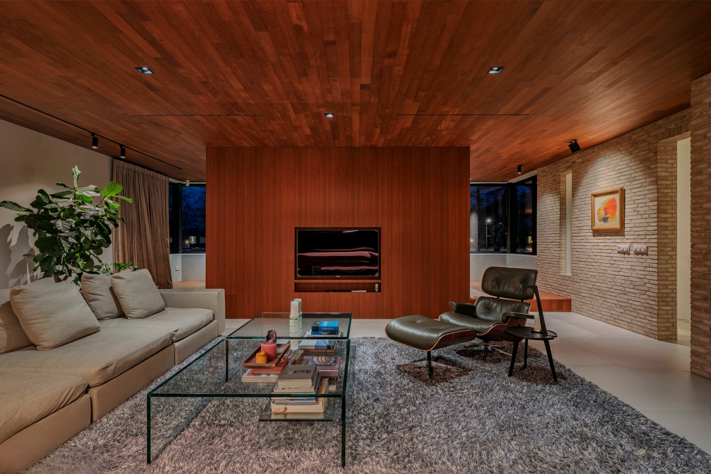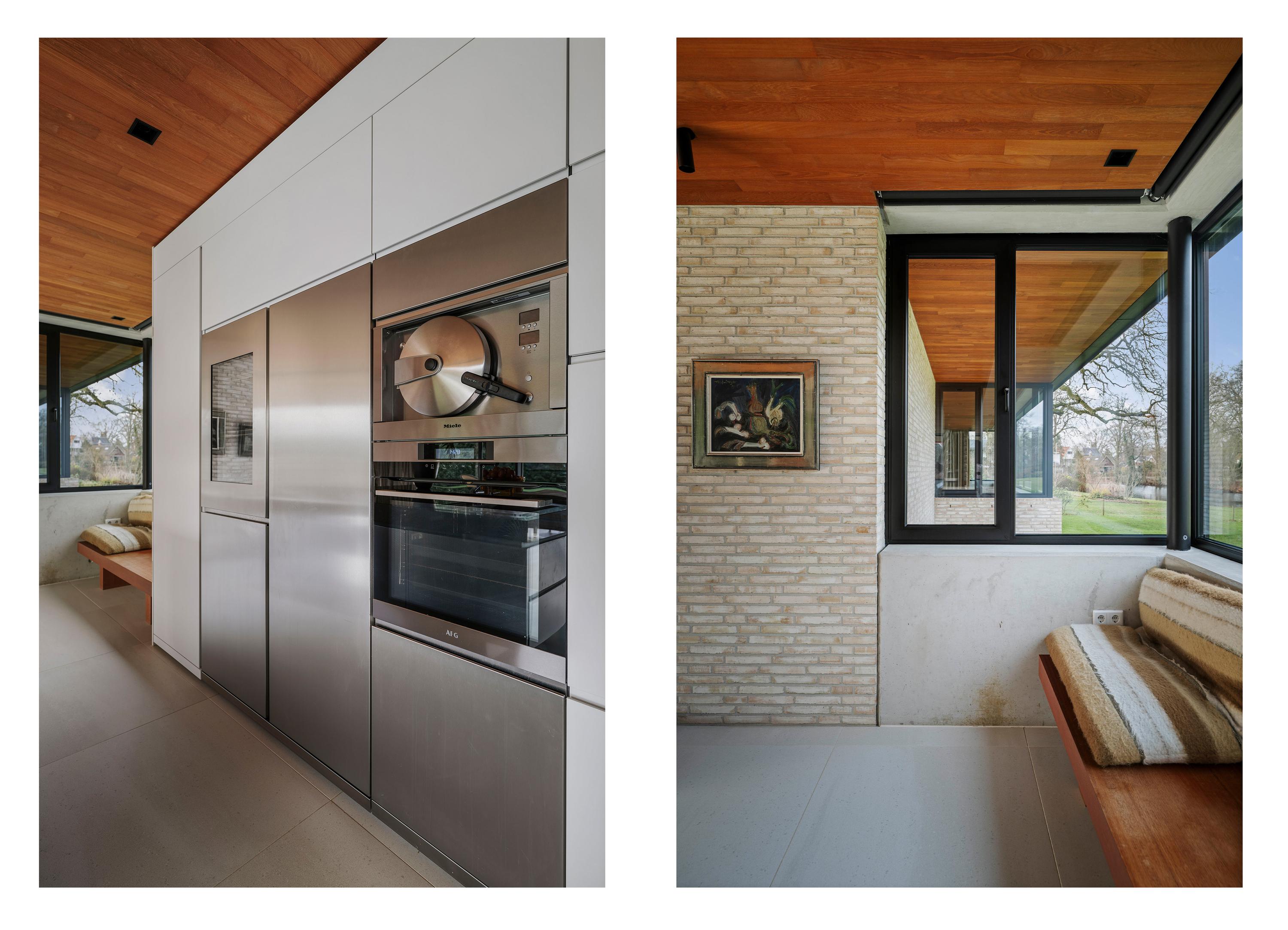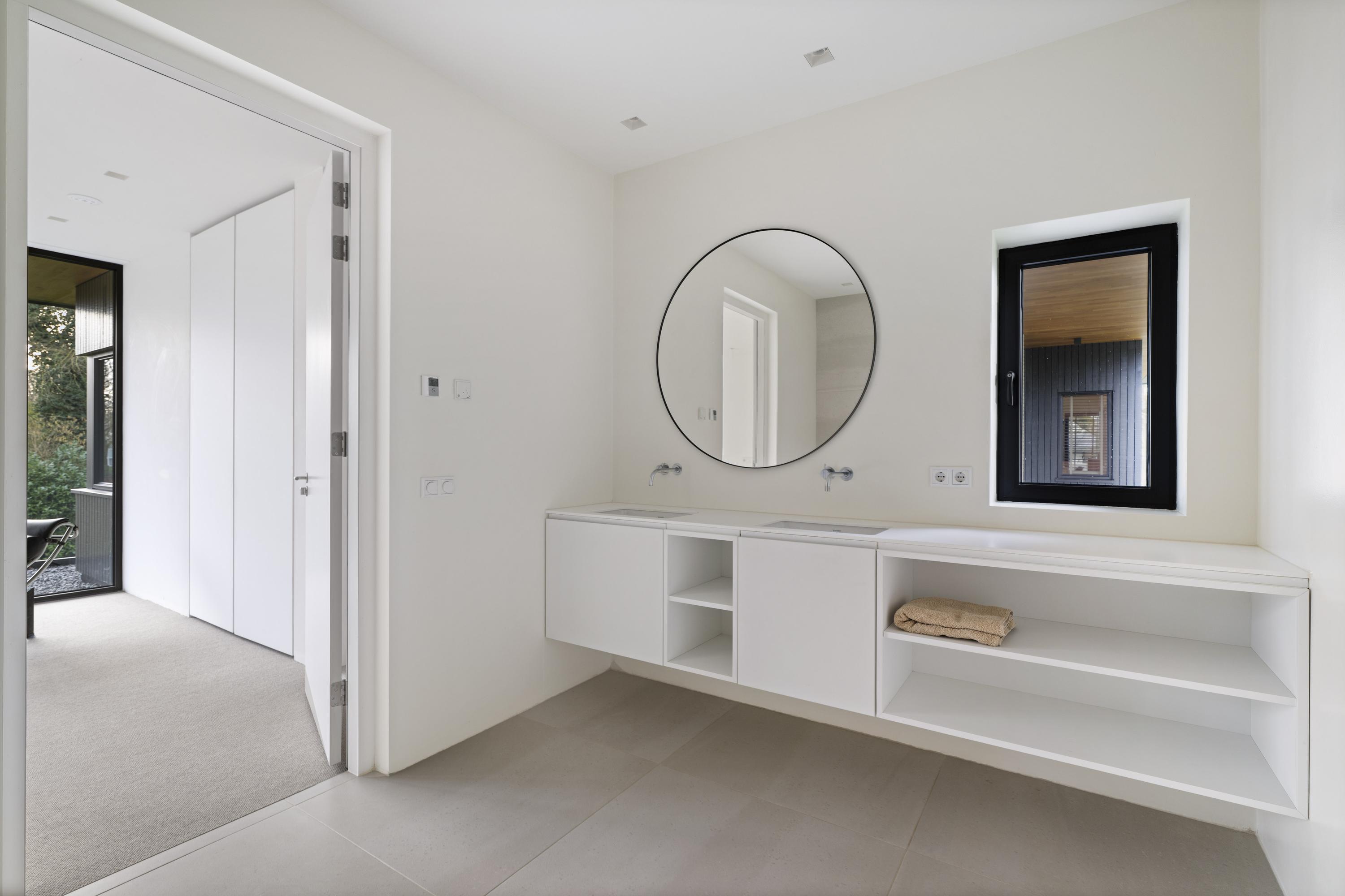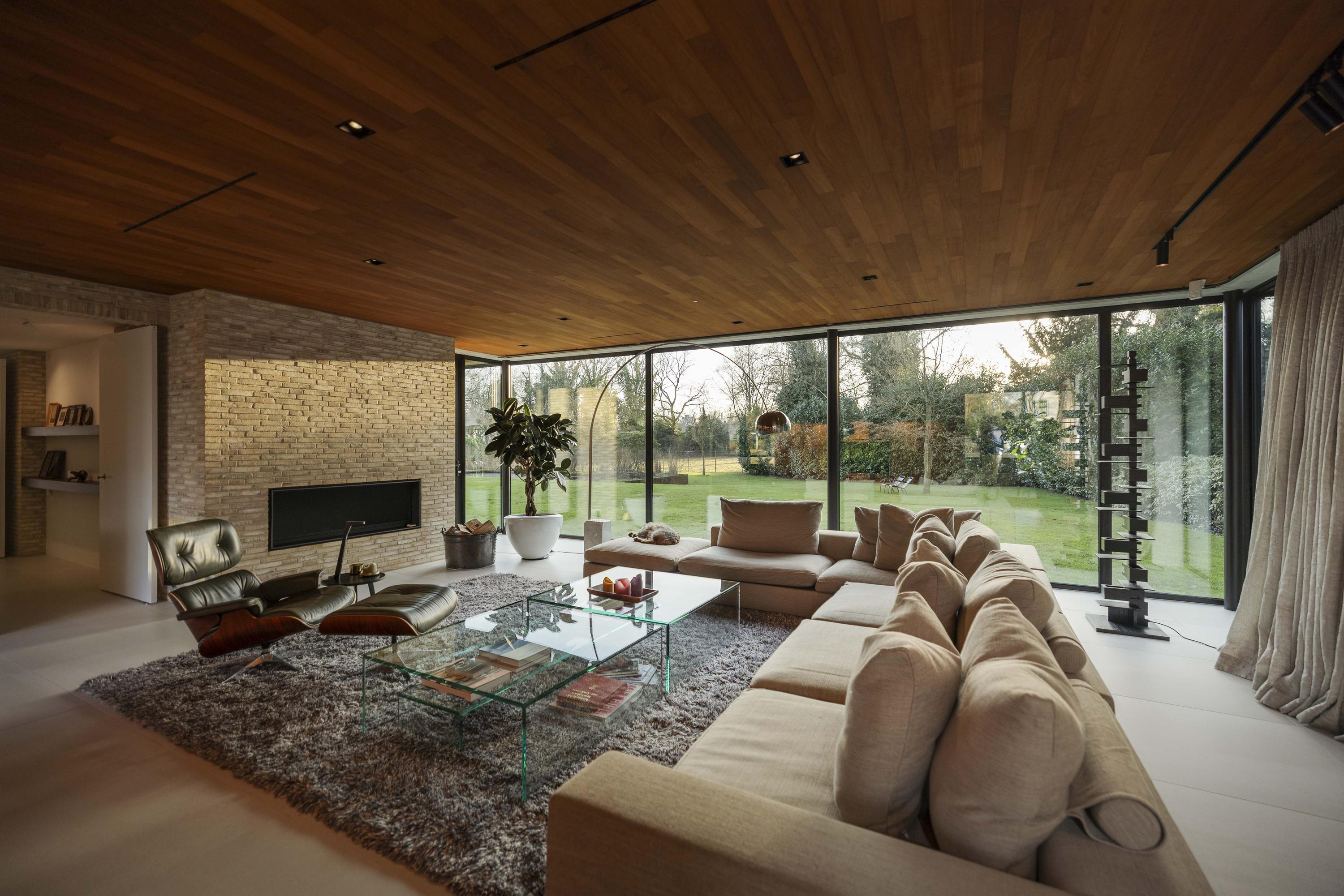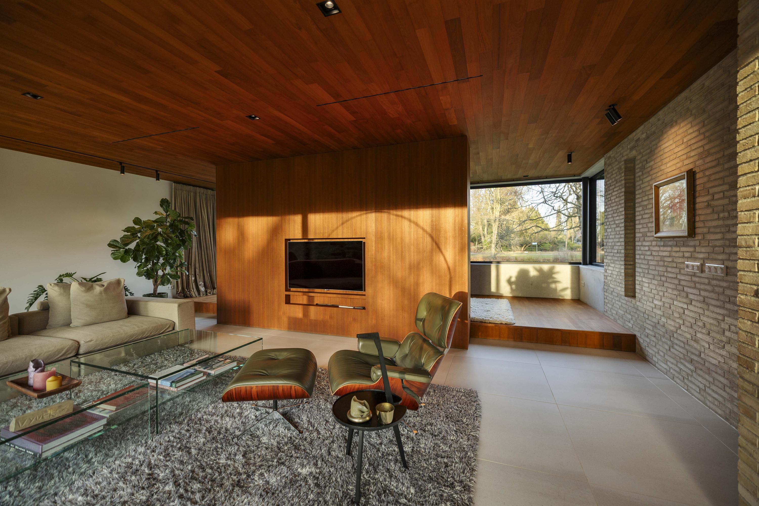 Villa en venta en Lochem Berkeloord, situada en una parcela ajardinada de 6.635 m², que ofrece un equilibrio poco frecuente entre diseño contemporáneo y la serenidad de un parque. Construida en 2019 según la visión del arquitecto Bart Vos, esta residencia familiar combina transparencia y seguridad, con vistas a los estanques de Berkeloord en la parte delantera y al parque de ciervos de Lochem en la trasera. Con una superficie de 500 m² distribuidos en tres plantas, la vivienda se articula en torno a una cocina luminosa de 88 m², conectada de forma fluida con una terraza cubierta equipada con chimenea exterior Metalfire. Suelos de Mosa en tono travertino y techos de teca aceitada aportan una calidez sutil y tangible, mientras los ventanales de suelo a techo mantienen un diálogo permanente con los jardines y la luz natural.