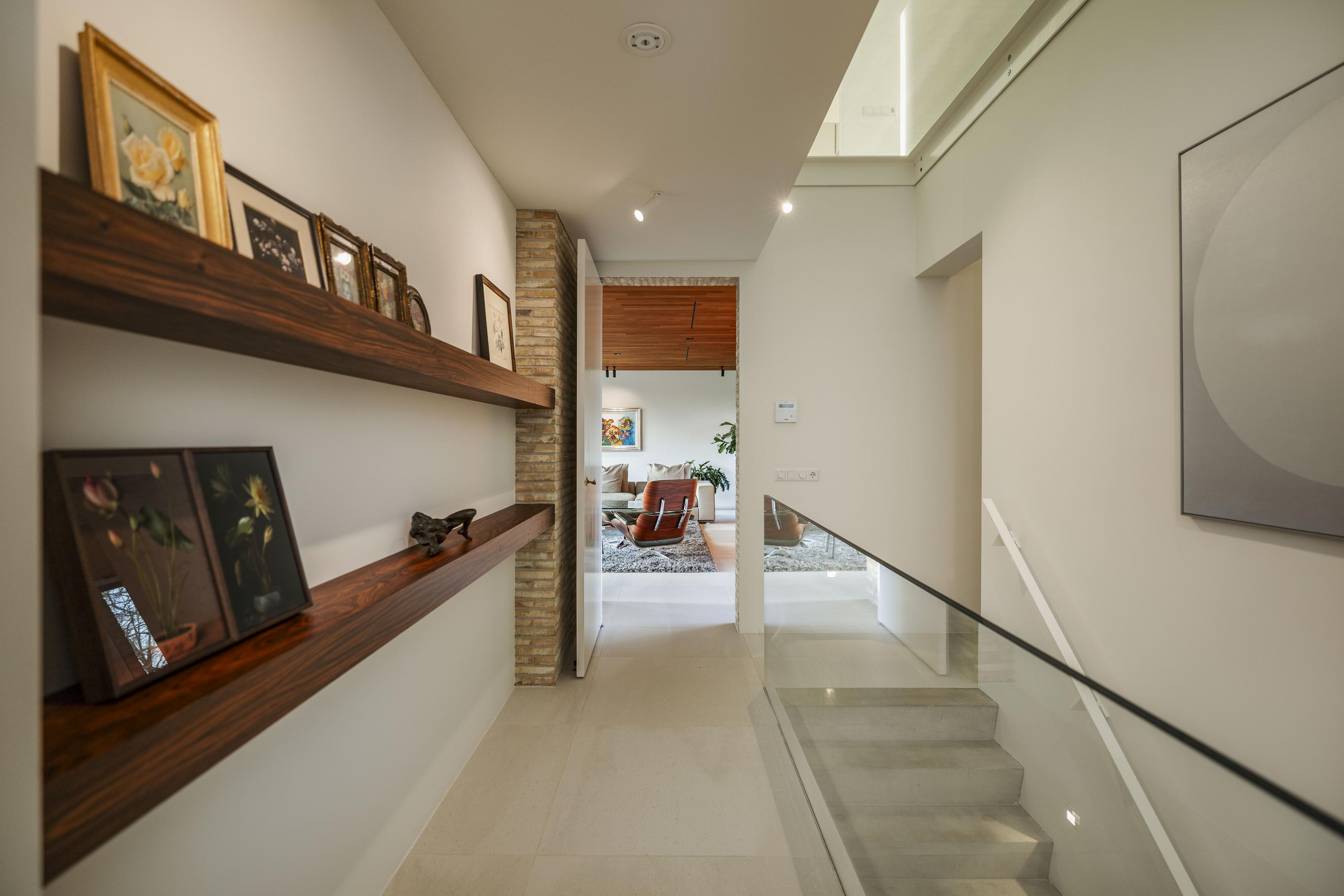 El salón principal, de 74 m², dispone de dos áreas de estar definidas, mobiliario a medida y vistas panorámicas. En la planta superior, cuatro dormitorios amplios y dos baños se complementan con una suite principal que incluye ventanas a dos orientaciones y un baño de gran elegancia. El sótano amplía la zona habitable e incorpora estudio o gimnasio, dormitorio de invitados con baño en suite y robustos acabados en hormigón con luz natural. El confort se garantiza en toda la vivienda gracias a la calefacción por suelo radiante, una bomba de calor geotérmica y 30 paneles solares, alcanzando la clase energética A++.