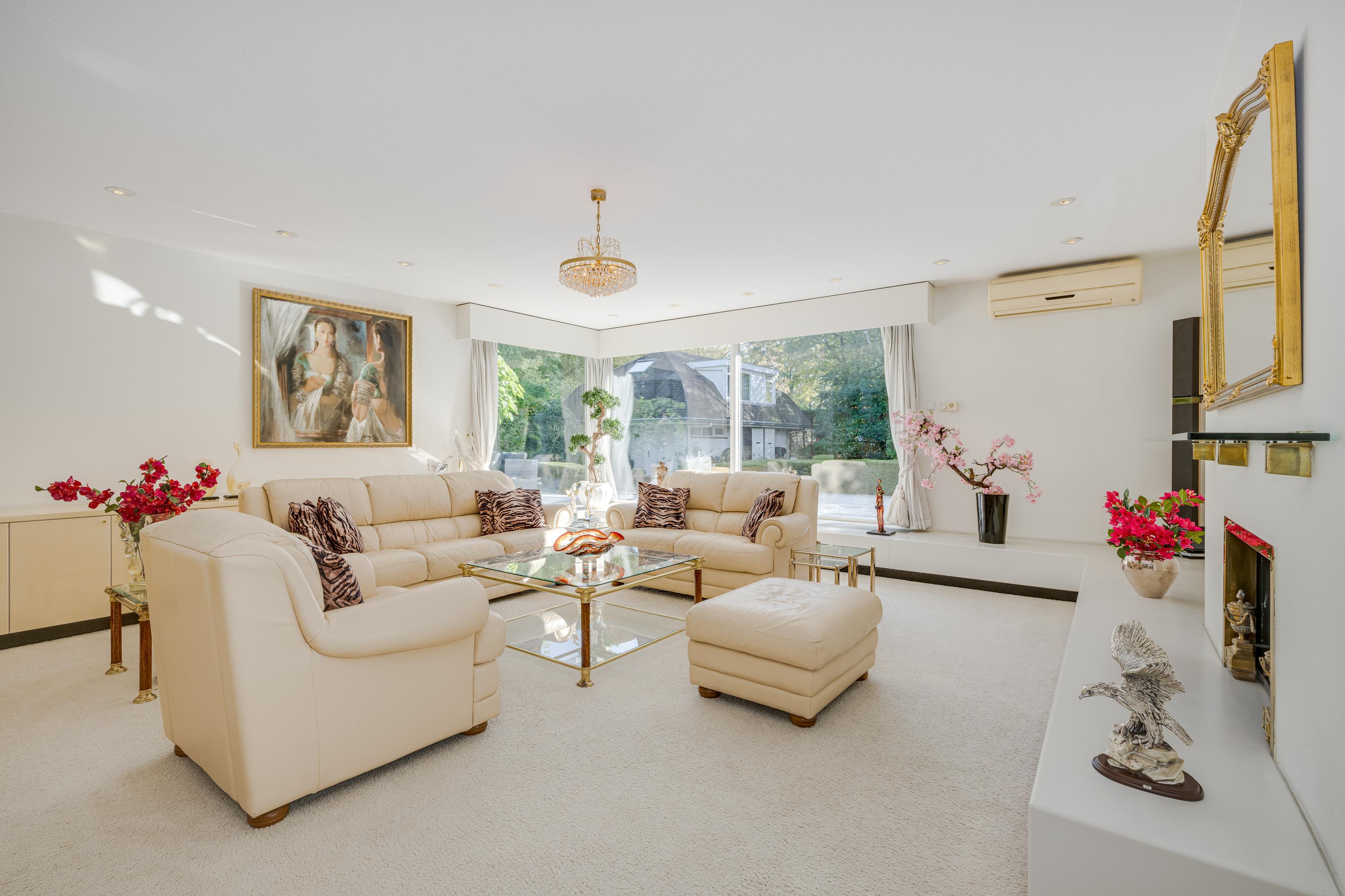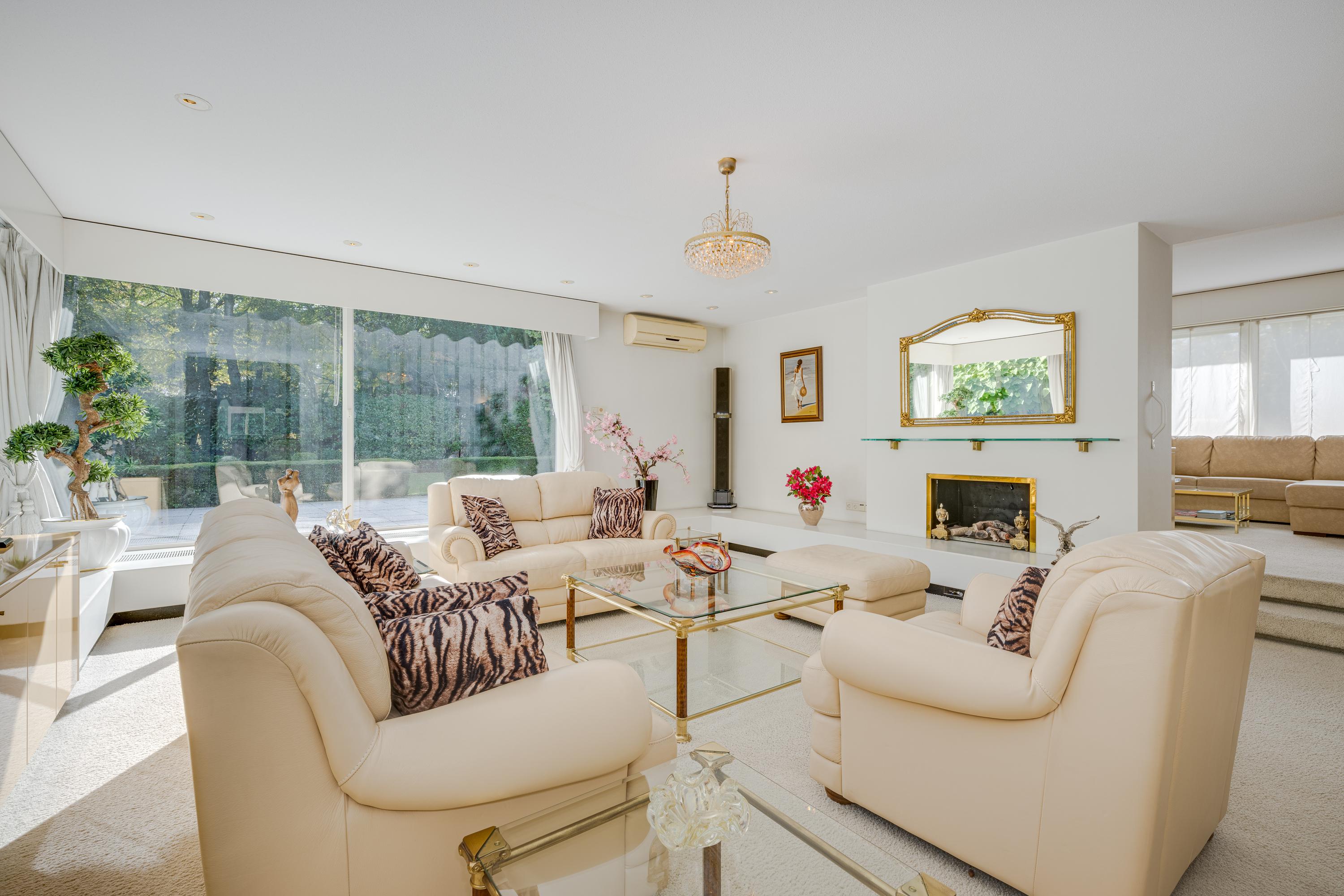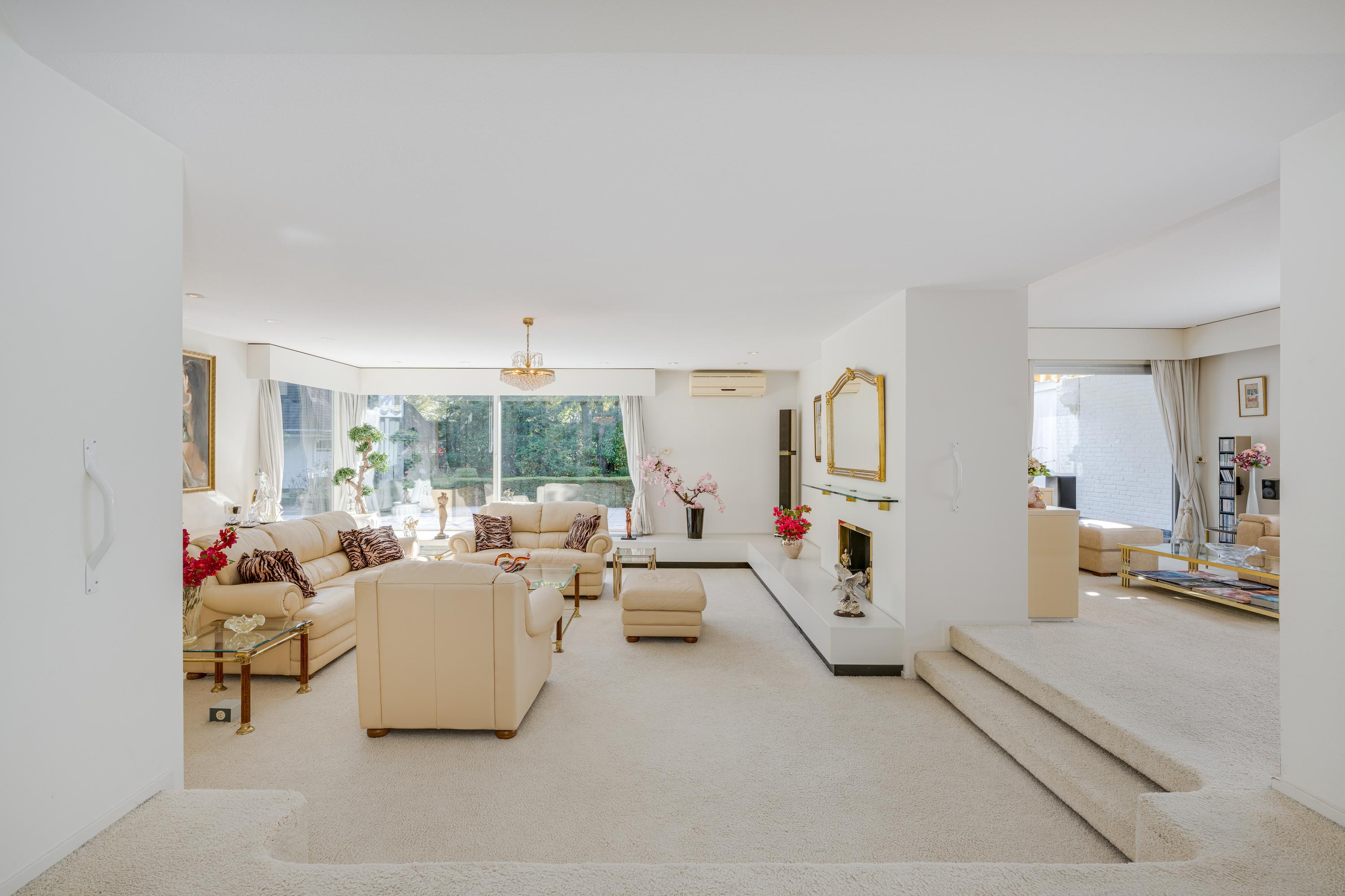 La residencia principal ofrece un amplio vestíbulo de entrada de doble altura y una imponente escalera que distribuye hacia generosos salones, comedores y salas familiares que suman más de 100 m². Los techos altos, grandes ventanales y puertas corredizas conectan cada ambiente a soleadas terrazas que rodean la vivienda, enmarcando vistas serenas de los jardines consolidados. Las comodidades modernas están integradas de forma impecable, como el control climático avanzado, ventilación mecánica, aislamiento de alta gama y sistema de sonido Bang & Olufsen, que enriquecen la calidad de vida diaria.