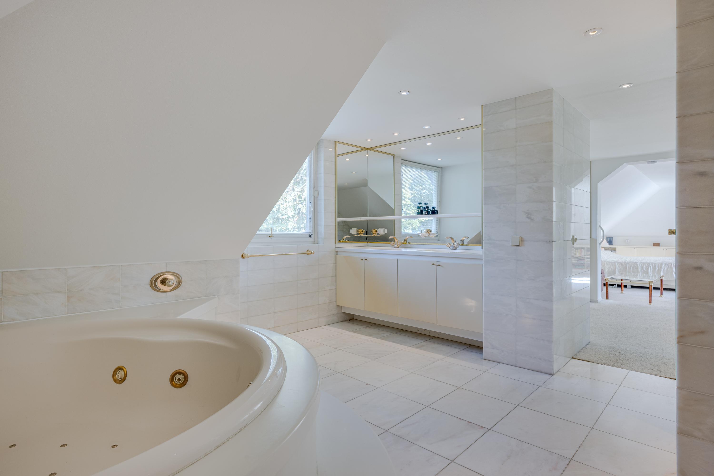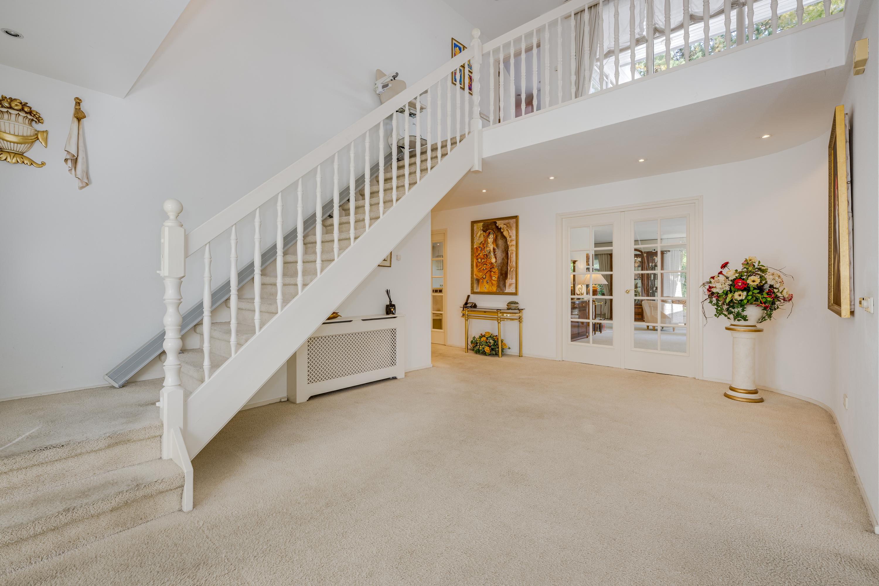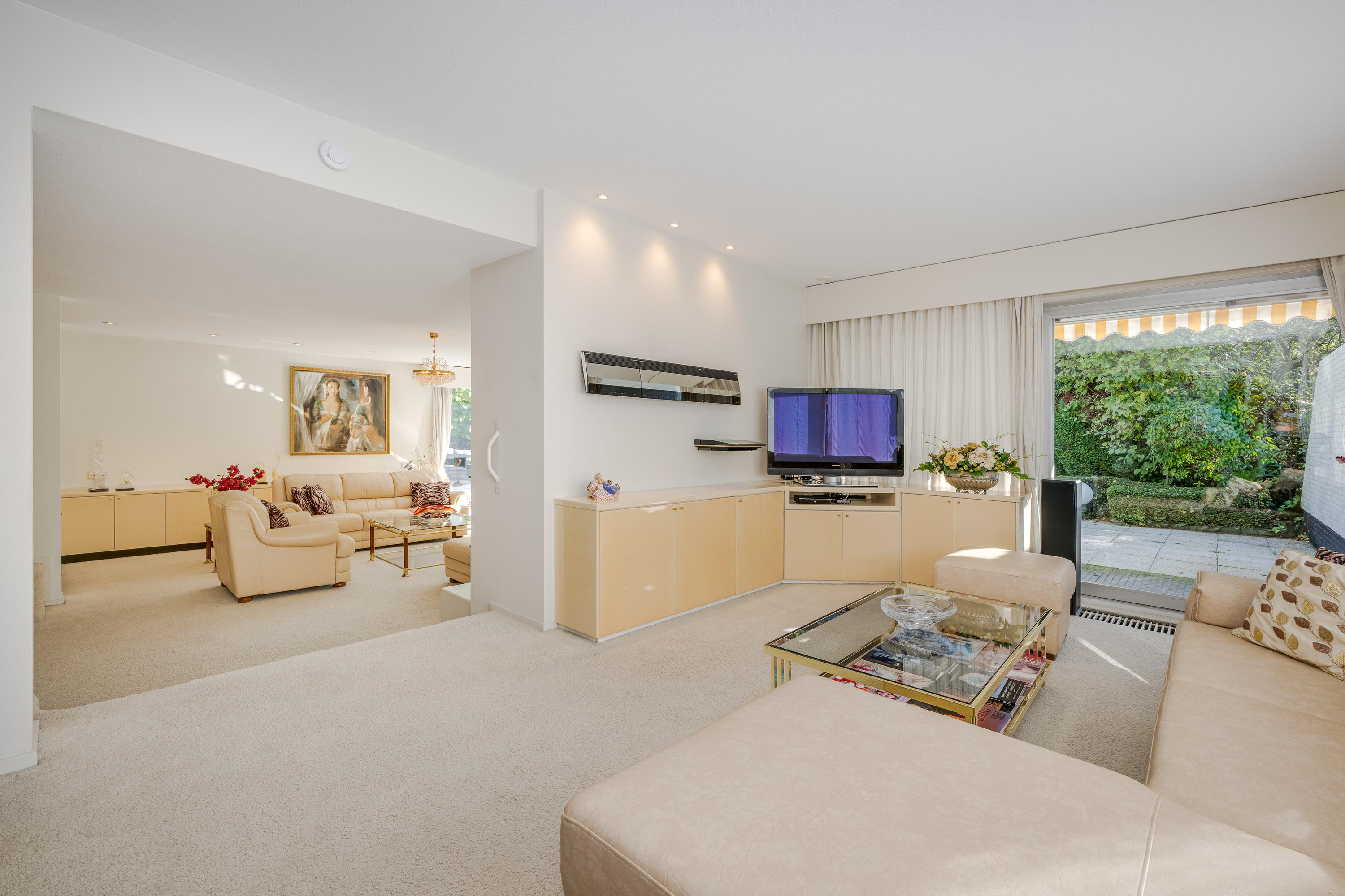 La residencia principal ofrece un amplio vestíbulo de entrada de doble altura y una imponente escalera que distribuye hacia generosos salones, comedores y salas familiares que suman más de 100 m². Los techos altos, grandes ventanales y puertas corredizas conectan cada ambiente a soleadas terrazas que rodean la vivienda, enmarcando vistas serenas de los jardines consolidados. Las comodidades modernas están integradas de forma impecable, como el control climático avanzado, ventilación mecánica, aislamiento de alta gama y sistema de sonido Bang & Olufsen, que enriquecen la calidad de vida diaria.