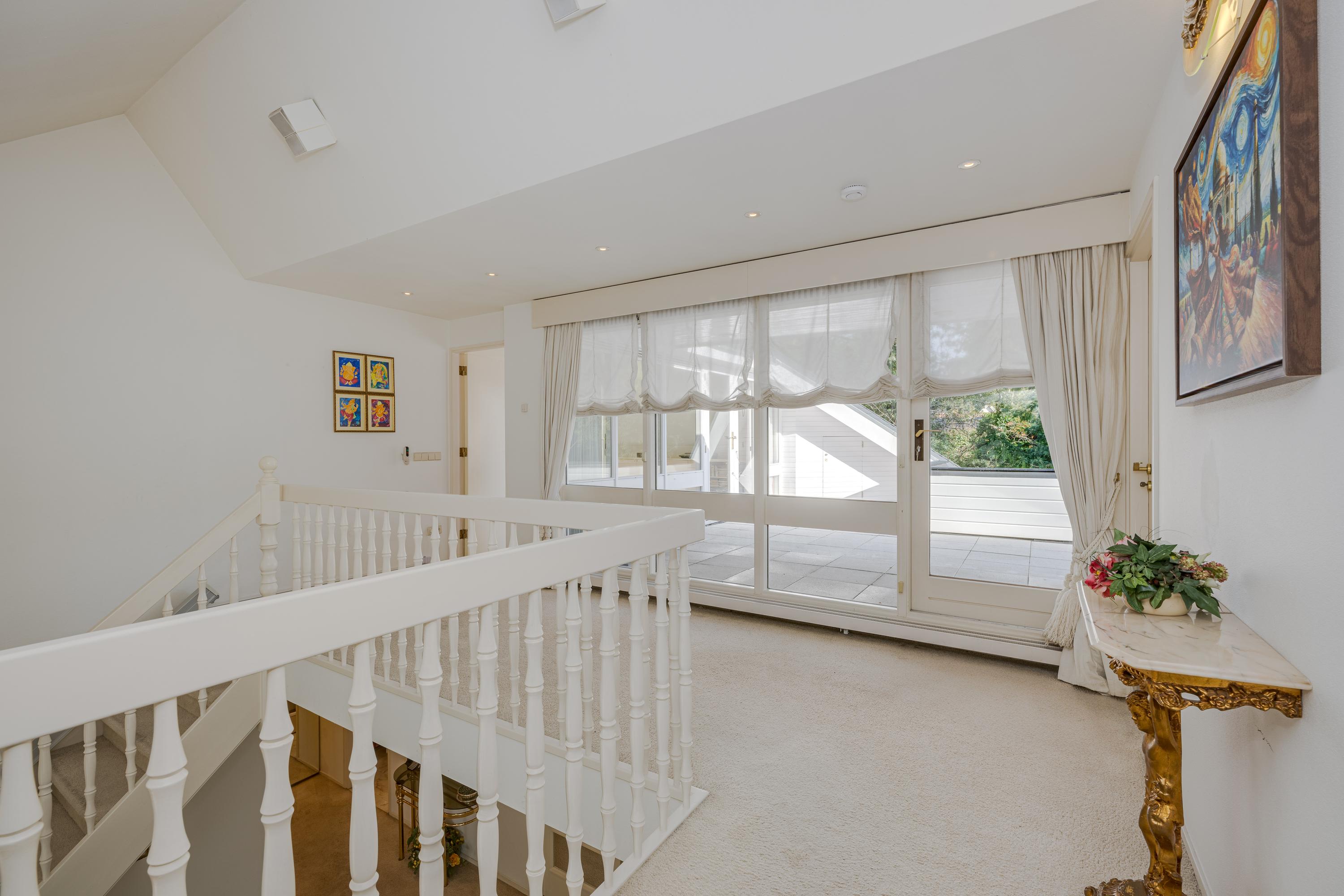 Una edificación independiente con su propia dirección amplía el conjunto. Esta dependencia alberga un completo apartamento para invitados con sala de estar, cocina, dormitorio y baño, además de un gran garaje de uso polivalente. La solidez constructiva es palpable en toda la propiedad, con un tejado renovado y un informe de inspección independiente disponible, mientras los sistemas de seguridad aportan tranquilidad. Villa Oegstgeest, con su elegancia discreta, múltiples dormitorios y baños y jardines consolidados, ofrece una privacidad inusual con excelente acceso a Leiden, La Haya y Ámsterdam, así como a los servicios locales: un refugio para quienes valoran el espacio, la discreción y la serenidad arquitectónica.