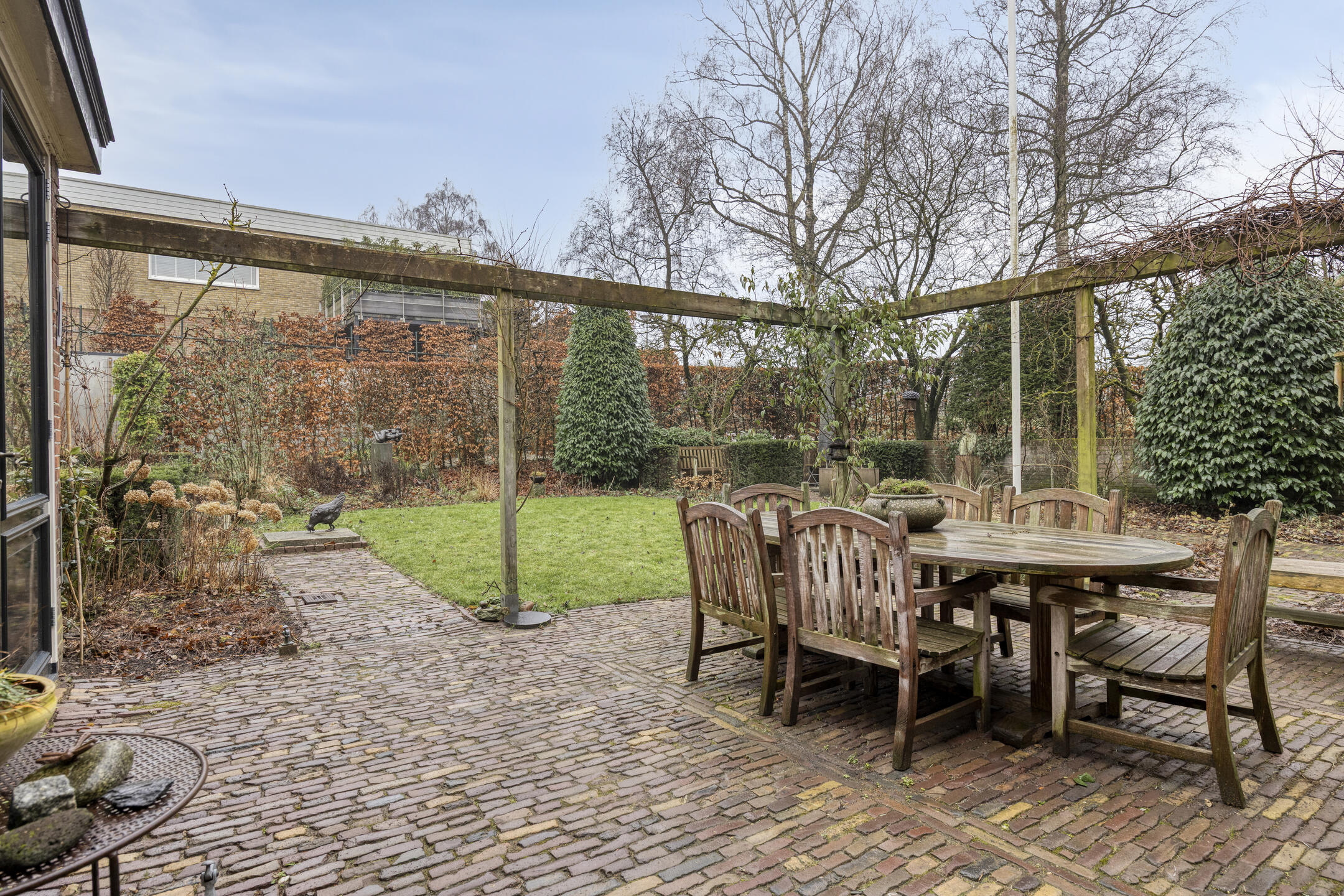 Vivir en Hoge Haerlaan significa disfrutar de tranquilidad y amplitud con todas las comodidades cotidianas a poca distancia. La planta baja le da la bienvenida con una entrada cubierta y un amplio vestíbulo, que conduce a una oficina en casa enmarcada por un elegante ventanal. Los amplios ventanales y el invernadero del salón permiten la entrada de luz natural y se abren al tranquilo jardín orientado al sureste, enriquecido con varias terrazas y zonas ajardinadas en distintos niveles. La cocina, equipada con chimenea y electrodomésticos de alta gama, conecta con una terraza cubierta. Los espacios prácticos incluyen un sótano de altura para despensa, lavadero y un amplio garaje.