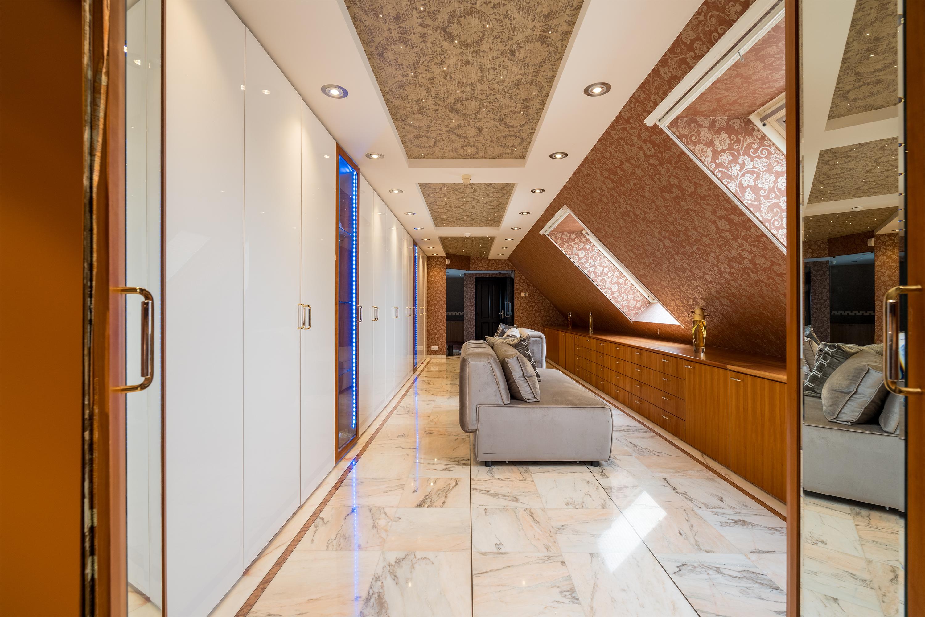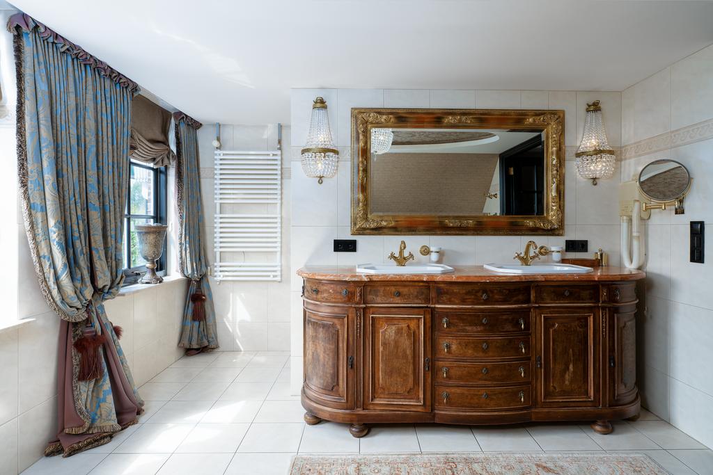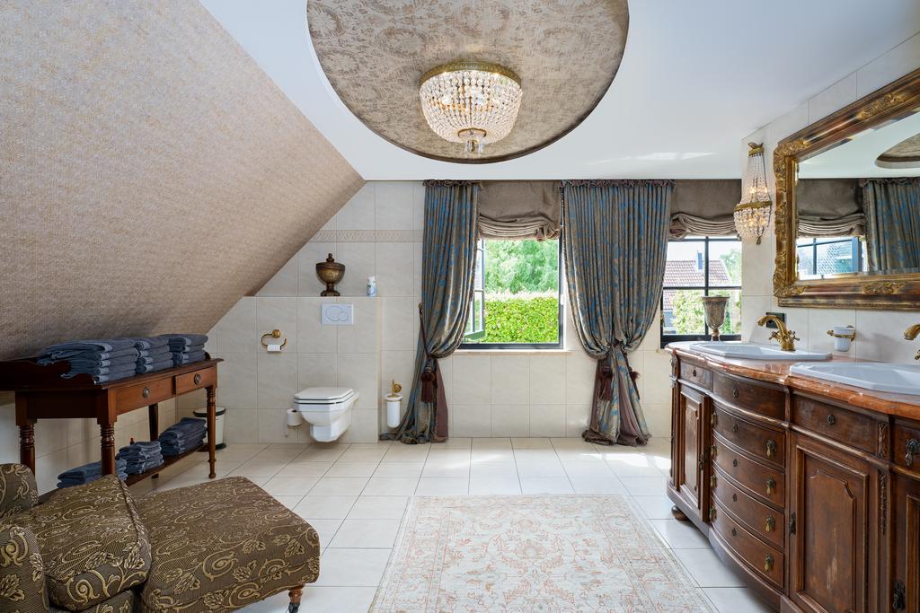 En la planta superior, los cuatro dormitorios cuentan cada uno con baño en suite; la suite principal se distingue por una bañera circular exenta, tocador doble antiguo y un vestidor de 50 m². Todos los dormitorios tienen aire acondicionado y la vivienda dispone de calefacción por suelo radiante. El anexo, ideal para invitados o trabajo, ofrece acceso independiente, espacio de oficina, salas de exposición y una veranda privada.