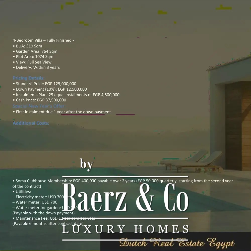 La propiedad de lujo de Somabay está concebida para quienes buscan elegancia, confort y una conexión fluida con la costa. Esta exclusiva residencia frente al mar es una invitación a experimentar el estilo de vida costero en uno de los destinos más cautivadores de Egipto.