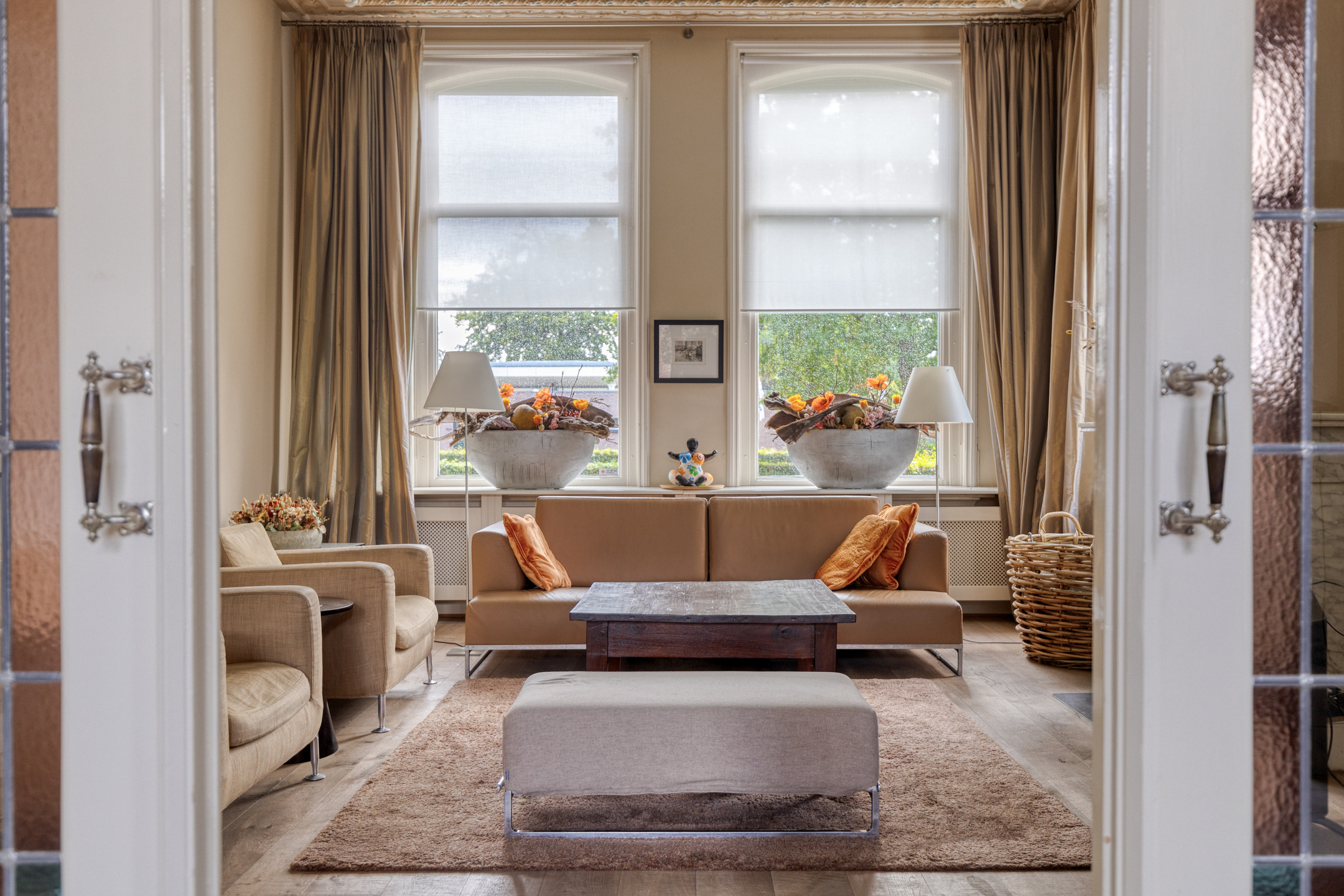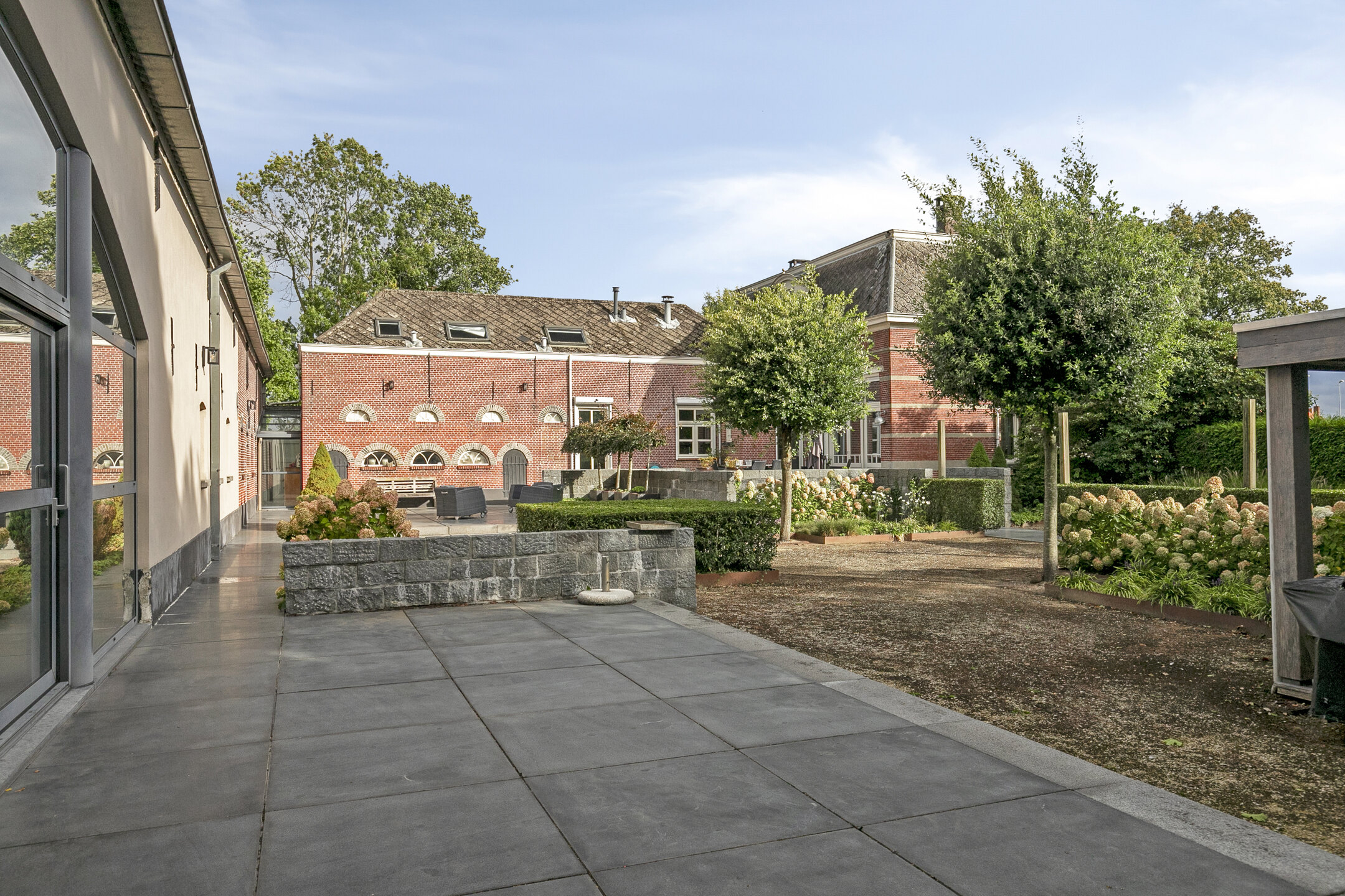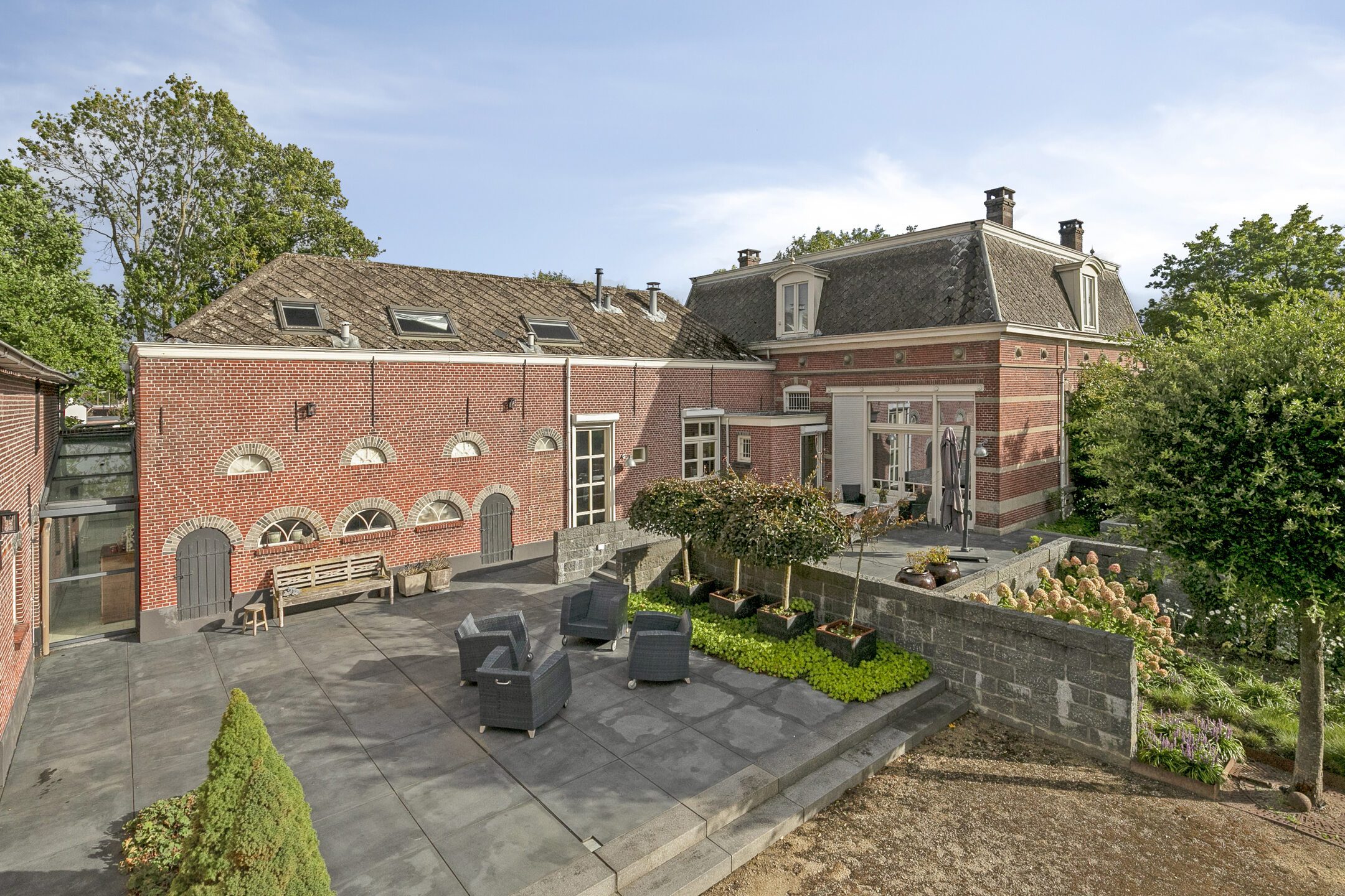 Los terrenos conforman una finca privada con patios adoquinados, céspedes estructurados, terrazas y un paisajismo cuidadosamente diseñado que aseguran variedad y privacidad. Un garaje doble, garajes individuales adicionales y acceso seguro completan la propiedad. Esta casa de campo en Wouw es apta para múltiples usos y su estatus monumental le confiere privilegios de índole cultural y fiscal.