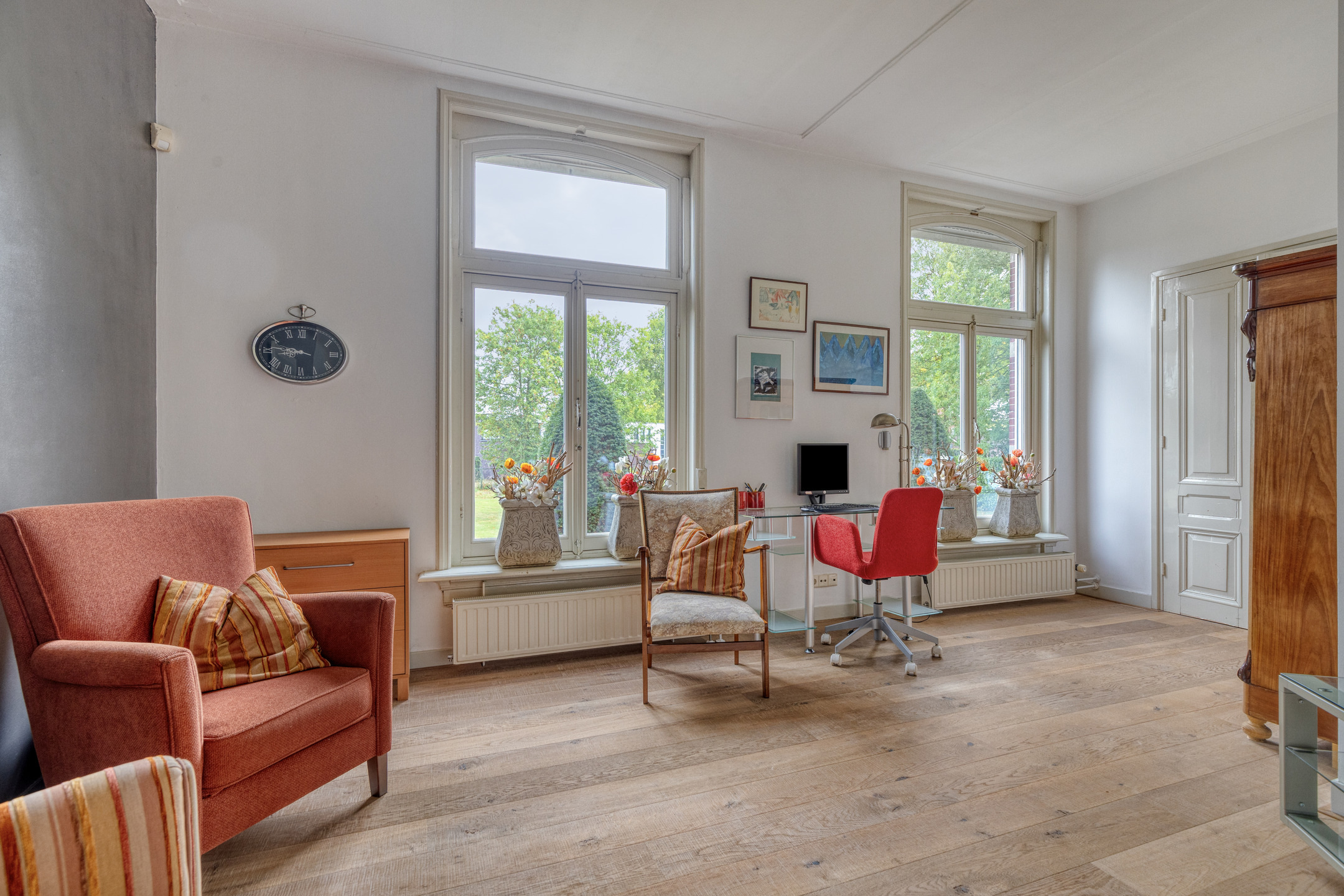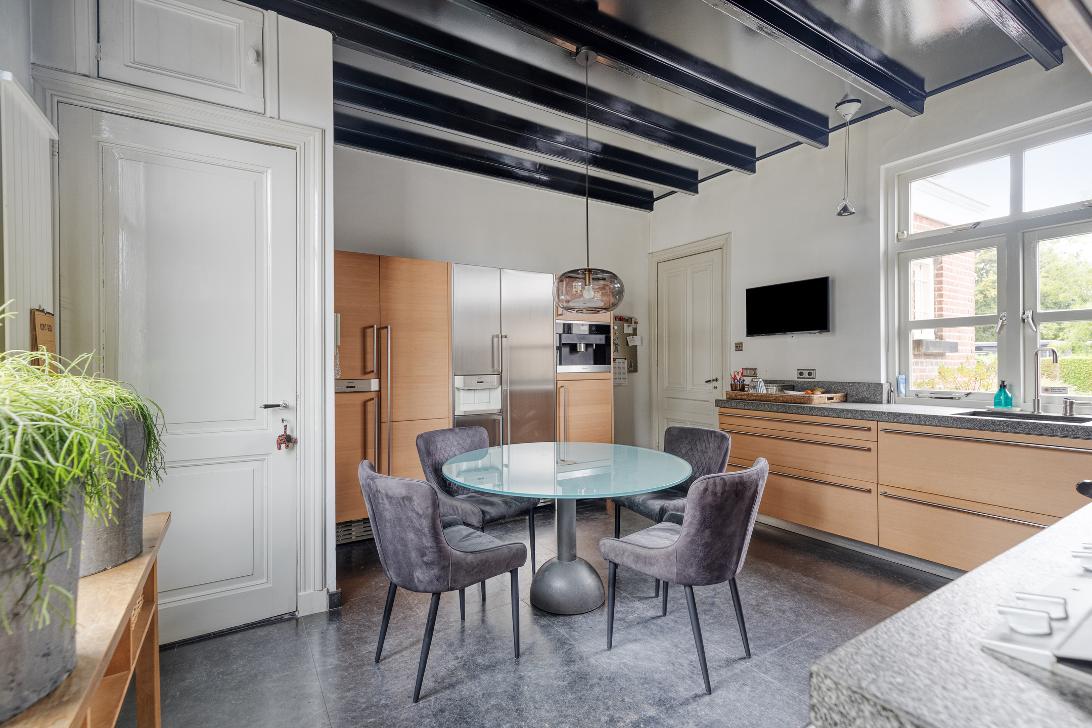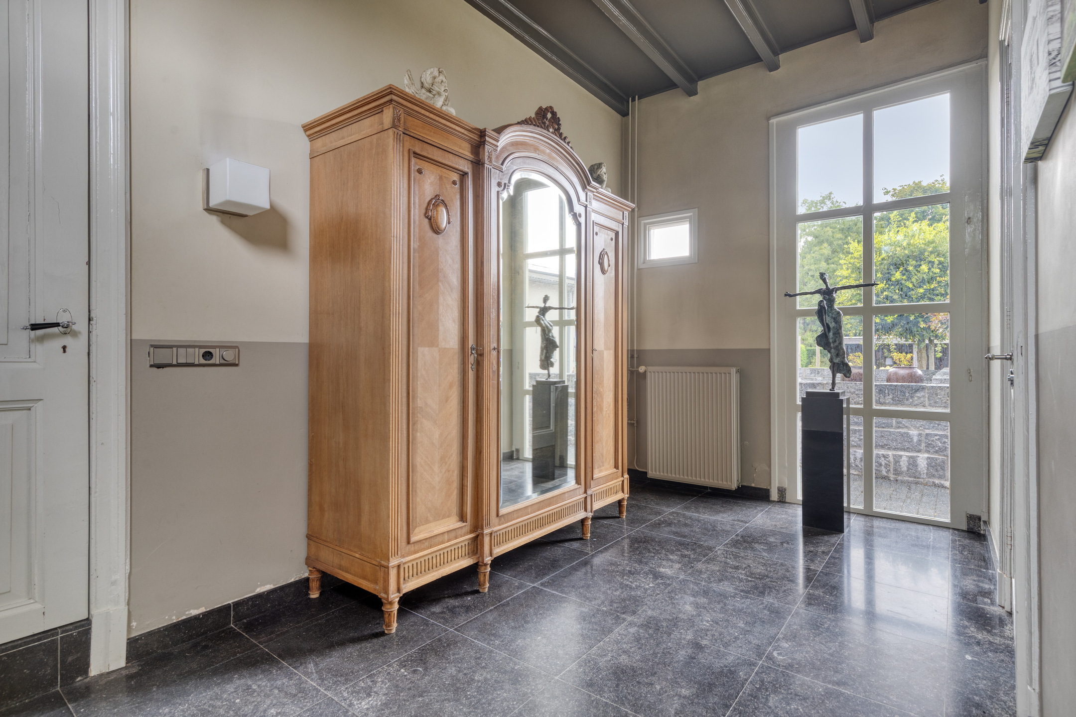 Los terrenos conforman una finca privada con patios adoquinados, céspedes estructurados, terrazas y un paisajismo cuidadosamente diseñado que aseguran variedad y privacidad. Un garaje doble, garajes individuales adicionales y acceso seguro completan la propiedad. Esta casa de campo en Wouw es apta para múltiples usos y su estatus monumental le confiere privilegios de índole cultural y fiscal.