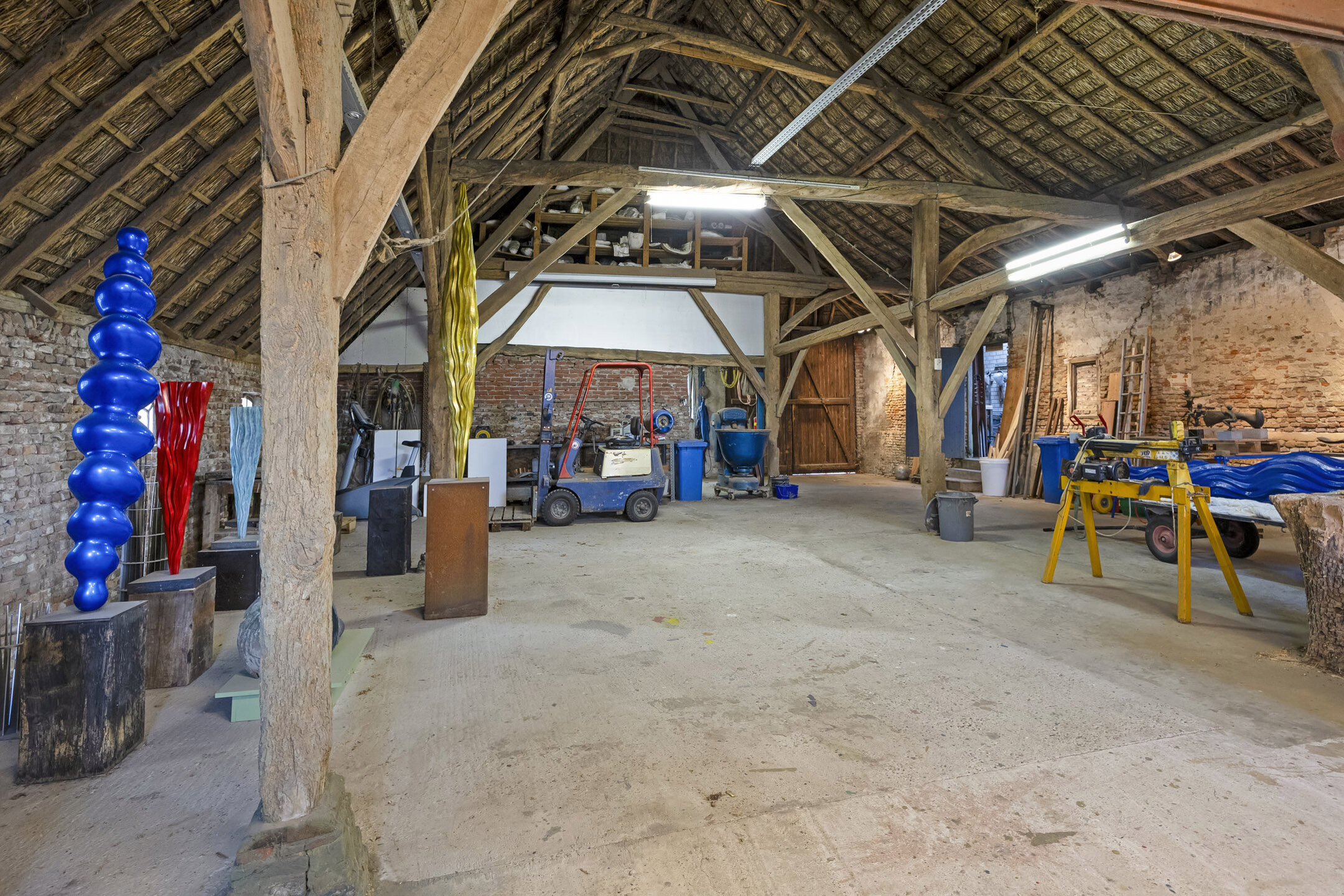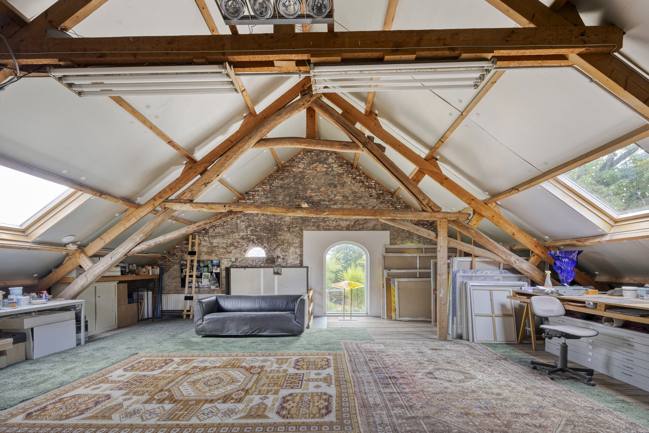 La vivienda principal transmite una sensación de apertura meditada. Las estancias, generosamente dimensionadas e incluyendo tres dormitorios, combinan suelos de roble en espiga, acabados sólidos en madera y vigas vistas, aportando autenticidad a la vida cotidiana. El estudio interior, con 87 m², se adapta a distintos usos, ya sea como taller, estancia adicional o área de trabajo en casa. Existe un claro potencial para crear más dormitorios o viviendas dobles, gracias a sus espacios multifuncionales y el acceso directo a los jardines diseñados.