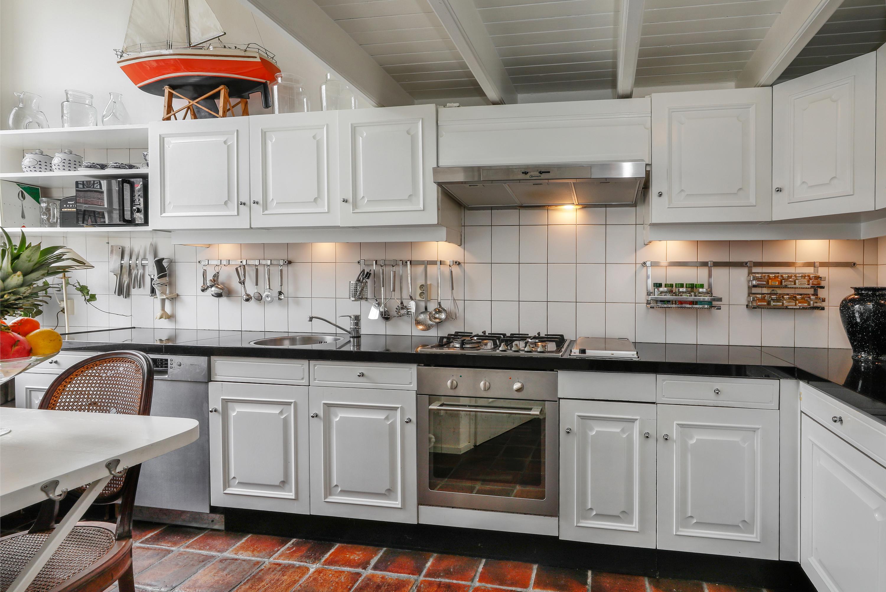 Entree via de karakteristieke voordeur met bovenlicht. Vanuit de hal bereik je de keuken aan de voorzijde met een hoog raam en uitzicht over de haven. Achterin bevindt zich de eetkamer: een sfeervolle plek voor lange diners en gezellige avonden. Achter de eetkamer ligt een ruime berging.