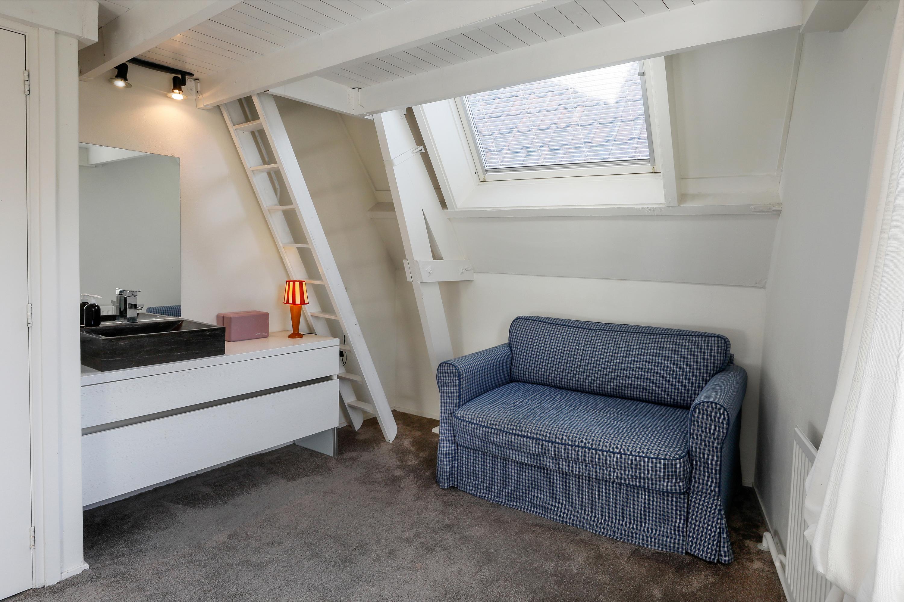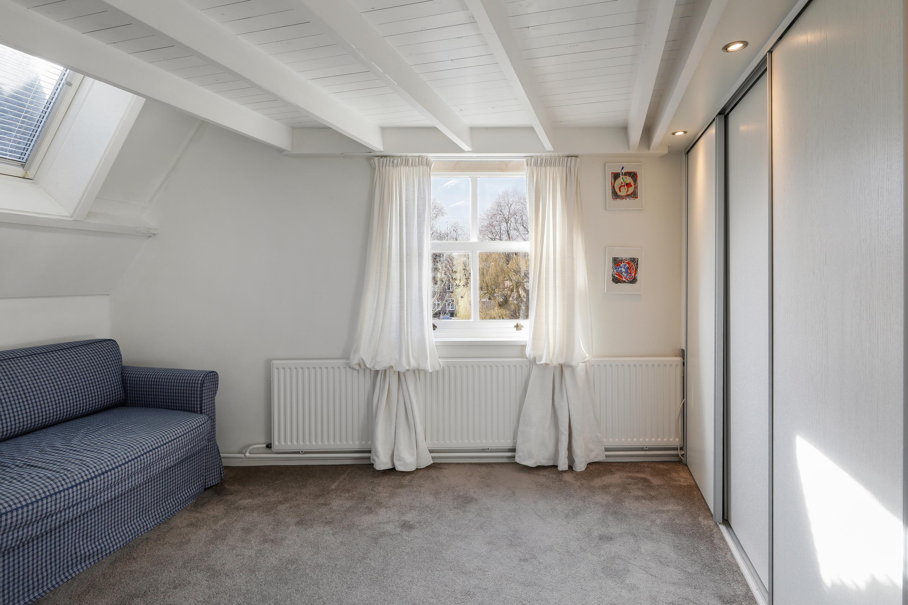 Hier bevinden zich twee slaapkamers. De hoofdslaapkamer ligt aan de voorzijde onder de kap en heeft een charmante sfeer dankzij de hoge dakconstructie en dakkapel. De tweede slaapkamer is eveneens ruim en multifunctioneel.