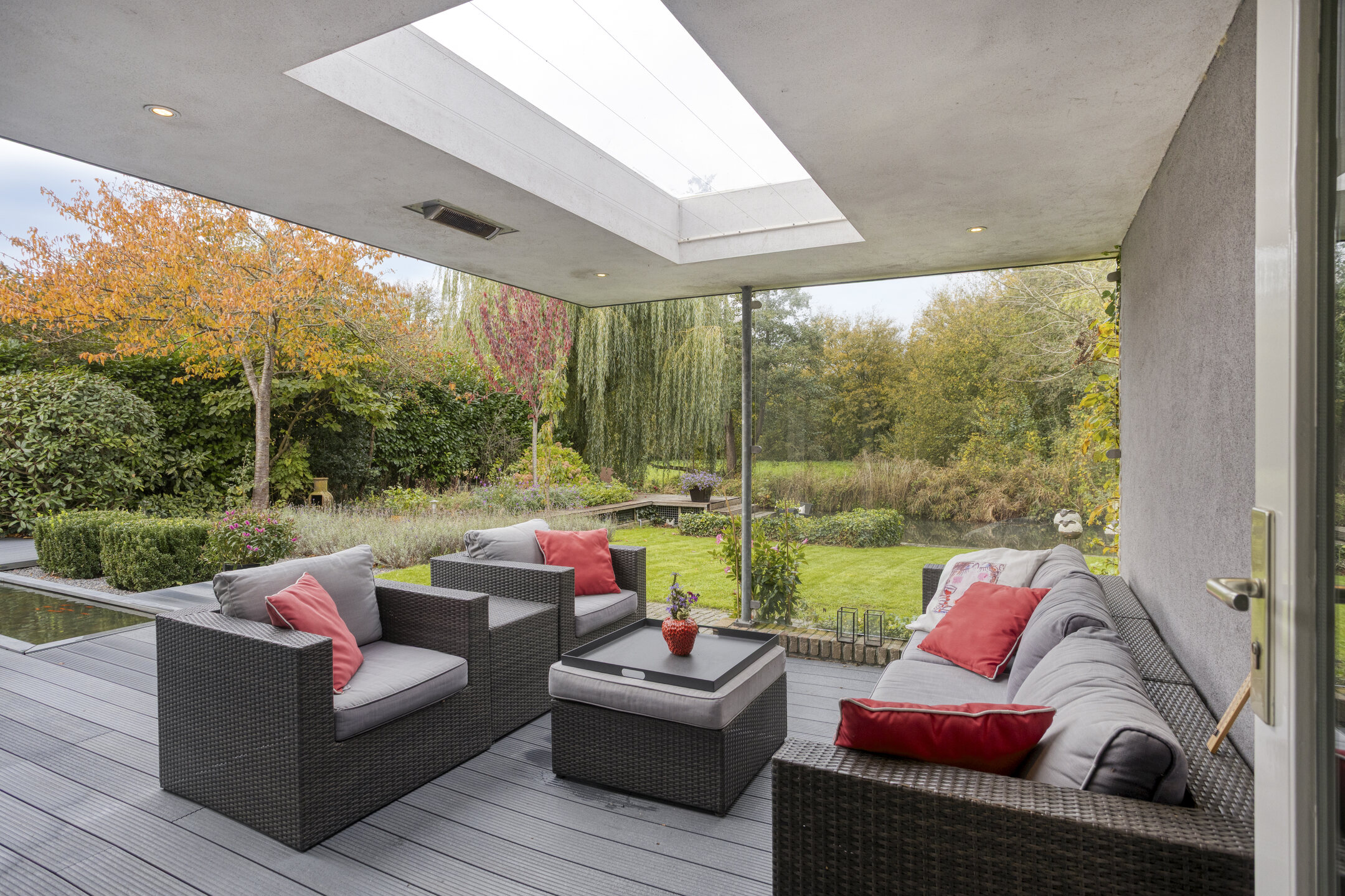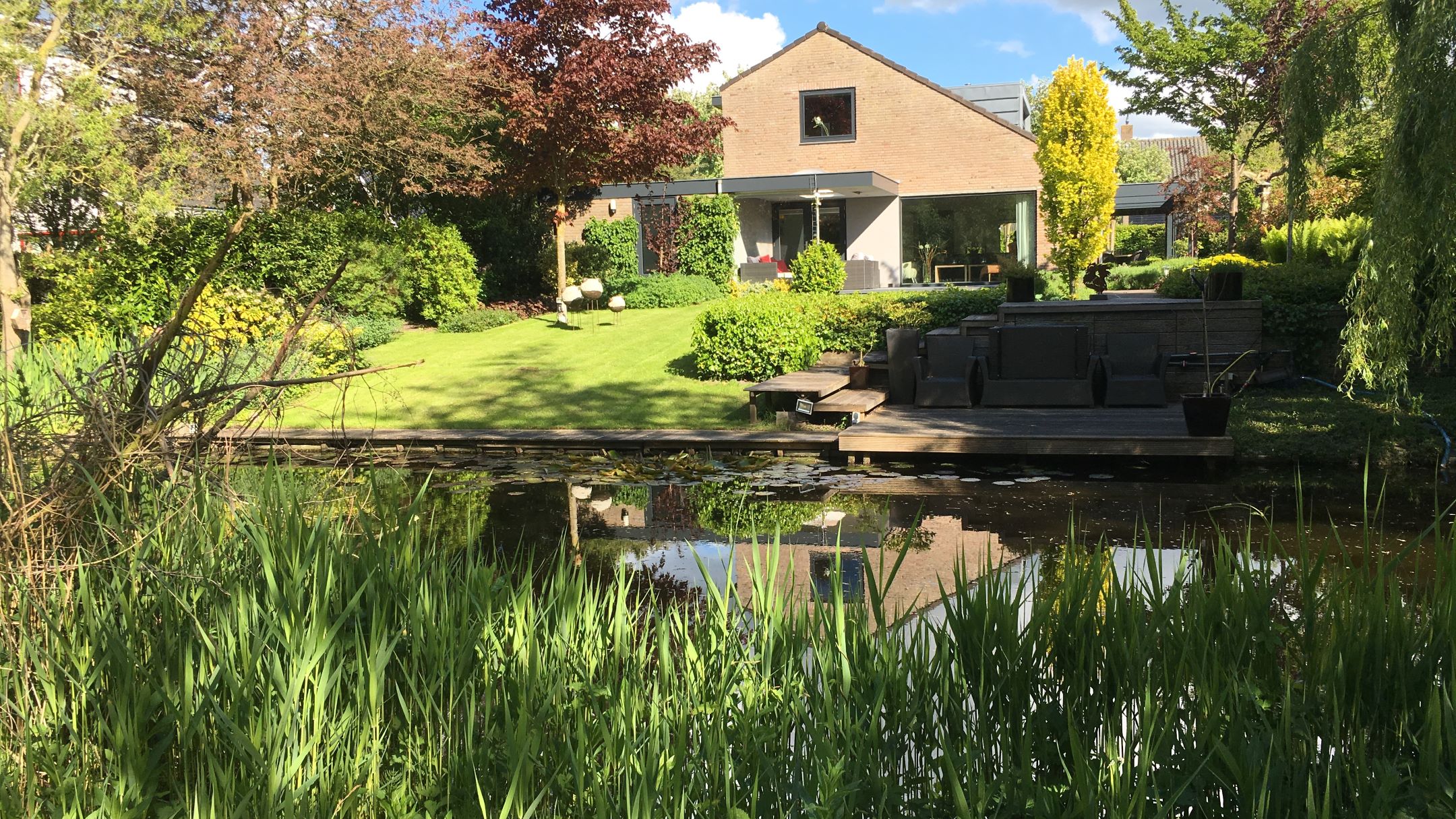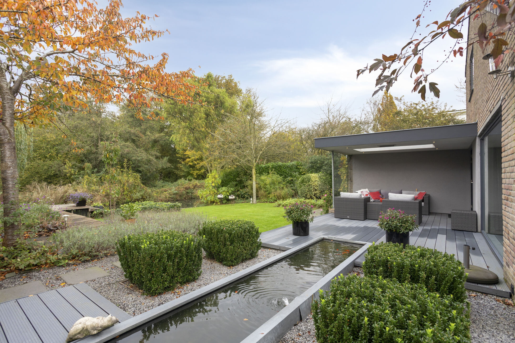 De tuin is een waar kunstwerk, ontworpen door een tuinarchitect en perfect onderhouden. Aan de Zuidzijde bevindt zich een heerlijke serre die helemaal open kan. Hier kunt u het hele jaar heerlijk vertoeven! Daarbij beschikt de serre over een elektrisch zonnescherm. Verderop in de tuin vind u een spiegelvijver met doorloop naar de sfeervolle veranda met overkapping en led-buitenverlichting. Nog een stukje verder komt u bij het terras aan het water, waar u uitkijkt op het in alle seizoenen prachtige natuurpark Egmonderhout. Verder beschikt de tuin over een beregeningssysteem met pomp, tuinverlichting, meerdere groene perkjes en een ruime oprit met garage.