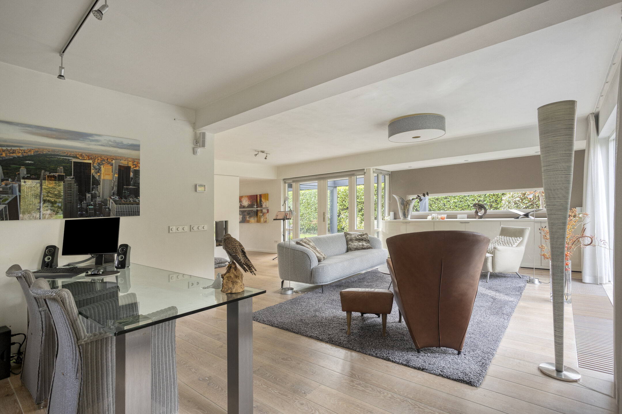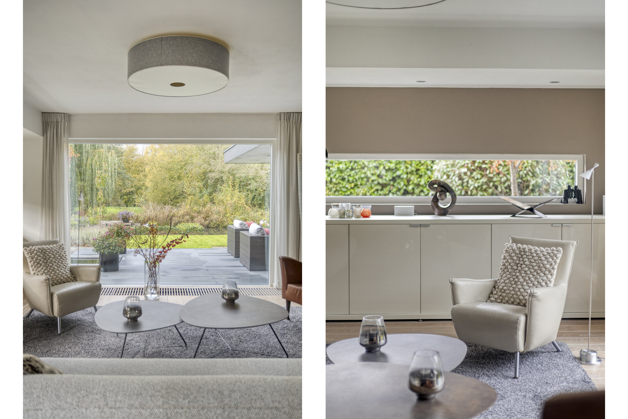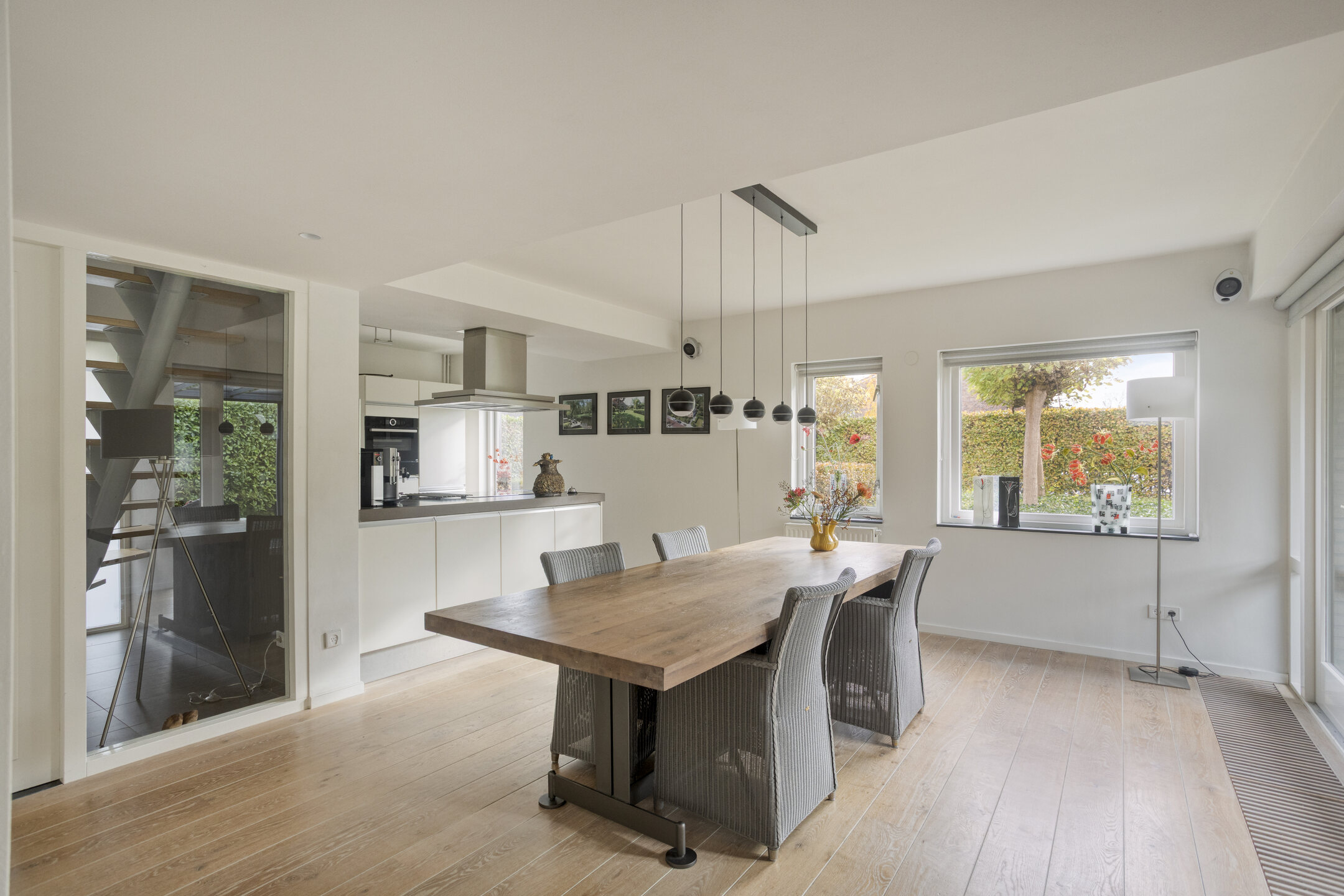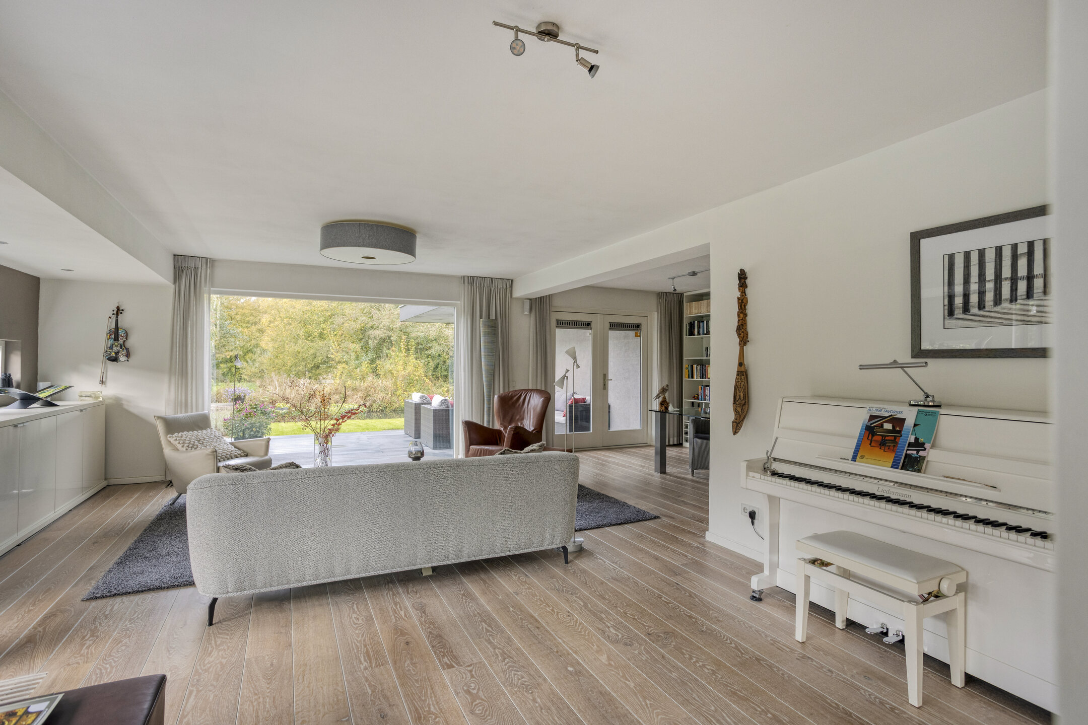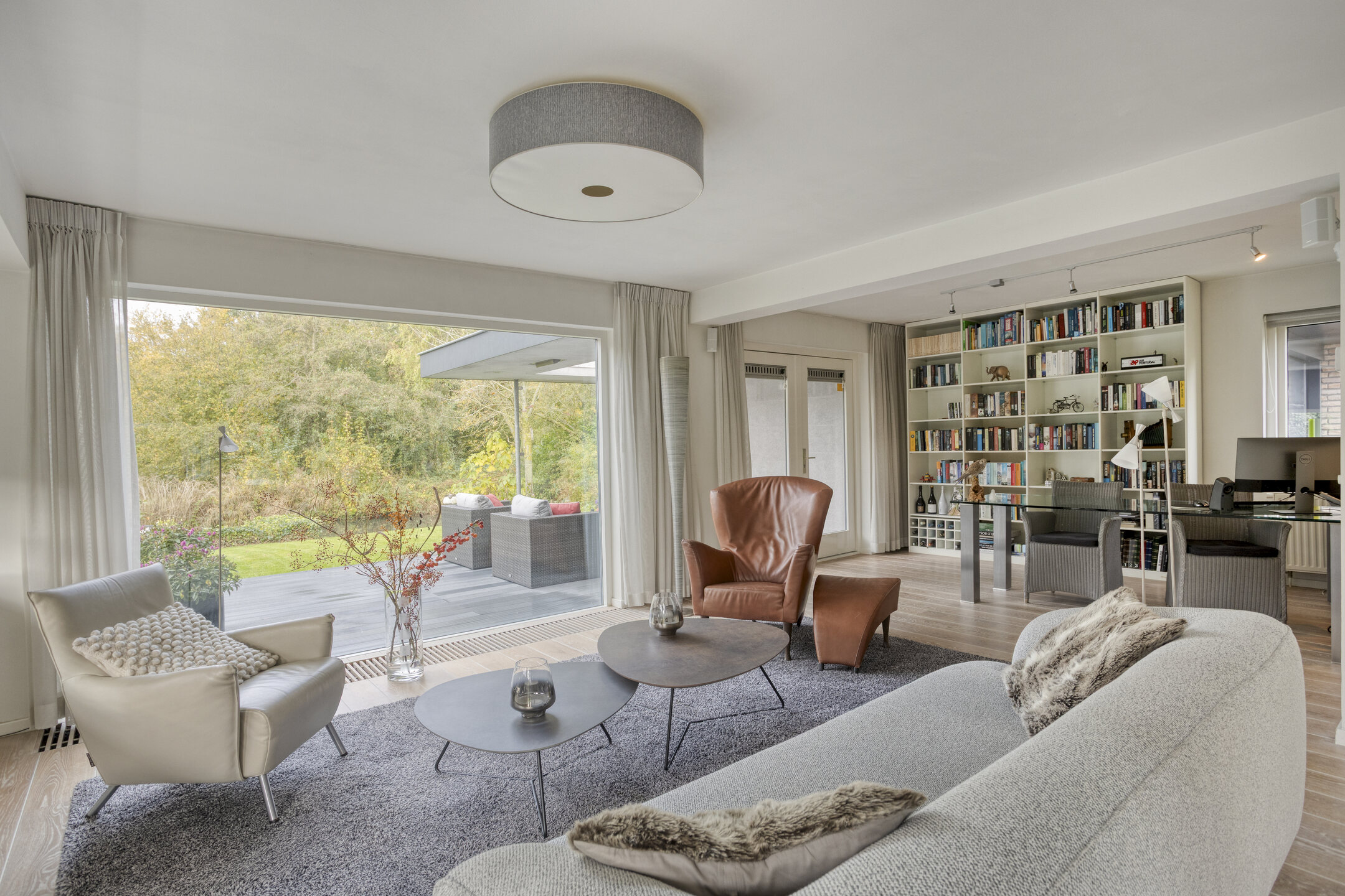 Aan de voorzijde van de woning ligt de luxe keuken. Deze is voorzien van een Belgisch zoetstenen werkblad en recent vervangen topapparatuur van Bosch, AEG en Gaggenau, zoals een vaatwasser, koel-vriescombinatie, stoomoven met bordenwarmer, 4pits inductiekookplaat en afzuigkap. Een genot voor iedere kookliefhebber! De tuingerichte woonkamer ligt aan de achterzijde van de woning en is door de grote glazen pui heerlijk licht. Hier heeft u ruimte voor een fijne zithoek met breed uitzicht op de prachtig aangelegde tuin aan het water en het natuurpark Egmonderhout.