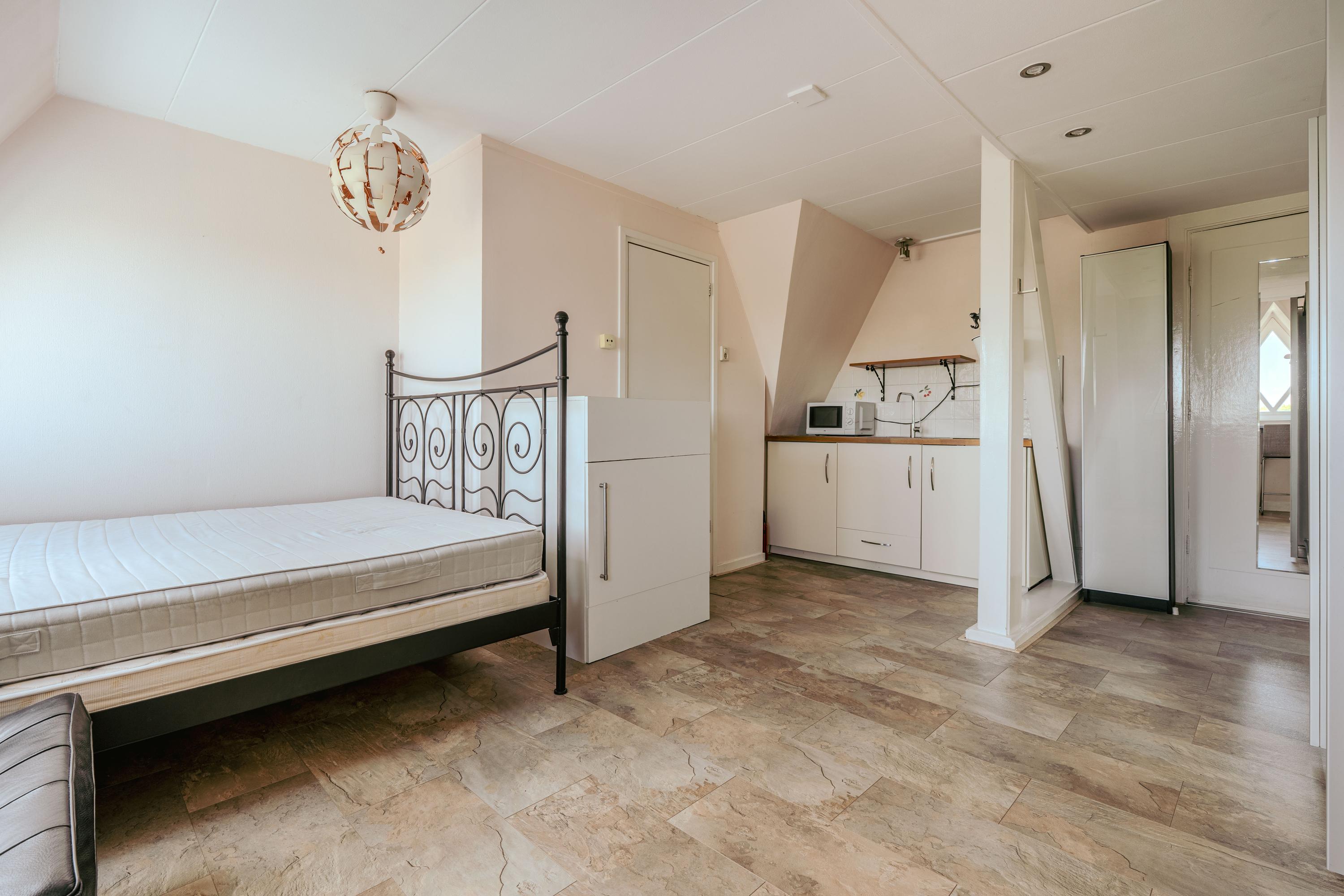Uniek is de aparte studio op deze verdieping. Deze beschikt over een eigen keuken en badkamer en is daarmee ideaal als gastenverblijf, nannyruimte of zelfstandige werkruimte. Aan de achterzijde bevindt zich het fraaie dakterras, gelegen op het westen. Hier kunt u in alle rust genieten van de middag- en avondzon, met uitzicht over de groene omgeving.