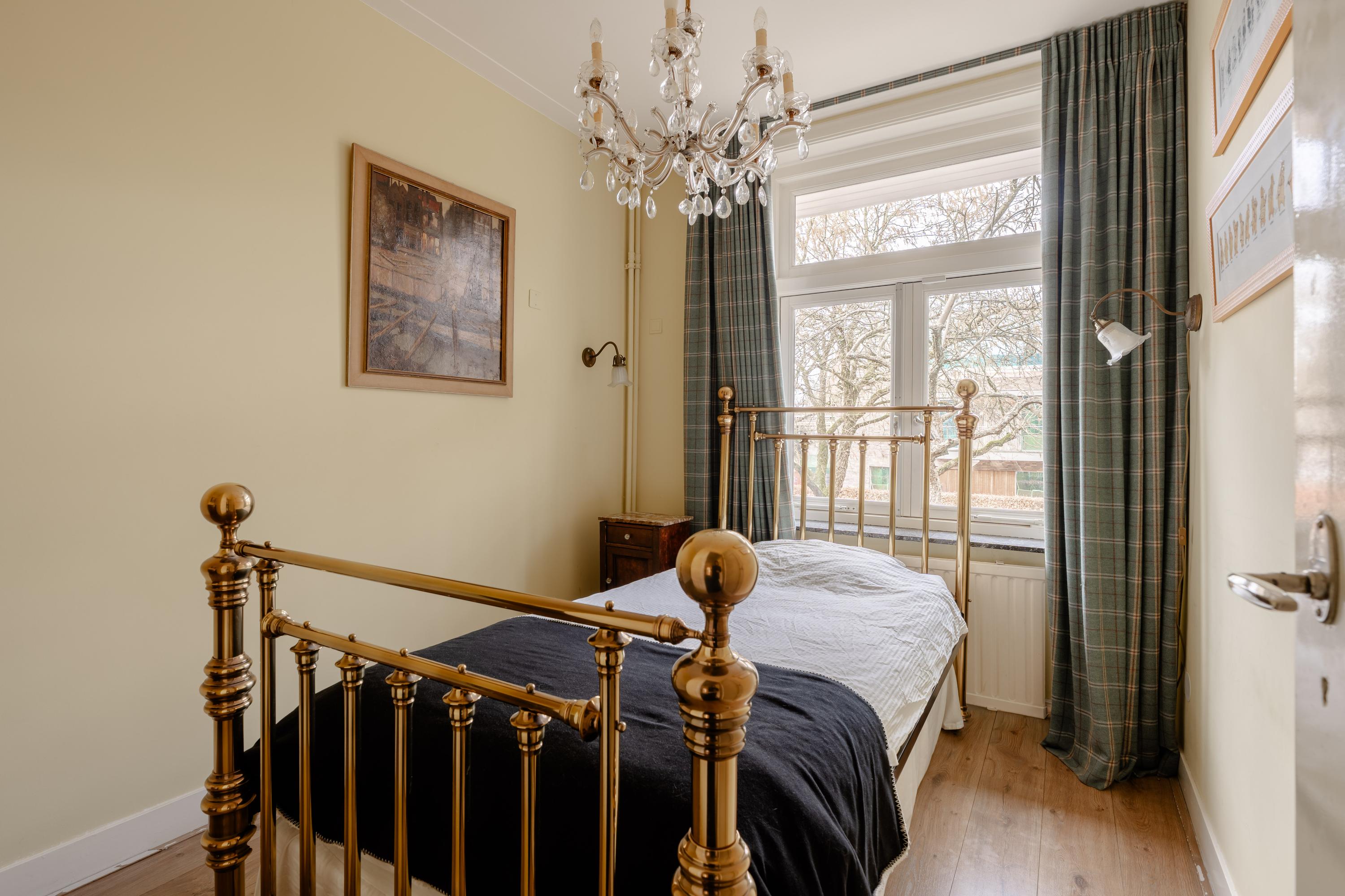 Via een vaste trap bereikt u de derde verdieping. Hier bevindt zich een zeer ruime en sfeervolle slaapkamer met zichtbare houten kapconstructie. Dankzij de dakkapel en dakramen valt er veel natuurlijk licht naar binnen, wat deze verdieping een bijzonder ruimtelijk karakter geeft.