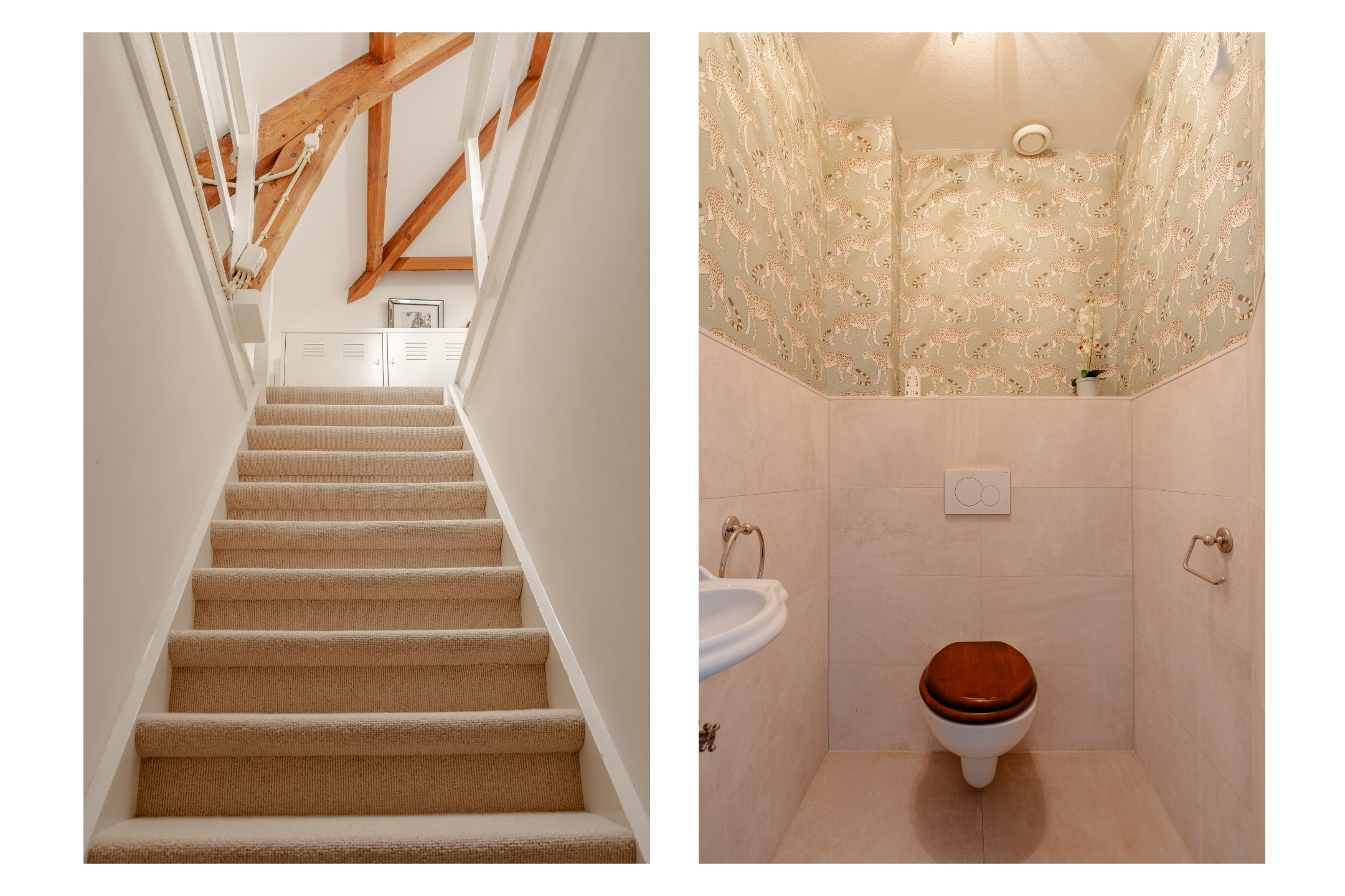 Via de trap bereikt u de eerste verdieping. De overloop geeft toegang tot alle vertrekken.