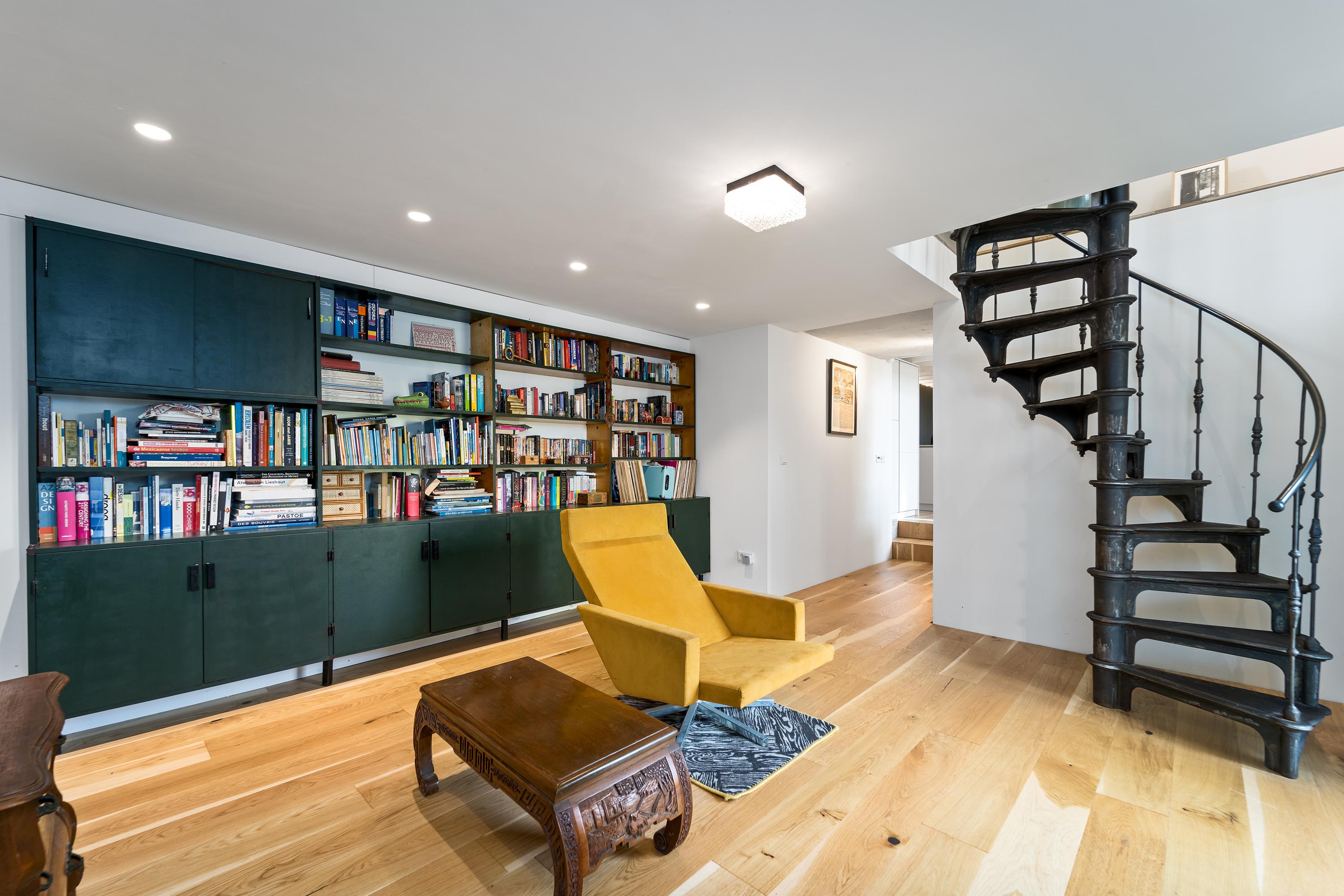 De woning is van binnen al net zo gaaf. Oude en moderne materialen zijn gebruikt bij de nieuwbouw/verbouwing. Stoere houten constructie balken, ruw beton, eiken vloerdelen, klassieke ledenradiatoren en de stalen wenteltrap zijn daar een aantal voorbeelden van.