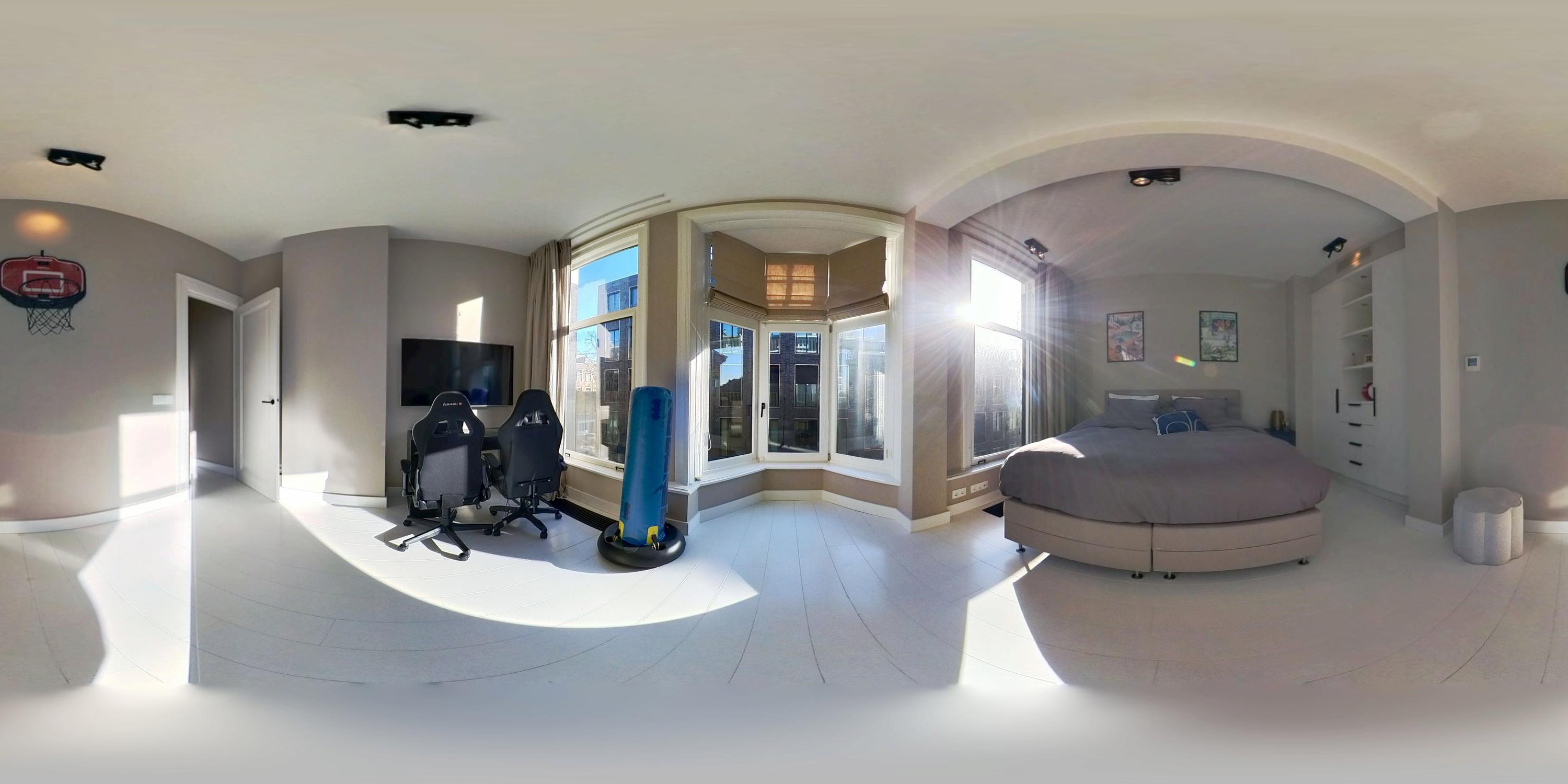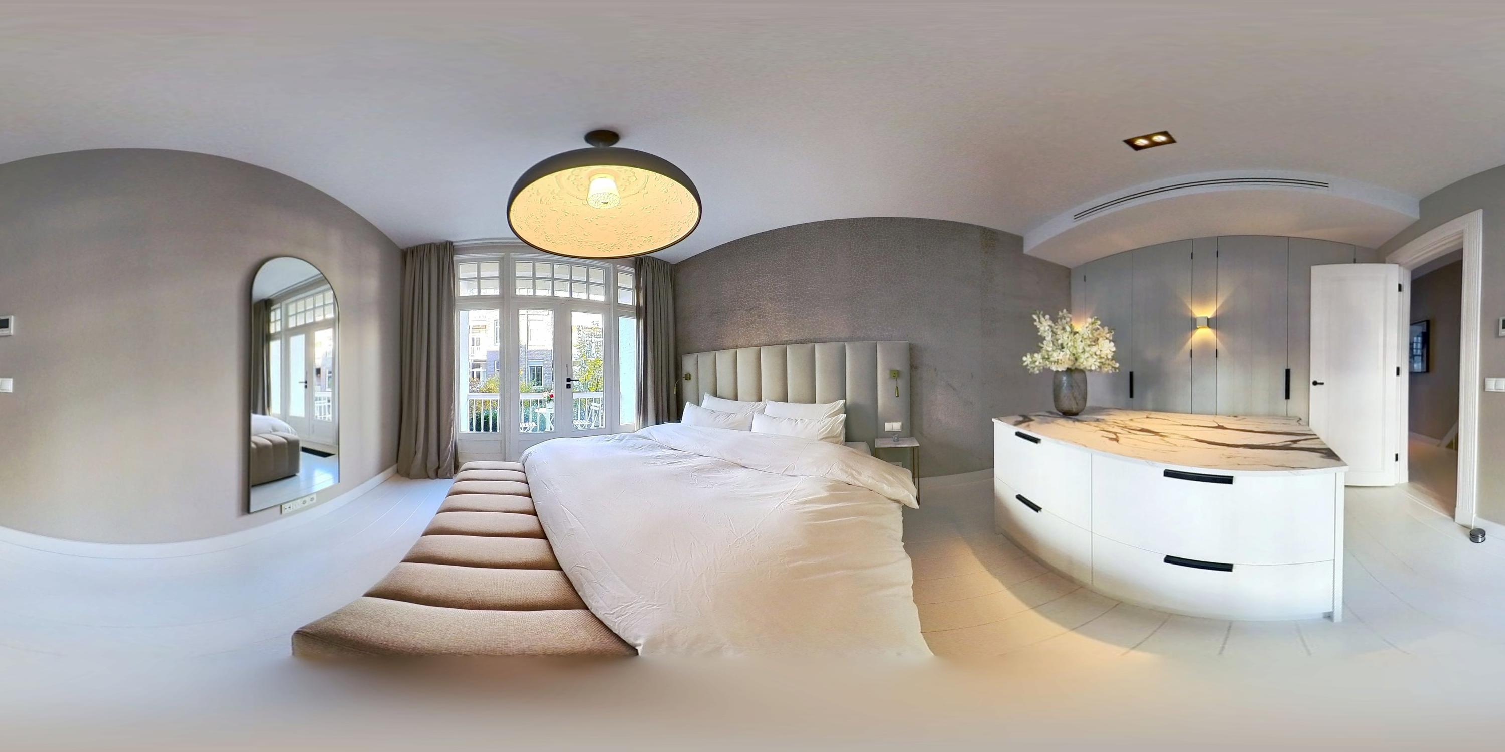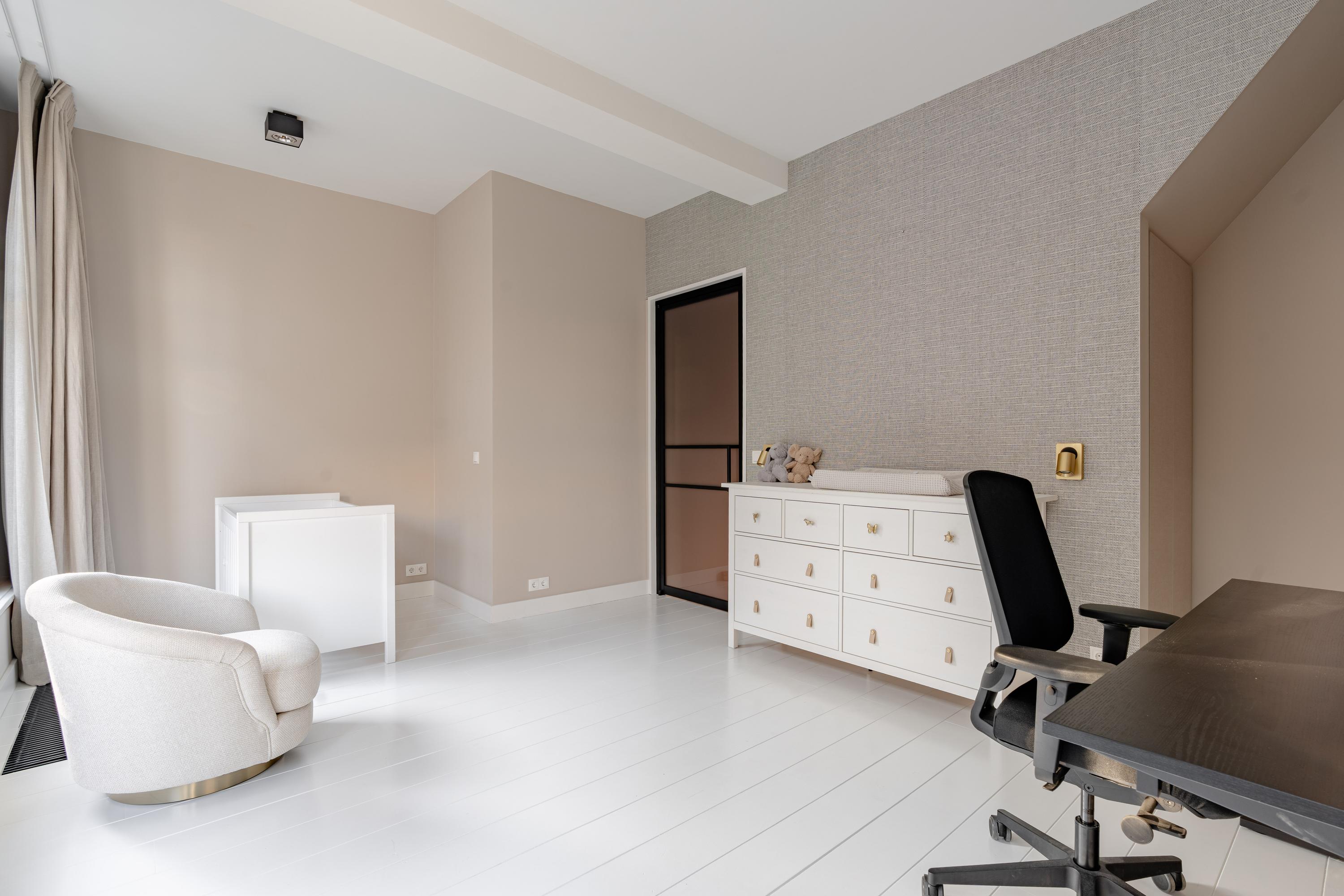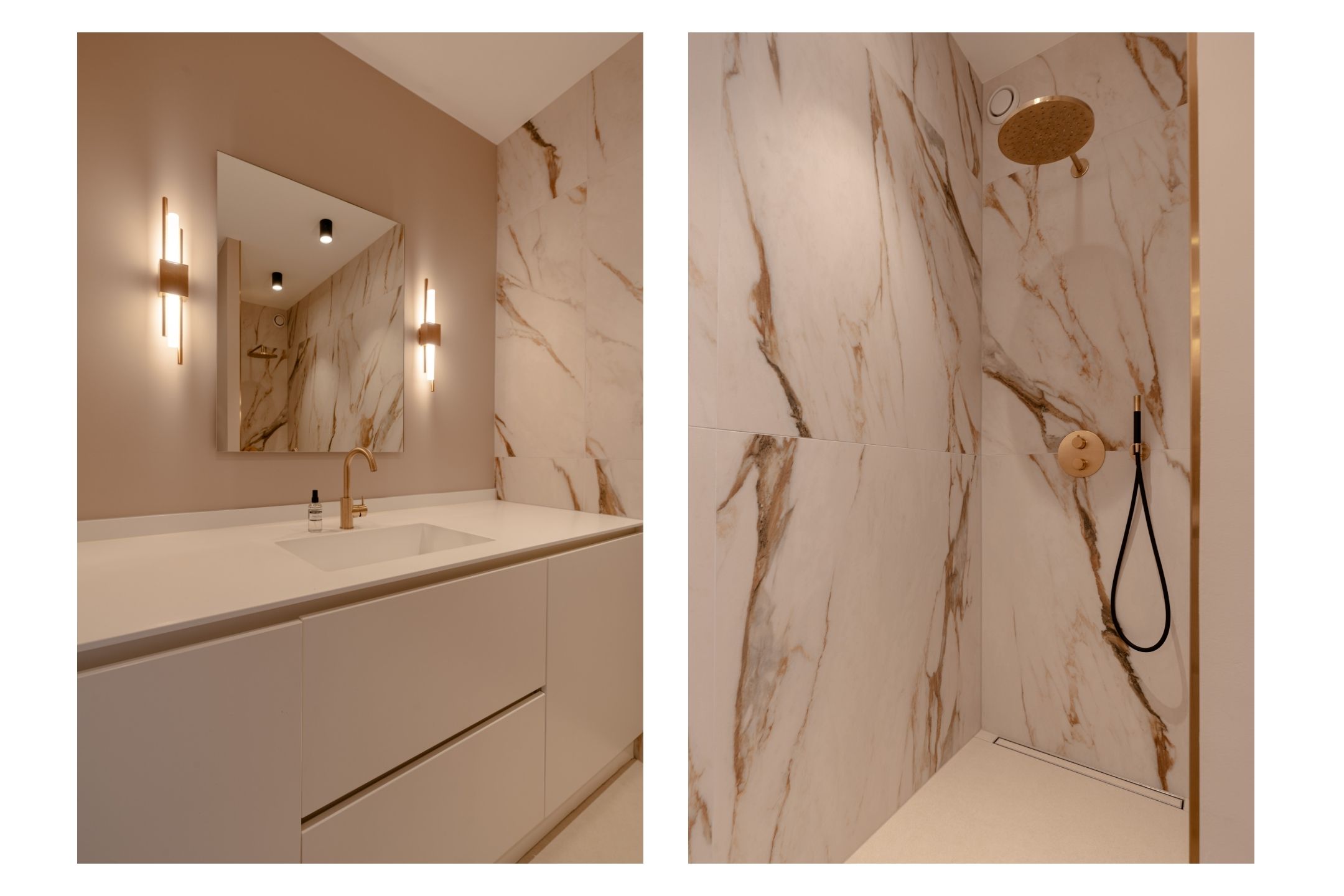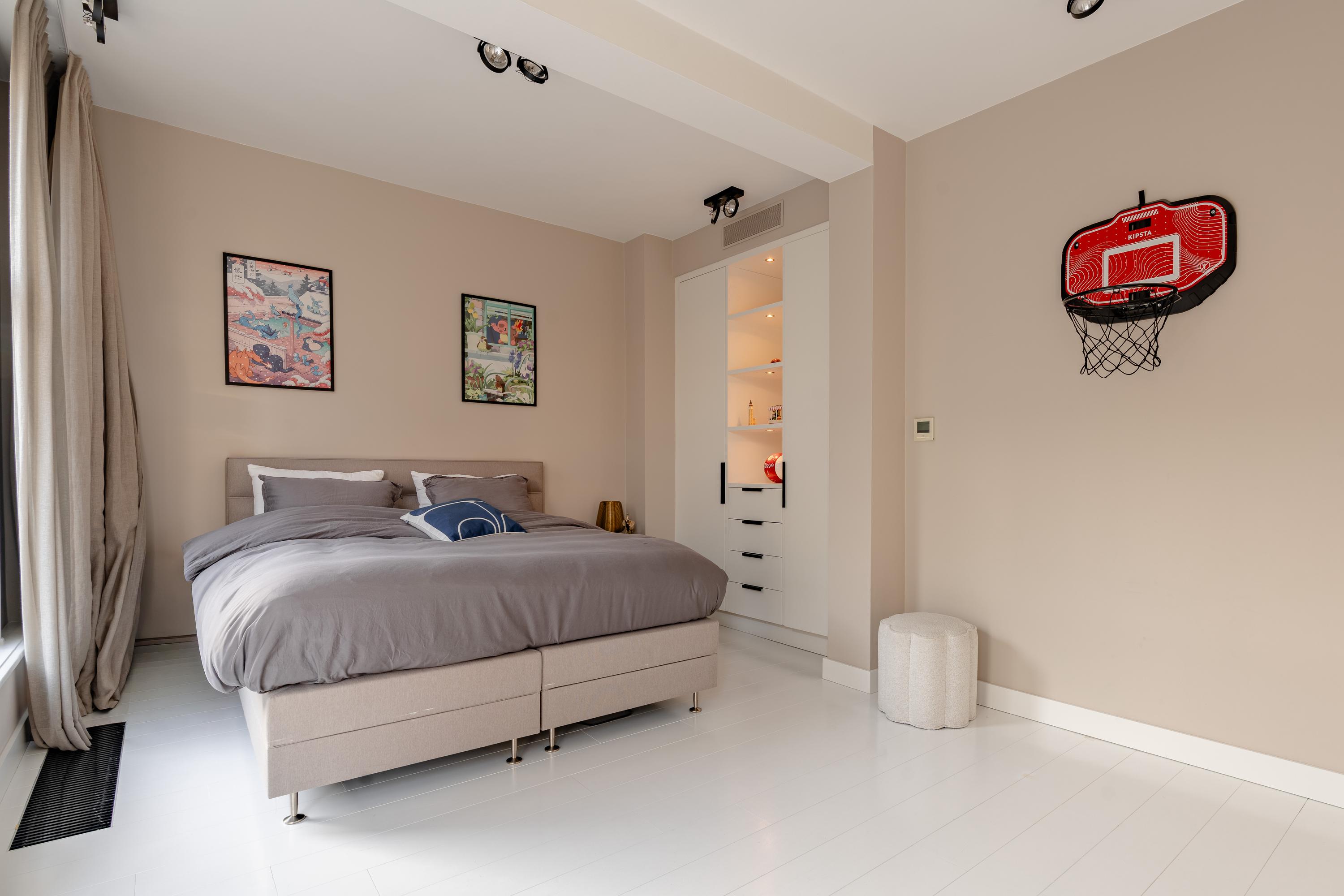 De tweede verdieping biedt wederom een ruime overloop, twee grote slaapkamers en badkamer. Beide kamers zijn voorzien van airconditioning en inbouwkasten, waardoor er volop opbergruimte is. De slaapkamer aan de achterzijde beschikt daarnaast over openslaande deuren naar het tweede balkon. De badkamer op deze verdieping is wederom stijlvol afgewerkt en voorzien van een inloopdouche, wastafel met meubel en toilet.