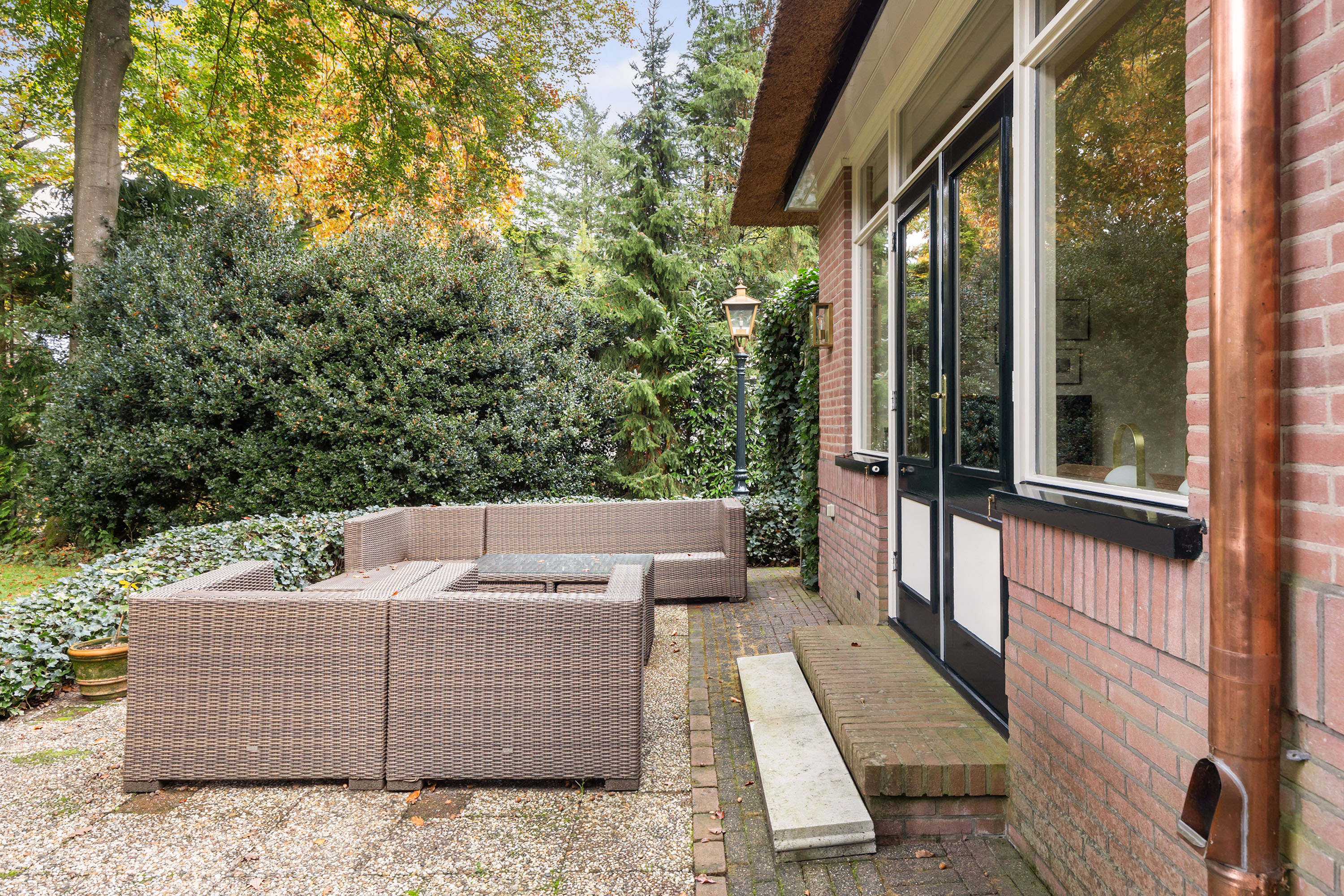 De villa straalt een ingetogen grandeur uit, mede dankzij de karakteristieke raampartijen met geïsoleerde ramen in houten kozijnen, de zorgvuldig gerestaureerde houten vensterbanken en authentieke bouwdetails die in ere zijn hersteld. De tuinverlichting bestaat uit originele oude lantaarns van Paleis Het Loo. Dit vormt een uniek en stijlvol accent dat het geheel zijn bijzondere allure verleent.