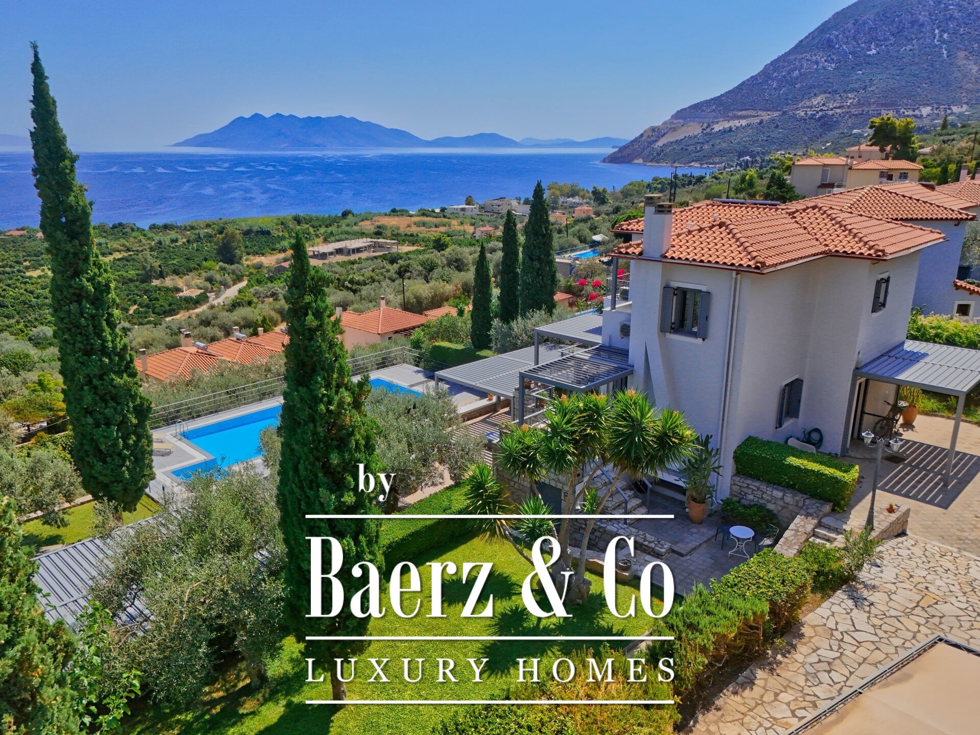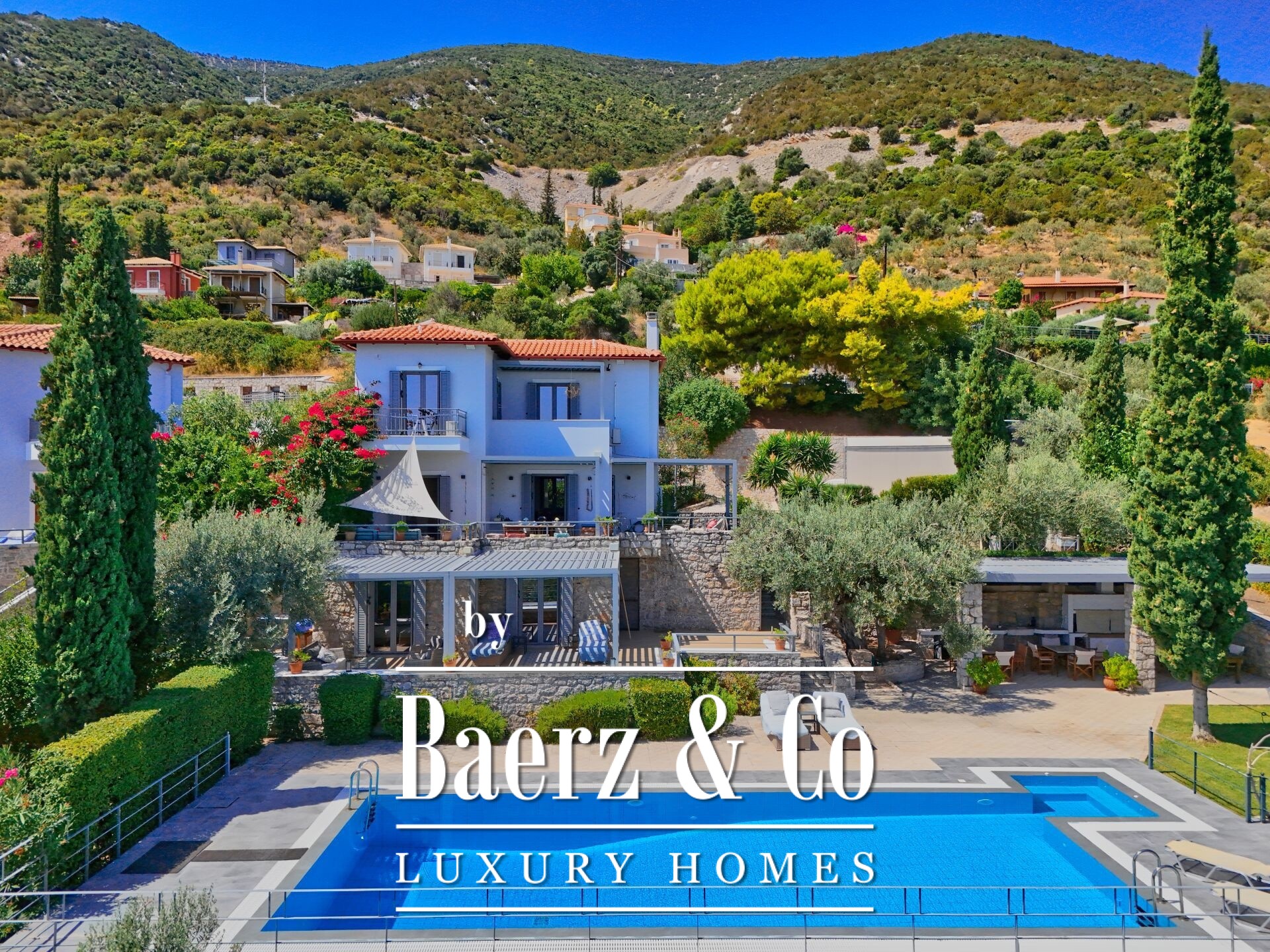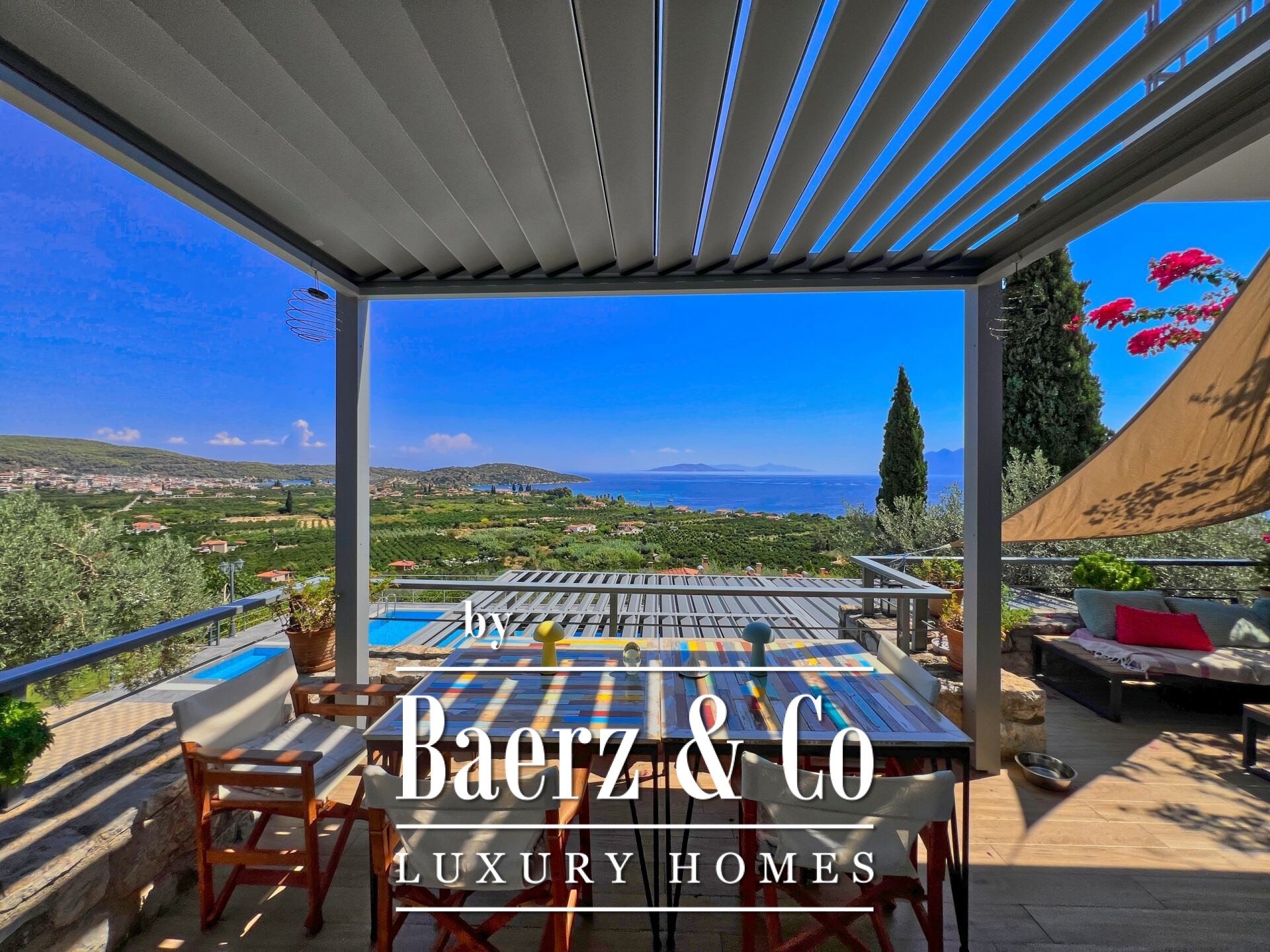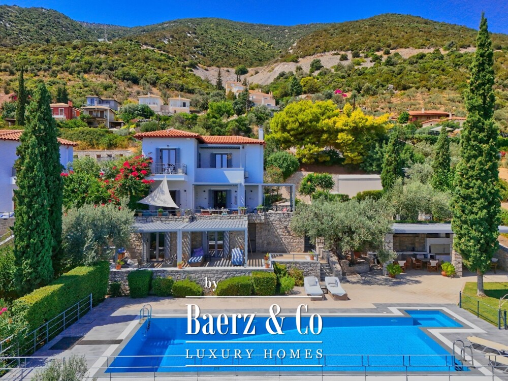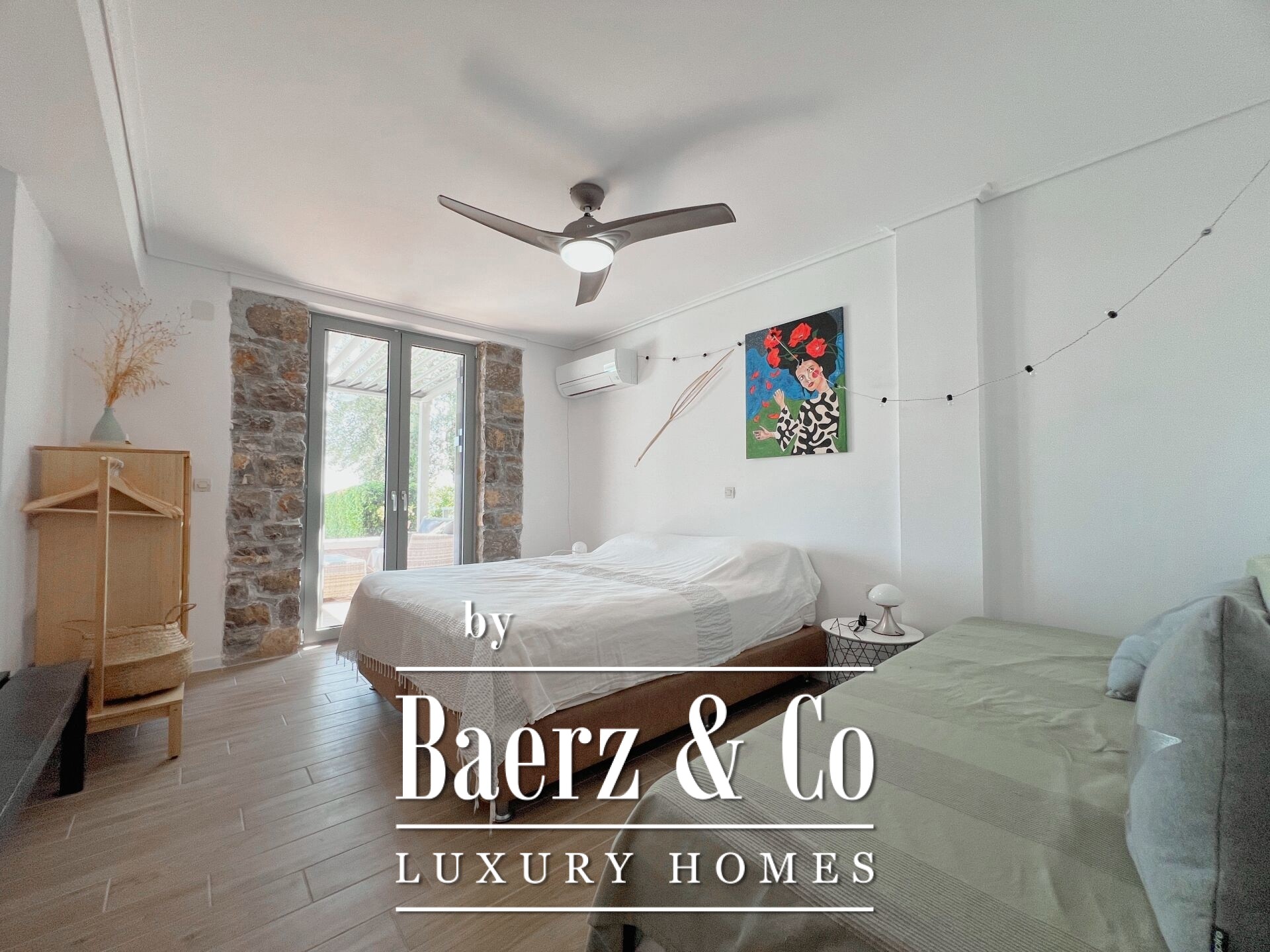 Vrijstaande woning Archaia Epidavros biedt een verfijnde balans tussen tijdloze materialen en hedendaags design, gelegen in een privé tuin van 1.500 m² met uitzicht op zee. Deze residentie van 198 m² is vanaf 2018 volledig gerenoveerd, met oog voor materiaalkeuze, bioklimatische pergola’s en slimme woonoplossingen die geschikt zijn voor zowel permanent als recreatief gebruik.