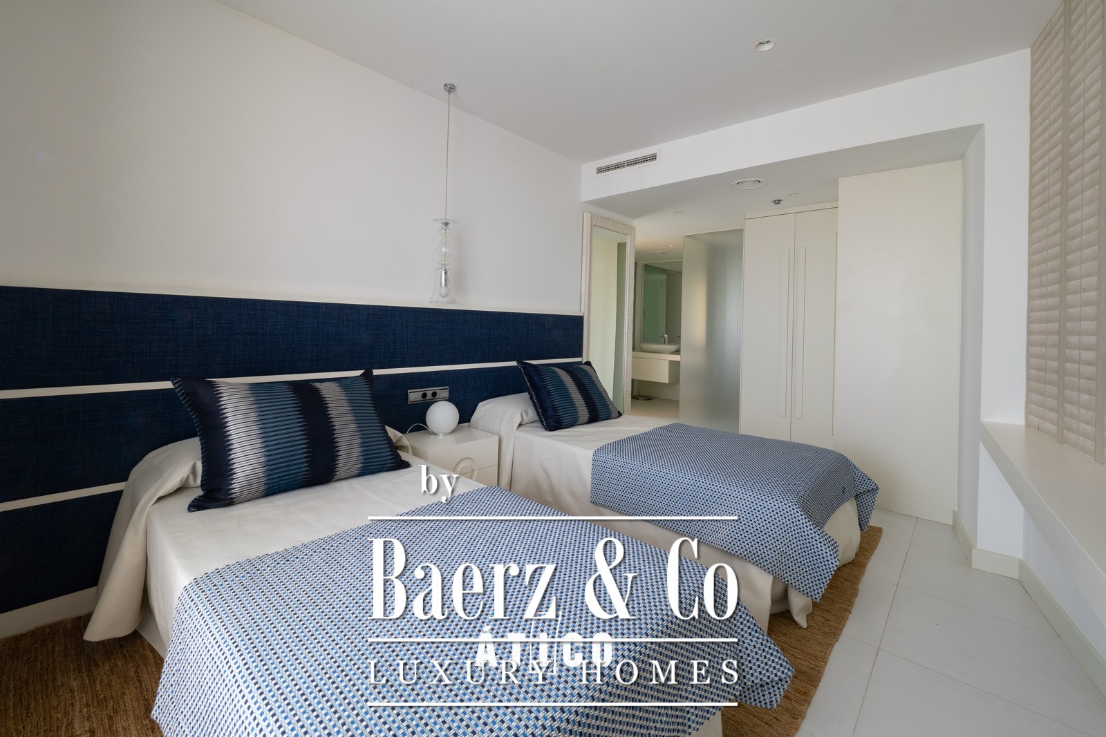 Bewoners profiteren van een scala aan voorzieningen, waaronder een gemeenschappelijk zwembad, padelbanen, speelruimte, conciërge en beveiligde parkeergelegenheid. Deze woning ligt op een steenworp afstand van het strand, omgeven door restaurants en culturele locaties, en biedt een elegante balans tussen privacy, ontspanning en de levendigheid van de stad.