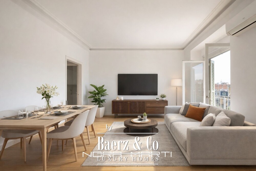 Appartement Barcelona wordt aangeboden in het hart van de meest begeerde promenade van de stad, waar de Passeig de Sant Joan samenkomt met de kenmerkende sfeer van Gràcia. Dit appartement van 90 m² op de zesde verdieping geniet van overvloedig licht, zodat de warmte van de middagzon en een omhullende rust tot diep in de namiddag de ruimte vullen. De woon- en eetkamer is georiënteerd richting een terras van 10 m² en biedt uitzichten over de stad en de Middellandse Zee tot aan de Tibidabo. Het terras is de ideale plek voor rustige rituelen en intieme bijeenkomsten.
