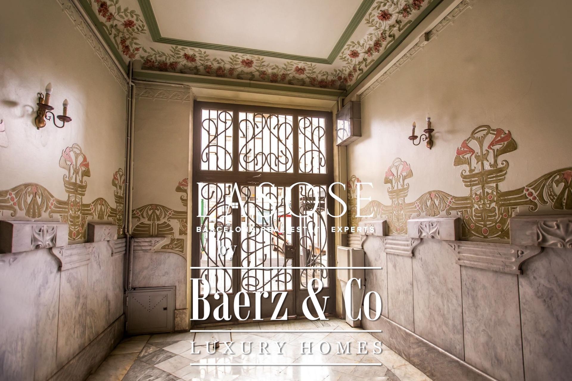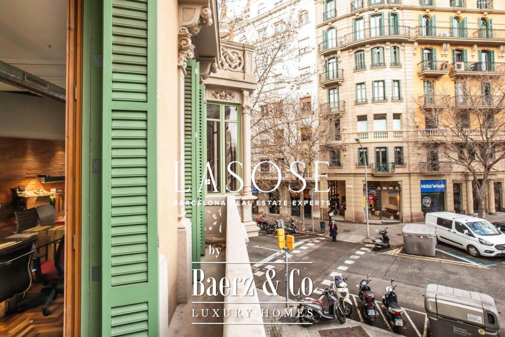 Appartement Barcelona in Eixample Esquerra bevindt zich op de bel-etage van een karakteristiek modernistisch pand uit 1900, waar erfgoedarchitectuur en een royale ruimtelijke indeling samenkomen. Deze woning biedt een intern woonoppervlak van 179 m² en 4 m² aan balkons. Drie balkons aan de straatzijde en een klassieke erker vullen de hoofdwoonkamer met daglicht, wat zowel grandeur als openheid weerspiegelt. De plafonds reiken tot 3,5 meter en zijn voorzien van de originele volta catalana, waarmee het authentieke karakter van de bouwperiode behouden blijft.