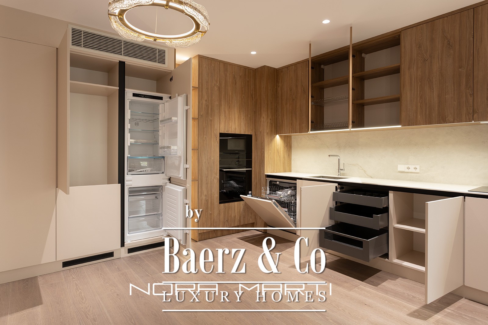De aandacht voor detail blijkt uit het eiken parket, de geïntegreerde maatwerkkasten en zorgvuldig gekozen verlichting. Het binnenklimaat wordt geregeld door een geïntegreerd airconditioningsysteem en Mitsubishi splits, samen met een Bosch gasboiler en IRSAP Tesi designradiatoren voor optimaal comfort gedurende het hele jaar. Een optionele parkeerplaats in het gebouw verhoogt het dagelijkse gemak in deze kosmopolitische omgeving.