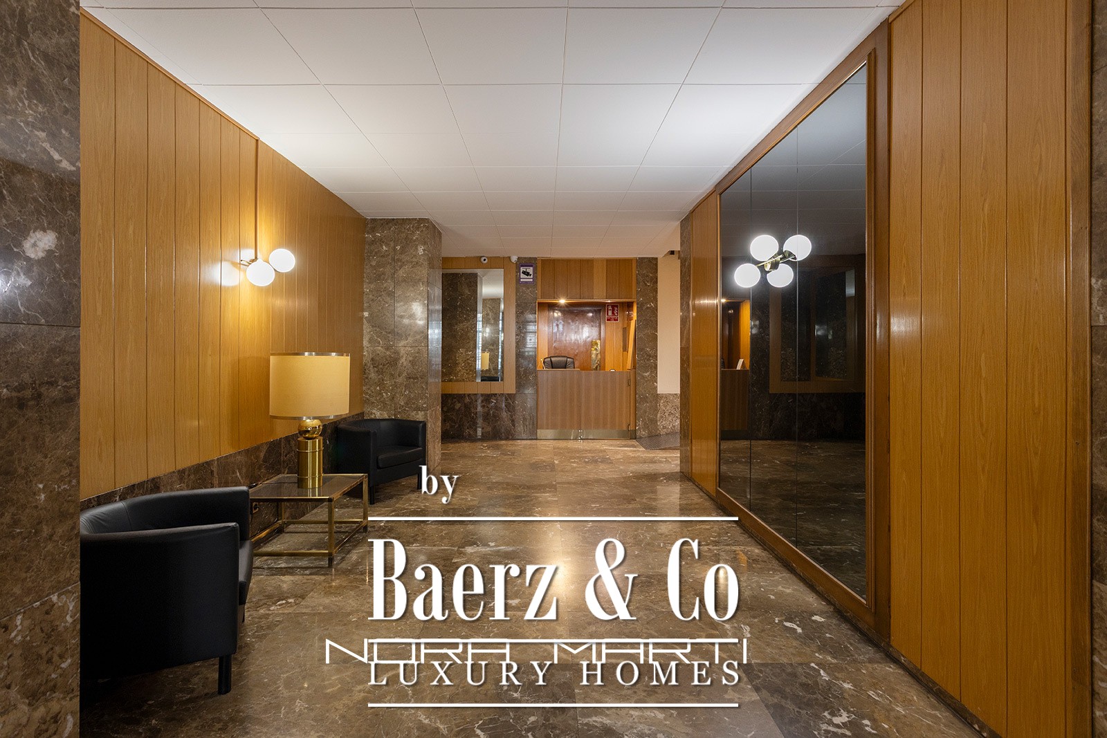 Appartement Eixample Dret Barcelona biedt een verfijnd gevoel van thuiskomen in een van de meest rustige en voorname enclaves van de wijk. Deze residentie van 147 m² beslaat een bevoorrechte hoekpositie op de tweede verdieping van een gebouw uit 1981 met conciërgeservice en twee liften, waardoor privacy en gemakkelijke toegang gegarandeerd zijn. Elke kamer is buitengevel en ontvangt de hele dag door natuurlijk licht, wat zowel de architectuur als de sfeer versterkt.