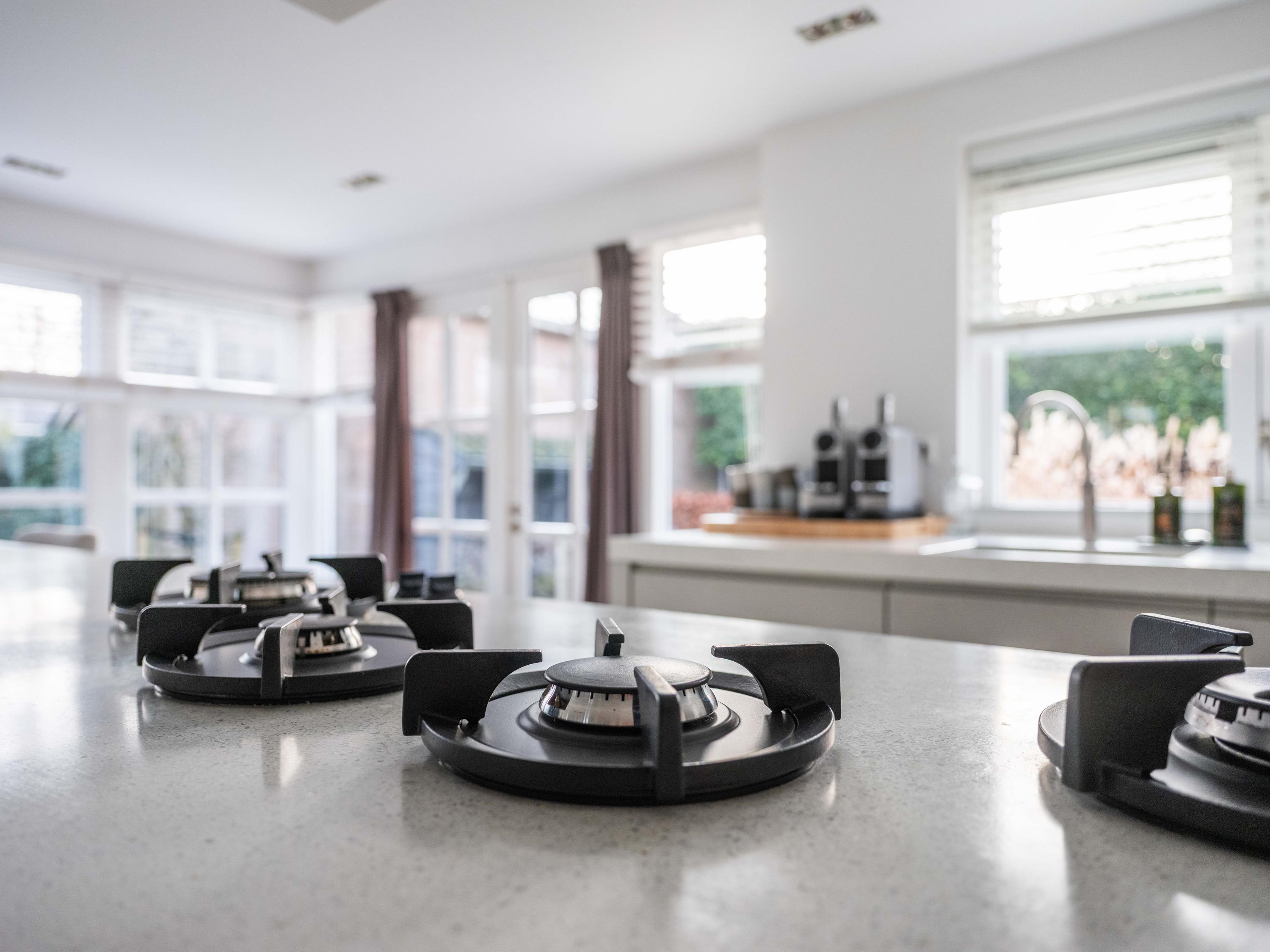 Bij binnenkomst valt direct de fijne sfeer op. De royale hal met trapopgang en modern toilet geeft toegang tot de praktische bijkeuken en leidt verder naar de eetkamer met open haard. Vanuit hier openen dubbele tuindeuren naar de fraai aangelegde tuin, waardoor binnen en buiten moeiteloos in elkaar overlopen. De woonkamer sluit naadloos aan op de designkeuken van Piet Jan van den Kommer – een echte blikvanger die perfect past bij de landelijke stijl van het huis. De houten vloeren en balkenplafonds versterken het gevoel van warmte en karakter.