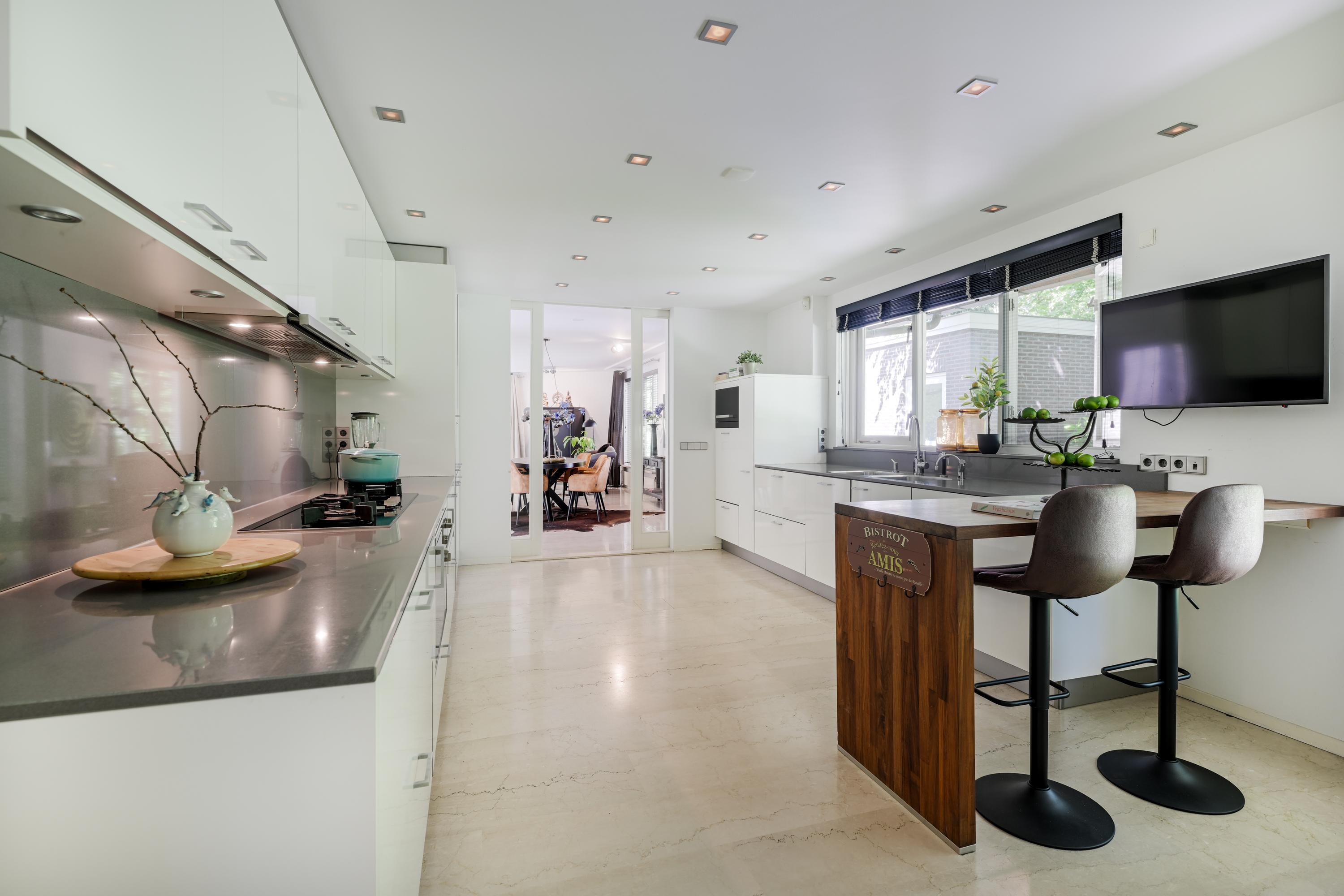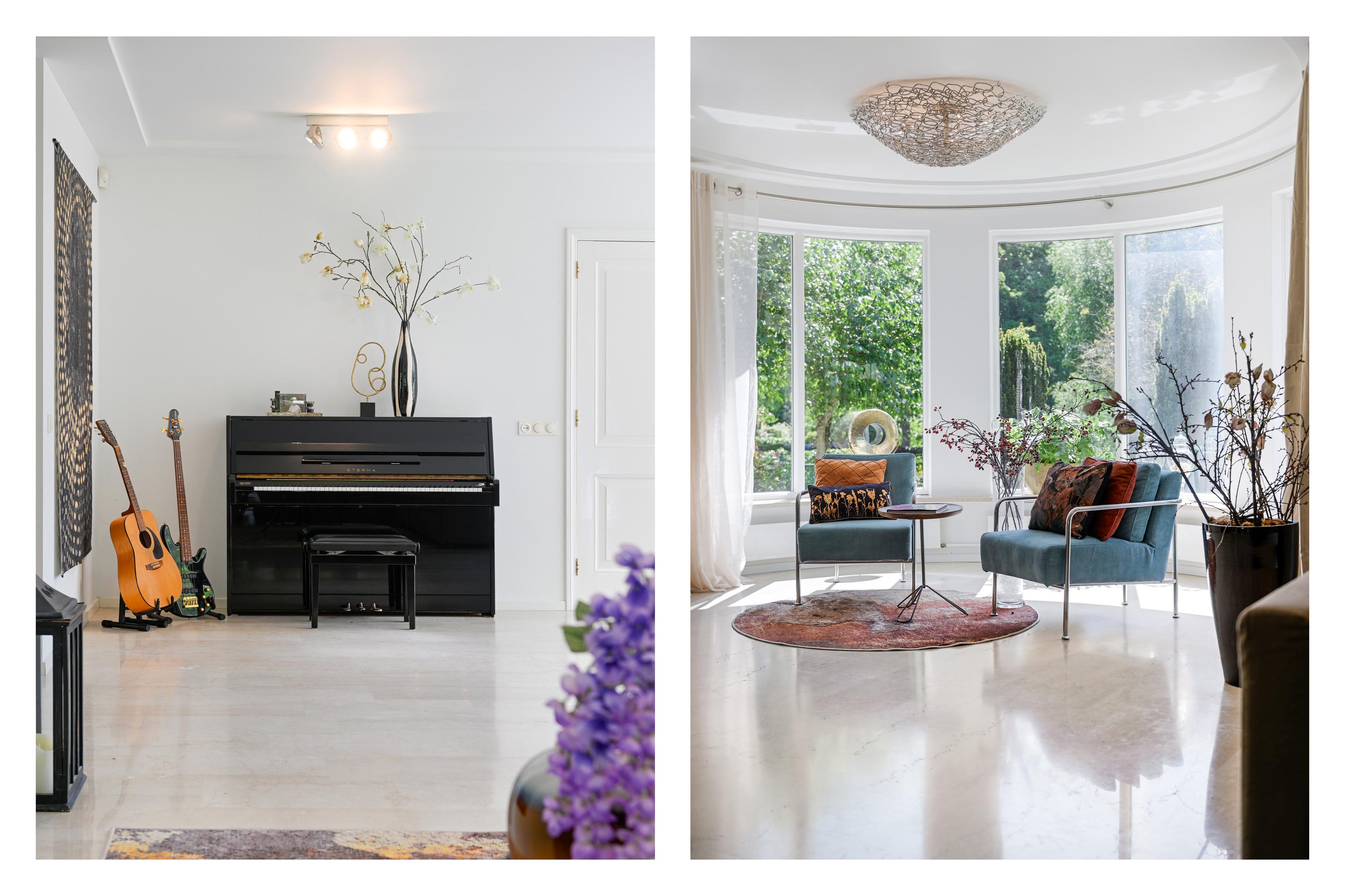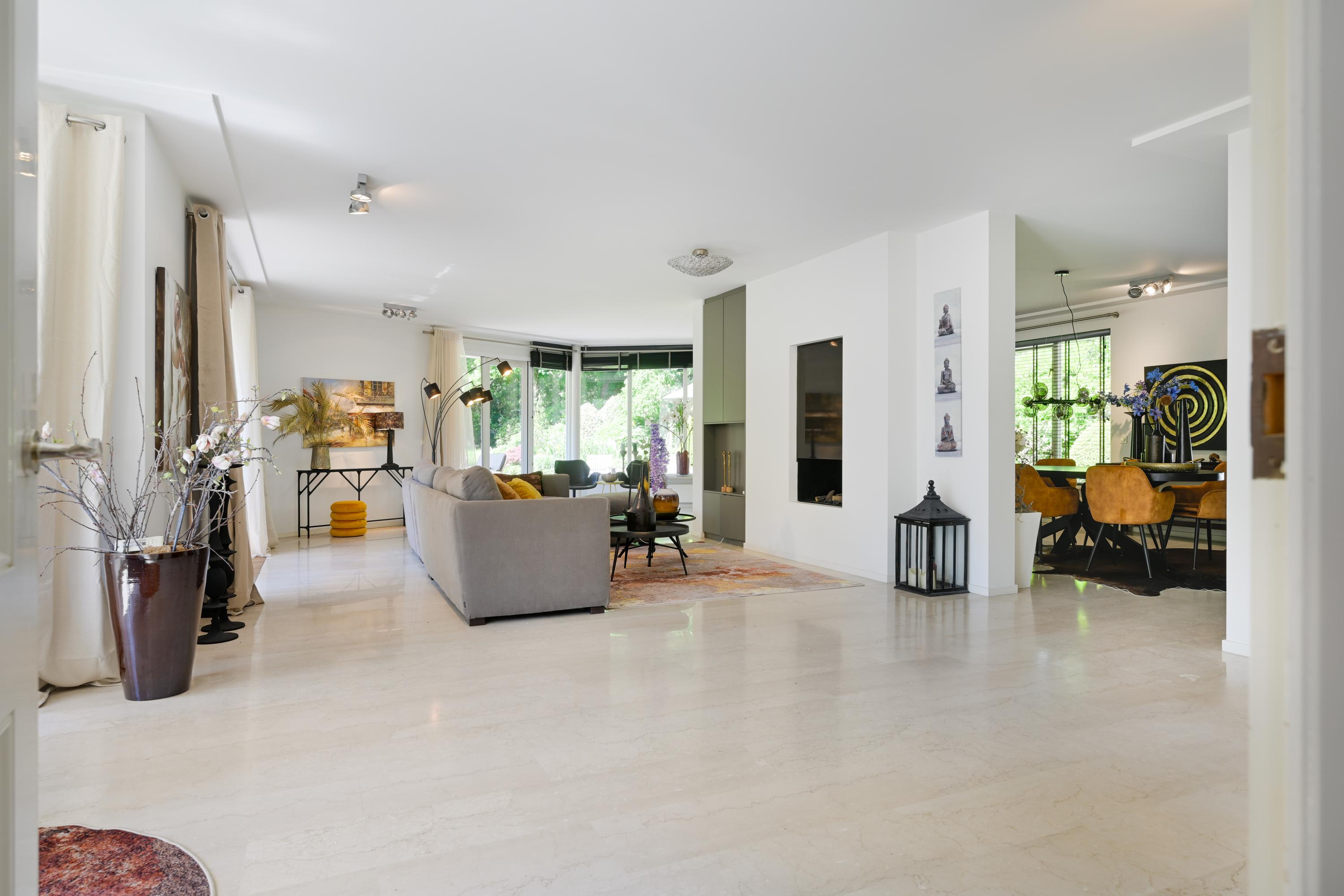 De begane grond is volledig voorzien van marmeren vloeren met vloerverwarming en extra radiatoren.