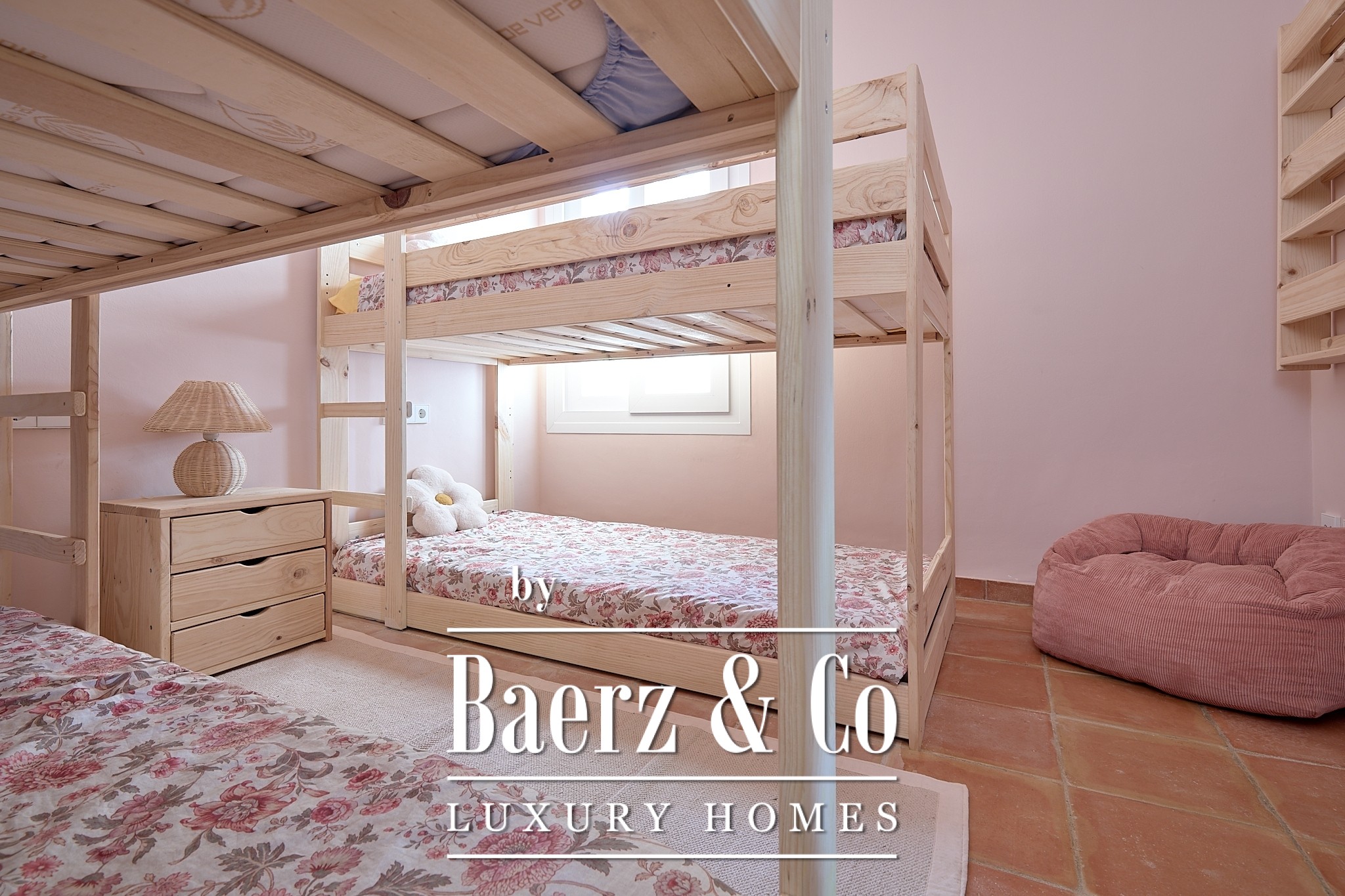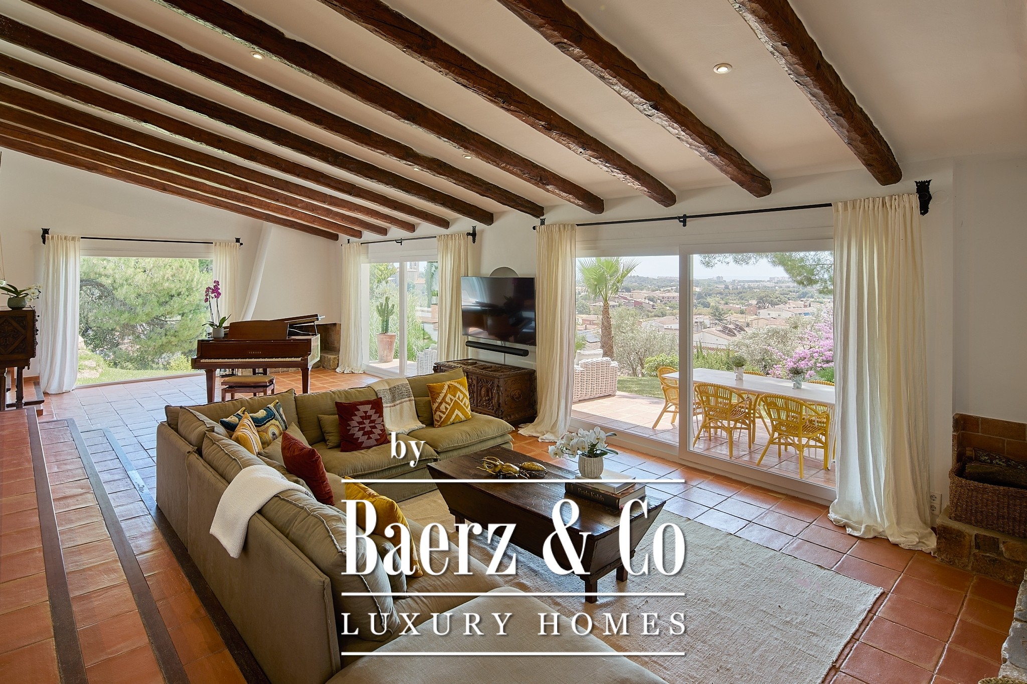 De ligging is optimaal voor een weids uitzicht op zee en het gebergte, waarmee de villa de essentie van de Costa Brava weerspiegelt: natuurlijke schoonheid gecombineerd met ingetogen elegantie. De hoofdwoning beschikt over ruime, lichte woon- en eetvertrekken, verbonden door een sfeervolle open haard en met directe toegang tot het terras voor een naadloze binnen-buitenbeleving. De volledig uitgeruste keuken vormt het hart van het dagelijks leven en het ontvangen van gasten. De privévertrekken bieden een master suite met kleedruimte en en-suite badkamer, vier extra slaapkamers en nog twee badkamers. Extra ruimtes, zoals een wasruimte die tevens als kantoor gebruikt kan worden, zorgen voor flexibiliteit.